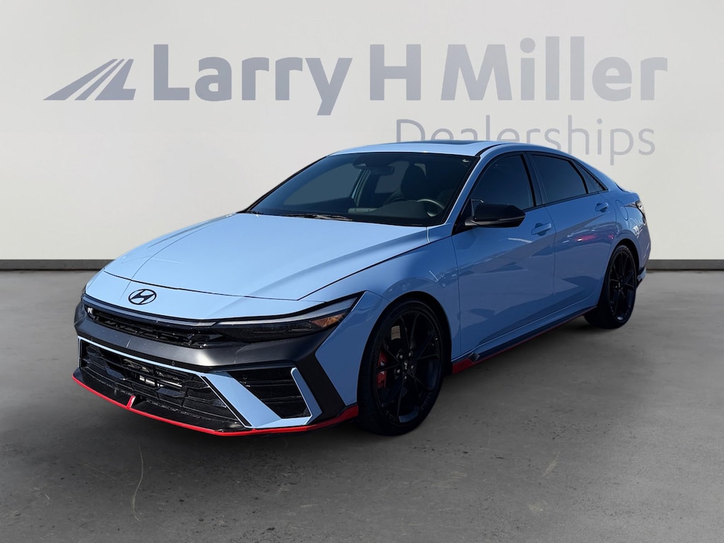 This 2025 Performance Blue Hyundai Elantra N Base FWD is well equipped and includes these features and benefits: Option Group 01, 4-Wheel Disc Brakes, 8 Speakers, ABS brakes, Air Conditioning, Alloy wheels, AM/FM radio: SiriusXM, Apple CarPlay & Android Auto, Auto High-beam Headlights, Automatic temperature control, Brake assist, Bumpers: body-color, Cargo Side Bins, Compass, Delay-off headlights, Driver door bin, Driver vanity mirror, Dual front impact airbags, Dual front side impact airbags, Electronic Stability Control, Emergency communication system, Exterior Parking Camera Rear, First Aid Kit, Four wheel independent suspension, Front anti-roll bar, Front Bucket Seats, Front Center Armrest w/Storage, Front dual zone A/C, Front reading lights, Fully automatic headlights, Heated door mirrors, Heated front seats, Illuminated entry, Leather Shift Knob, Leather steering wheel, Leather-Trimmed with Microsuede Inserts Seat Trim, Low tire pressure warning, N Light Heated Sport Bucket Seats, Navigation System, Occupant sensing airbag, Outside temperature display, Overhead airbag, Overhead console, Panic alarm, Passenger door bin, Passenger vanity mirror, Power door mirrors, Power moonroof, Power steering, Power windows, Radio: Bose AM/FM/HD/SXM Audio System, Rear side impact airbag, Rear window defroster, Remote keyless entry, Security system, Speed control, Speed-sensing steering, Spoiler, Steering wheel mounted audio controls, Tachometer, Telescoping steering wheel, Tilt steering wheel, Traction control, Trip computer, Turn signal indicator mirrors, Variably intermittent wipers, and Wheels: 19 x 8.0 Forged Alloy. 4-Wheel Disc Brakes, 8 Speakers, ABS brakes, Air Conditioning, Alloy wheels, AM/FM radio: SiriusXM, Apple CarPlay & Android Auto, Auto High-beam Headlights, Automatic temperature control, Brake assist, Bumpers: body-color, Cargo Side Bins, Compass, Delay-off headlights, Driver door bin, Driver vanity mirror, Dual front impact airbags, Dual front side impact airbags, Electronic Stability Control, Emergency communication system, Exterior Parking Camera Rear, First Aid Kit, Four wheel independent suspension, Front anti-roll bar, Front Bucket Seats, Front Center Armrest w/Storage, Front dual zone A/C, Front reading lights, Fully automatic headlights, Heated door mirrors, Heated front seats, Illuminated entry, Leather Shift Knob, Leather steering wheel, Leather-Trimmed with Microsuede Inserts Seat Trim, Low tire pressure warning, N Light Heated Sport Bucket Seats, Navigation System, Occupant sensing airbag, Option Group 01, Outside temperature display, Overhead airbag, Overhead console, Panic alarm, Passenger door bin, Passenger vanity mirror, Power door mirrors, Power moonroof, Power steering, Power windows, Radio: Bose AM/FM/HD/SXM Audio System, Rear side impact airbag, Rear window defroster, Remote keyless entry, Security system, Speed control, Speed-sensing steering, Spoiler, Steering wheel mounted audio controls, Tachometer, Telescoping steering wheel, Tilt steering wheel, Traction control, Trip computer, Turn signal indicator mirrors, Variably intermittent wipers, Wheels: 19 x 8.0 Forged Alloy.