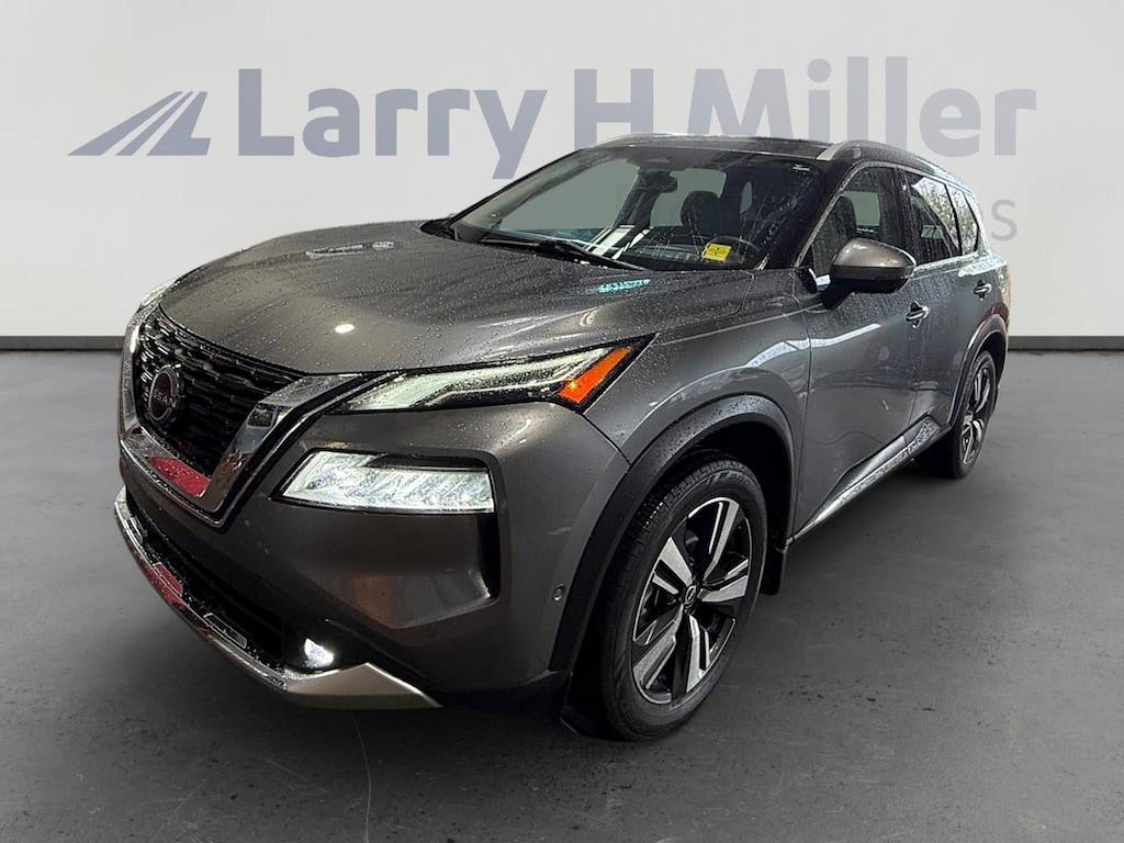 This 2022 Gun Metallic Nissan Rogue Platinum FWD is well equipped and includes these features and benefits: Head-Up Display Package (Heads-Up Display), Nissan Certified Certified, 10 Speakers, 19 Aluminum Alloy Wheels, 4-Wheel Disc Brakes, 5.604 Axle Ratio, ABS brakes, Air Conditioning, Alloy wheels, AM/FM radio: SiriusXM, Apple CarPlay/Android Auto, Auto High-beam Headlights, Auto-dimming Rear-View mirror, Automatic temperature control, Black Splash Guards (Set of 4), Bose Premium Audio System, Brake assist, Bumpers: body-color, Chrome Rear Bumper Protector, Delay-off headlights, Driver door bin, Driver vanity mirror, Dual front impact airbags, Dual front side impact airbags, Electronic Stability Control, Emergency communication system: NissanConnect Services, First Aid Kit, Floor Mats w/2-Piece Cargo Area Protector, Four wheel independent suspension, Front anti-roll bar, Front Bucket Seats, Front Center Armrest, Front dual zone A/C, Front fog lights, Front reading lights, Fully automatic headlights, Heated door mirrors, Heated Front Bucket Seats, Heated front seats, Heated rear seats, Heated steering wheel, Illuminated entry, Knee airbag, Low tire pressure warning, Memory seat, Navigation system: NissanConnect Navigation, Occupant sensing airbag, Outside temperature display, Overhead airbag, Overhead console, Panic alarm, Passenger door bin, Passenger vanity mirror, Power door mirrors, Power driver seat, Power Liftgate, Power moonroof, Power passenger seat, Power steering, Power windows, Quilted Semi-Aniline Leather Seat Trim, Radio data system, Radio: AM/FM NissanConnect w/Navigation, Rear air conditioning, Rear anti-roll bar, Rear reading lights, Rear seat center armrest, Rear side impact airbag, Rear window defroster, Rear window wiper, Remote keyless entry, Roof rack: rails only, Security system, Speed control, Speed-Sensitive Wipers, Split folding rear seat, Spoiler, Steering wheel mounted audio controls, Tachometer, Telescoping steering wheel, Tilt steering wheel, Traction control, Trip computer, Turn signal indicator mirrors, and Variably intermittent wipers. 29/36 City/Highway MPG