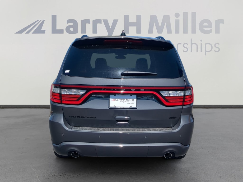 Vapor Gray 2026 Dodge Durango GT RWD 8-Speed Automatic 3.6L V6 24V VVT 18 x 8 Painted Aluminum Wheels, 3.27 Rear Axle Ratio, 3rd row seats: split-bench, 4-Wheel Disc Brakes, 6 Speakers, ABS brakes, Air Conditioning, Alloy wheels, AM/FM radio: SiriusXM w/360L, Apple CarPlay/Android Auto, Auto-dimming Rear-View mirror, Auto-leveling suspension, Automatic temperature control, Black Roof Rails, Blacktop Package, Brake assist, Bumpers: body-color, Cloth Bucket Seats w/Shift Insert, Compass, Delay-off headlights, Driver door bin, Driver vanity mirror, Dual front impact airbags, Dual front side impact airbags, Electronic Stability Control, Emergency communication system: Dodge Connect, Four wheel independent suspension, Front anti-roll bar, Front Bucket Seats, Front Center Armrest w/Storage, Front dual zone A/C, Front reading lights, Fully automatic headlights, Garage door transmitter, Gloss Black Badges, Gloss Black Exterior Mirrors, GT Gloss Black Badging, Heated door mirrors, Heated front seats, Heated steering wheel, Illuminated entry, Integrated Roof Rail Crossbars, Knee airbag, Leather steering wheel, Low tire pressure warning, Navigation System, Occupant sensing airbag, Outside temperature display, Overhead airbag, Overhead console, Panic alarm, ParkView Rear Back-Up Camera, Passenger door bin, Passenger vanity mirror, Power door mirrors, Power driver seat, Power Liftgate, Power steering, Power windows, Quick Order Package 2BD GT, Radio data system, Radio: Uconnect 5 Nav w/10.1 Display, Rear air conditioning, Rear anti-roll bar, Rear Load Leveling Suspension, Rear reading lights, Rear seat center armrest, Rear window defroster, Rear window wiper, Remote keyless entry, Satin Black Dodge Tail Lamp Badge, Speed control, Speed-sensing steering, Speed-Sensitive Wipers, Split folding rear seat, Spoiler, Sport steering wheel, Steering wheel mounted audio controls, Tachometer, Telescoping steering wheel, Tilt steering wheel, Traction control, Trip computer, Variably intermittent wipers, Voltmeter, Wheels: 20 x 8 Black Noise Aluminum.