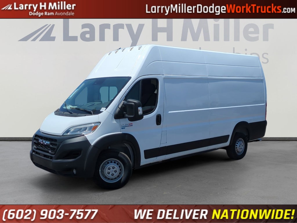 Delivery Van Package (70 mph Maximum Speed, Adaptive Cruise Control w/Stop & Go, Blind Spot & Cross Path Detection, Door Auto Lock-Unlock, Heated Steering Wheel, Heated Windshield, Intelligent Speed Assist (ISA), Lane Departure Warning Plus, Last Mile Delivery Upfit Kit, ParkSense Front/Rear Park Assist w/Stop, Passive Entry, Radio Mute On Reverse, Surround View Camera System, White Noise Backup Alarm, and Wireless Charging Pad), Quick Order Package 24A, 10.09 Axle Ratio, 16 x 6 Steel Wheels, 4 Speakers, 4-Wheel Disc Brakes, ABS brakes, Air Conditioning, AM/FM radio: SiriusXM, Apple CarPlay/Android Auto, Auto High-beam Headlights, Auto-dimming Rear-View mirror, Bodyside moldings, Brake assist, Cloth Flat Driver's Seat, Driver door bin, Driver's Seat Mounted Armrest, Dual front impact airbags, Electronic Stability Control, Emergency communication system, Front anti-roll bar, Front Bucket Seats, Front fog lights, Front License Plate Bracket, Front reading lights, Front wheel independent suspension, Fully automatic headlights, Heated door mirrors, Heated front seats, Heavy Duty Suspension, Illuminated entry, Leather steering wheel, Low tire pressure warning, Navigation System, Occupant sensing airbag, Outside temperature display, Overhead airbag, Overhead console, ParkView Rear Back-Up Camera, Passenger door bin, Power door mirrors, Power steering, Power windows, Radio: Uconnect 5 Nav w/10.1 Display, Rain sensing wipers, Rear anti-roll bar, Remote keyless entry, Steering wheel mounted audio controls, Telescoping steering wheel, Traction control, Trip computer, Turn signal indicator mirrors, and Variably intermittent wipers.