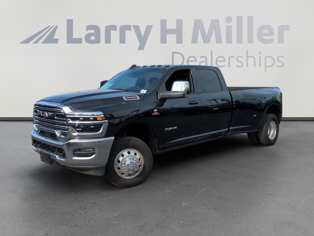Diamond Black Crystal Pearlcoat 2025 Ram 3500 Laramie 4WD 8-Speed Automatic 6.7L I6 #1 Seat Foam Cushion, 10 Speakers, 115V Auxiliary Rear Power Outlet, 14.4 Touchscreen Display, 17 Speaker harman/kardon Premium Sound, 2 Way Rear Headrest Seat, 2nd Row In Floor Storage Bins, 4 Way Front Headrests, 4-Wheel Disc Brakes, 4G LTE Wi-Fi Hot Spot, 50 Gallon Fuel Tank, 5th Wheel/Gooseneck Towing Prep Group, 6000# Front Axle w/Hub Ext, ABS brakes, Active Lane Management System, Adaptive Steering System, Air Conditioning, Alexa Built-In, Alloy wheels, AM/FM radio: SiriusXM with 360L, Apple CarPlay, Apple CarPlay/Android Auto, Auto Adjust In Reverse Exterior Mirrors, Auto Dimming Exterior Passenger Mirror, Auto High Beam Headlamp Control, Auto Level Rear Air Suspension, Auto Power-Folding Mirrors, Auto-Dimming Exterior Mirrors, Auto-dimming Rear-View mirror, Automatic temperature control, Black Wheel Center Hub, Box & Rear Fender Clearance Lamps, Brake assist, Bright Front Bumper, Bright Rear Bumper, Bucket Seats, Bumpers: body-color, Center Hub, Chrome Bumper Package, Chrome Exterior Mirrors, Clearance Lamps, Compass, Connected Travel & Traffic Services, Connectivity - US/Canada, CTR Stop Lamp w/Cargo View Camera, Dash Pass Thru Wire Circuits, Delay-off headlights, Disassociated Touchscreen Display, Driver door bin, Driver vanity mirror, Drowsy Driver Detection, Dual front impact airbags, Dual front side impact airbags, Dual Rear Wheels, Dual Wireless Charging Pad, Electronic Stability Control, Emergency Vehicle Alert System (EVAS), Exterior Mirrors Courtesy Lamps, Exterior Mirrors w/Heating Element, Exterior Mirrors w/Memory, Exterior Mirrors w/Supplemental Signals, Foam Bottle Insert (Door Trim Panel), Folding Flat Load Floor Storage, For Details Visit DriveUconnect.com, For More Info, Call 800-643-2112, Forward & Reverse Utility Lights, Front anti-roll bar, Front Center Armrest w/Storage, Front dual zone A/C, Front fog lights, Front License Plate Bracket, Front reading lights, Front Seat Back Map Pockets, Full Length Upgraded Floor Console, Fully automatic headlights, Garage door transmitter, Global Telematics Box Module (TBM), Google Android Auto, GPS Antenna Input, GPS Navigation, HD Radio, Heated door mirrors, Heated Front Seats, Heated front seats, Heated Steering Wheel, Heated steering wheel, High Back Seats, I/P Mounted Auxiliary Switches, Illuminated entry, Integrated Voice Command w/Bluetooth, Laramie Level 2 Plus Equipment Group, Leather Trim 40/20/40 Bench Seat, Leather Trimmed Bucket Seats, LED Bed Lighting, Low tire pressure warning, Manufacturer's Statement of Origin, Max Tow Package, Mirror Running Lights, MOPAR Deployable Bed Step, MOPAR Front & Rear Rubber Floor Mats, MOPAR Spray In Bedliner, Navigation System, Occupant sensing airbag, Off-Road Information Pages, Outside temperature display, Overhead airbag, Overhead console, Panic alarm, ParkView Rear Back-Up Camera, Passenger door bin, Passenger vanity mirror, Power 2-Way Driver Lumbar Adjust, Power 2-Way Passenger Lumbar Adjust, Power Adjust 8-Way Driver Seat, Power Adjust 8-Way Front Passenger Seat, Power Adjust Mirrors, Power Adjustable Pedals w/Memory, Power Deployable Running Boards, Power door mirrors, Power driver seat, Power Heat Fold Memory Telescopic Mirrors, Power passenger seat, Power steering, Power Telescoping Mirrors, Power windows, Power-Adjustable Convex Aux Mirrors, Quick Order Package 24H Laramie, Radio data system, Radio: Uconnect 5 Nav w/12.0 Display, Radio: Uconnect 5 Nav w/14.4 Display, Rain Sensitive Windshield Wipers, Rear 60/40 Folding Seat, Rear reading lights, Rear seat center armrest, Rear step bumper, Rear window defroster, Remote keyless entry, Remote Tailgate Release, Security system, Selectable Tire Fill Alert, SiriusXM Radio Service, SiriusXM w/360L, Speed control, Split folding rear seat, Ste Price includes: $2000 - 2025 National Holiday Select Inventory Bonus Cash. Exp. 12/01/2025 Price includes $699 dealer added accessories.