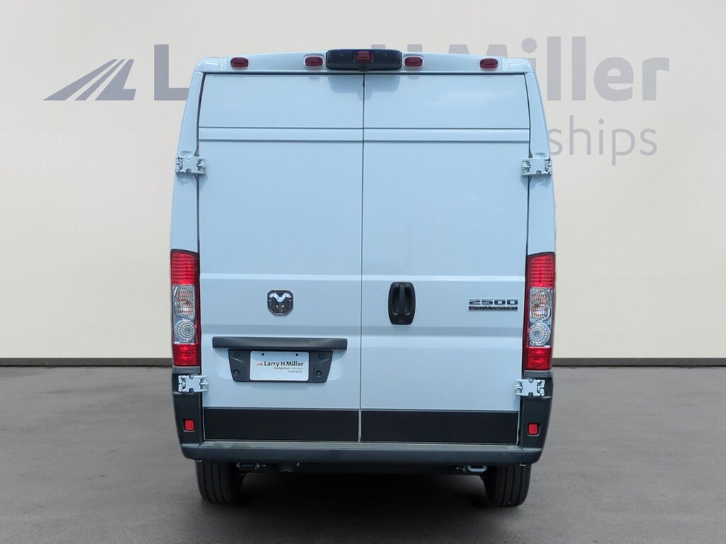 Bright White Clearcoat 2025 Ram ProMaster 2500 High Roof FWD 9-Speed 948TE Automatic 3.6L V6 24V VVT 100 Amp Battery, 115V Auxiliary Power Outlet, 12V Rear Auxiliary Power Outlet, 4 Speakers, 4-Way Manual Adjust Front Passenger Seat, 4-Wheel Disc Brakes, 4.08 Axle Ratio, 4G LTE Wi-Fi Hotspot, ABS brakes, Adaptive Cruise Control w/Stop & Go, Air Conditioning, AM/FM radio: SiriusXM, Apple CarPlay, Apple CarPlay/Android Auto, Black/Gray Seats, Bodyside moldings, Brake assist, Cloth Bucket Seats, Connectivity - US/Canada, Convenience Group, Driver door bin, Driver Seat Armrest, Driver's Seat Mounted Armrest, Electronic Stability Control, Exterior Mirrors w/Heating Element, Exterior Mirrors w/Supplemental Signals, For Details, Visit DriveUconnect.com, For More Info, Call 800-643-2112, Front anti-roll bar, Front Bucket Seats, Front Fog Lamps, Front License Plate Bracket, Front reading lights, Front wheel independent suspension, Global Telematics Box Module (TBM), Google Android Auto, GPS Antenna Input, Heavy Duty Suspension, Illuminated entry, Low tire pressure warning, Manufacturer's Statement of Origin, MOPAR Cargo Compartment Floor Mat, Outside temperature display, Overhead airbag, Overhead console, ParkView Rear Back-Up Camera, Passenger Bucket Seat, Passenger door bin, Power Adjust Mirrors, Power Folding/Heated Mirrors, Power Group, Power steering, Power windows, Power-Adjustable Convex Aux Mirrors, Power-Folding Mirrors, Quick Order Package 22B Tradesman w/Pass Seat, Radio: Uconnect 5 w/7 Display, Rear Cargo LED Lamp, Remote keyless entry, SiriusXM Radio Service, Steering wheel mounted audio controls, Tachometer, Telescoping steering wheel, Traction control, Trip computer, Turn signal indicator mirrors, Variably intermittent wipers, Wheel Center Cap, Wheels: 16 x 6.0 Steel.