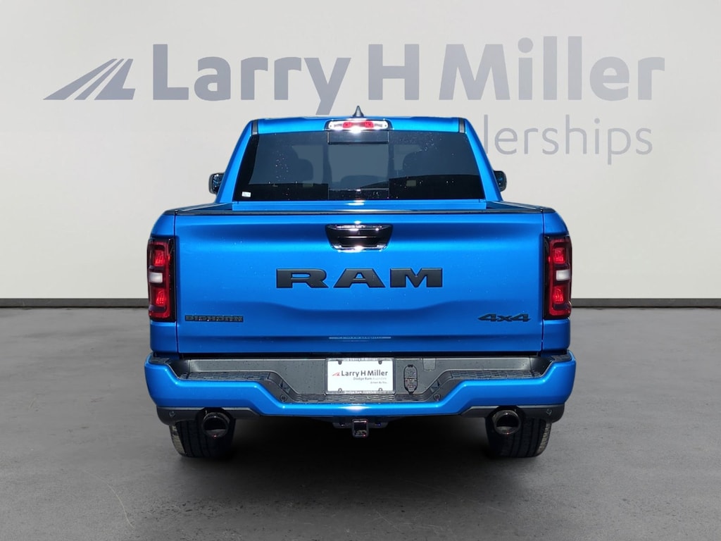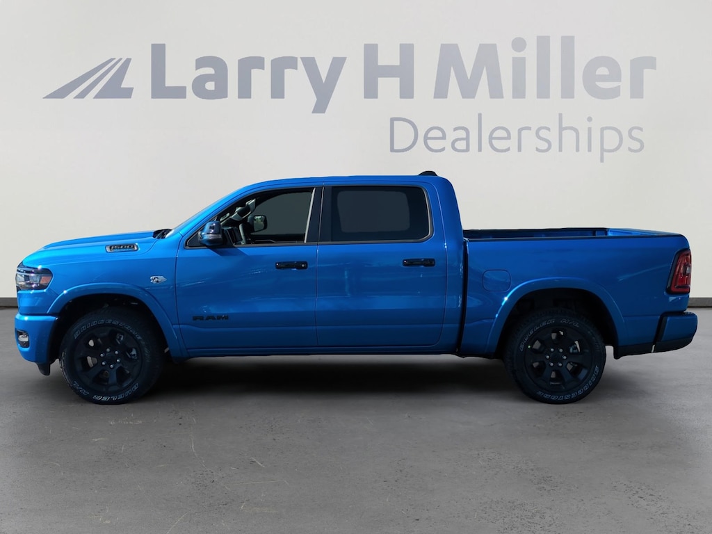 Hydro Blue Pearlcoat 2026 Ram 1500 Big Horn/Lone Star 4WD 8-Speed Automatic HEMI 5.7L V8 Multi Displacement VVT eTorque 115V Auxiliary Power Outlet, 115V Auxiliary Rear Power Outlet, 12 Touchscreen Display, 2nd Row in Floor Storage Bins, 3 Rear Seat Head Restraints, 33 Gallon Fuel Tank, 4 Way Front Headrests, 4-Wheel Disc Brakes, 400W Inverter, 48V Belt Starter Generator, 4G LTE Wi-Fi Hot Spot, 6 Speakers, 9 Amplified Speakers with Subwoofer, ABS brakes, Accent Color Door Handles, Accent Color Premium Power Mirrors, Accent Color Tailgate Handle, Air Conditioning, Air Conditioning ATC with Dual Zone Control, Alloy wheels, AM/FM radio, Anti-Spin Differential Rear Axle, Apple CarPlay, Apple CarPlay/Android Auto, Auto High-beam Headlights, Auto Power-Folding Mirrors, Auto-Dimming Exterior Driver Mirror, Auto-Dimming Rear-View Mirror, Big Horn Level 2 Equipment Group, Black Exterior Mirrors, Black Exterior Truck Badging, Black Headlamp Bezels, Black Interior Accents, Black Painted Exterior Mirrors Caps, Black Premium Power Mirrors, Black Tail Lamp Bezels, Body Color Fender Flares, Body Color Front Bumper, Body Color Rear Bumper with Step Pads, Brake assist, Bucket Seats, Bumpers: chrome, Center Console Parts Module, Cloth Bucket Seats, Cluster 7.0 TFT Color Display, Compass, Configurable Drive Mode, Connected Travel and Traffic Services, Connectivity - US/Canada, Convex Wide-Angle Exterior Mirror Insert, Delay-off headlights, Deluxe Cloth Bucket Seats, Disassociated Touchscreen Display, Driver door bin, Dual Exhaust with Black Tips, Dual front impact airbags, Dual front side impact airbags, Electronic Stability Control, Exterior Mirrors Courtesy Lamps, Exterior Mirrors with Heating Element, Exterior Mirrors with Supplemental Signals, Front anti-roll bar, Front Bucket Seats, Front Center Armrest w/Storage, Front fog lights, Front reading lights, Front Seat Back Map Pockets, Front wheel independent suspension, Full Length Floor Console, Fully automatic headlights, Global Telematics Box Module, Glove Box Lamp, Google Android Auto, GPS Antenna Input, GPS Navigation, Grille Black Surround Black Mesh, HD Radio, Heated door mirrors, Heated Front Seats, Heated Steering Wheel, Illuminated entry, Integrated Center Stack Radio, Integrated Voice Command with Bluetooth, Leather Wrapped Steering Wheel, LED Dome Lamp with on/Off Switch, LED Footwell Lighting, Low tire pressure warning, Manual Adjust 4-Way Driver Seat, Manual Adjust 4-Way Front Passenger Seat, Manual Folding Exterior Mirrors, Manufacturer's Statement of Origin, Media Hub with 2 Charge Only USBs, MOPAR Front and Rear Rubber Floor Mats, Night Edition, Occupant sensing airbag, Outside temperature display, Overhead airbag, Overhead console, Overhead LED Lamps, Panic alarm, ParkView Rear Back-Up Camera, Passenger door bin, Passenger vanity mirror, Power 2-Way Driver Lumbar Adjust, Power Adjust 8-Way Driver Seat, Power Adjustable Pedals, Power door mirrors, Power steering, Power windows, Premium Overhead Console, Quick Order Package 27Z Big Horn, Radio data system, Radio: Uconnect 5 Navigation with 12.0 Display, Radio: Uconnect 5 W with 8.4 Display, RAM Grille Badge - Black, RAM Grille Badge - Chrome, Rear 60/40 Folding Seat, Rear anti-roll bar, Rear Center Armrest, Rear Power Sliding Window, Rear step bumper, Rear Wheelhouse Liners, Rear Window Defroster, Remote keyless entry, Remote Tailgate Release, Security Alarm, SiriusXM Radio Service, SiriusXM with 360L, Speed control, Steering Wheel Mounted Audio Controls, Sun Visors with Illuminated Vanity Mirrors, Supplier Part Tracking (J-1), Tachometer, Telescoping steering wheel, Tilt steering wheel, Traction control, Trailer Brake Control, Trip computer, Universal Garage Door Opener, USB Host Flip, Variably intermittent wipers, Voltmeter, Wheels: 20 x 9.0 Aluminum Painted Clad.