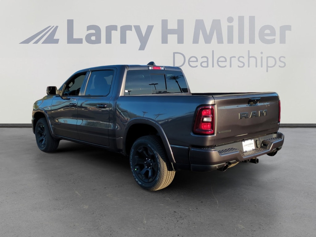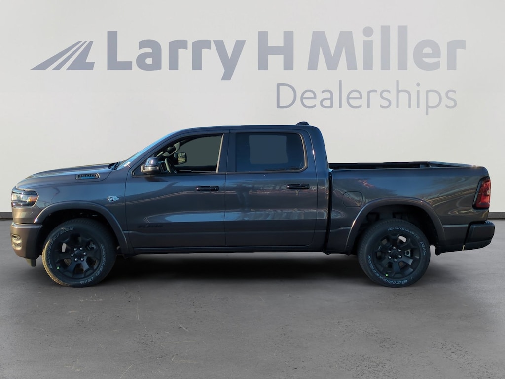 Granite Crystal Metallic Clearcoat 2026 Ram 1500 Big Horn/Lone Star 4WD 8-Speed Automatic HEMI 5.7L V8 Multi Displacement VVT eTorque 115V Auxiliary Power Outlet, 115V Auxiliary Rear Power Outlet, 12 Touchscreen Display, 2nd Row in Floor Storage Bins, 3 Rear Seat Head Restraints, 4 Way Front Headrests, 4-Wheel Disc Brakes, 400W Inverter, 48V Belt Starter Generator, 4G LTE Wi-Fi Hot Spot, 6 Speakers, 9 Amplified Speakers with Subwoofer, ABS brakes, Accent Color Door Handles, Accent Color Premium Power Mirrors, Accent Color Tailgate Handle, Air Conditioning, Air Conditioning ATC with Dual Zone Control, Alloy wheels, AM/FM radio, Anti-Spin Differential Rear Axle, Apple CarPlay, Apple CarPlay/Android Auto, Auto High-beam Headlights, Auto Power-Folding Mirrors, Auto-Dimming Exterior Driver Mirror, Auto-Dimming Rear-View Mirror, Big Horn Level 2 Equipment Group, Black Exterior Mirrors, Black Exterior Truck Badging, Black Headlamp Bezels, Black Interior Accents, Black Painted Exterior Mirrors Caps, Black Premium Power Mirrors, Black Tail Lamp Bezels, Body Color Fender Flares, Body Color Front Bumper, Body Color Rear Bumper with Step Pads, Brake assist, Bucket Seats, Bumpers: chrome, Center Console Parts Module, Cloth Bucket Seats, Cluster 7.0 TFT Color Display, Compass, Configurable Drive Mode, Connected Travel and Traffic Services, Connectivity - US/Canada, Convex Wide-Angle Exterior Mirror Insert, Delay-off headlights, Deluxe Cloth Bucket Seats, Disassociated Touchscreen Display, Driver door bin, Dual Exhaust with Black Tips, Dual front impact airbags, Dual front side impact airbags, Electronic Stability Control, Exterior Mirrors Courtesy Lamps, Exterior Mirrors with Heating Element, Exterior Mirrors with Supplemental Signals, Front anti-roll bar, Front Bucket Seats, Front Center Armrest w/Storage, Front fog lights, Front reading lights, Front Seat Back Map Pockets, Front wheel independent suspension, Full Length Floor Console, Fully automatic headlights, Global Telematics Box Module, Glove Box Lamp, Google Android Auto, GPS Antenna Input, GPS Navigation, Grille Black Surround Black Mesh, HD Radio, Heated door mirrors, Heated Front Seats, Heated Steering Wheel, Illuminated entry, Integrated Center Stack Radio, Integrated Voice Command with Bluetooth, Leather Wrapped Steering Wheel, LED Dome Lamp with on/Off Switch, LED Footwell Lighting, Low tire pressure warning, Manual Adjust 4-Way Driver Seat, Manual Adjust 4-Way Front Passenger Seat, Manual Folding Exterior Mirrors, Manufacturer's Statement of Origin, Media Hub with 2 Charge Only USBs, MOPAR Front and Rear Rubber Floor Mats, Night Edition, Occupant sensing airbag, Outside temperature display, Overhead airbag, Overhead console, Overhead LED Lamps, Panic alarm, ParkView Rear Back-Up Camera, Passenger door bin, Passenger vanity mirror, Power 2-Way Driver Lumbar Adjust, Power Adjust 8-Way Driver Seat, Power Adjustable Pedals, Power door mirrors, Power steering, Power windows, Premium Overhead Console, Quick Order Package 27Z Big Horn, Radio data system, Radio: Uconnect 5 Navigation with 12.0 Display, Radio: Uconnect 5 W with 8.4 Display, RAM Grille Badge - Black, RAM Grille Badge - Chrome, Rear 60/40 Folding Seat, Rear anti-roll bar, Rear Center Armrest, Rear Power Sliding Window, Rear step bumper, Rear Wheelhouse Liners, Rear Window Defroster, Remote keyless entry, Remote Tailgate Release, Security Alarm, SiriusXM Radio Service, SiriusXM with 360L, Speed control, Steering Wheel Mounted Audio Controls, Sun Visors with Illuminated Vanity Mirrors, Supplier Part Tracking (J-1), Tachometer, Telescoping steering wheel, Tilt steering wheel, Traction control, Trailer Brake Control, Trip computer, Universal Garage Door Opener, USB Host Flip, Variably intermittent wipers, Voltmeter, Wheels: 20 x 9.0 Aluminum Painted Clad.
