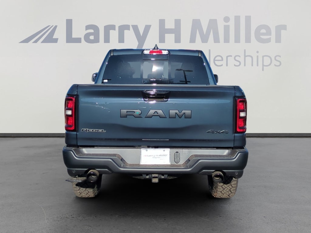 Forged Blue Metallic 2026 Ram 1500 Rebel 4WD 8-Speed Automatic 3.0L I6 10 Speakers, 115V Auxiliary Rear Power Outlet, 14.4 Touchscreen Display, 2-Door Passive Entry, Front Door Locks, 3.92 Rear Axle Ratio, 33 Gallon Fuel Tank, 4 Way Front Headrests, 4-Wheel Disc Brakes, 4G LTE Wi-Fi Hot Spot, ABS brakes, Accent Color Door Handles, Accent Color Premium Power Mirrors, Accent Color Tailgate Handle, Active Noise Control System, Air Conditioning, Alloy wheels, AM/FM radio: SiriusXM with 360L, Apple CarPlay, Apple CarPlay/Android Auto, Auto High-beam Headlights, Auto Power-Folding Mirrors, Auto-Dimming Exterior Driver Mirror, Auto-dimming Rear-View mirror, Automatic temperature control, Bed Utility Group, Black Exterior Mirrors, Black Painted Exterior Mirrors Caps, Brake assist, Bucket Seats, Cloth/Vinyl Bucket Seats, Compass, Connected Travel and Traffic Services, Connectivity - US/Canada, Convex Wide-Angle Exterior Mirror Insert, Delay-off headlights, Disassociated Touchscreen Display, Driver door bin, Driver Seat Memory, Driver vanity mirror, Dual front impact airbags, Dual front side impact airbags, Dual Wireless Charging Pad, Electronic Stability Control, Exterior 115V AC Outlet, Exterior Mirrors Approach Lamps, Exterior Mirrors Courtesy Lamps, Exterior Mirrors with Heating Element, Exterior Mirrors with Memory, Exterior Mirrors with Supplemental Signals, Front anti-roll bar, Front Bucket Seats, Front Center Armrest w/Storage, Front dual zone A/C, Front fog lights, Front Passenger Interactive Display, Front reading lights, Front Seat Back Map Pockets, Front wheel independent suspension, Full Length Upgraded Floor Console, Fully automatic headlights, Garage door transmitter, Global Telematics Box Module, Google Android Auto, GPS Antenna Input, GPS Navigation, Harman/Kardon 19 Speaker Premium Sound, HD Radio, Heated door mirrors, Heated Front Seats, Heated front seats, Heated Second Row Seats, Heated Steering Wheel, Heated steering wheel, Illuminated entry, Integrated Center Stack Radio, Integrated Voice Command with Bluetooth, Leather steering wheel, Low tire pressure warning, Manual Folding Exterior Mirrors, Manufacturer's Statement of Origin, Media Hub with 2 Charge Only USBs, MOPAR 4 Adjustable Cargo Tie-Down Hooks, MOPAR Spray in Bedliner, Navigation System, Occupant sensing airbag, Off-Road Information Pages, Outside temperature display, Overhead airbag, Overhead console, Panic alarm, ParkView Rear Back-Up Camera, Passenger door bin, Passenger vanity mirror, Power 2-Way Driver Lumbar Adjust, Power 2-Way Passenger Lumbar Adjust, Power Adjust 8-Way Driver Seat, Power Adjust 8-Way Front Passenger Seat, Power Adjustable Pedals with Memory, Power door mirrors, Power driver seat, Power steering, Power Tailgate, Power windows, Proximity Approach/Departure Lamps, Quick Order Package 21W Rebel, Radio data system, Radio: Uconnect 5 Nav with 14.4 Display, Radio: Uconnect 5 Navigation with 12.0 Display, Radio/Driver Seat/Mirrors/Pedals Memory, Rain Sensitive Windshield Wipers, Rear 60/40 Folding Seat, Rear anti-roll bar, Rear seat center armrest, Rear step bumper, Rear Window Defroster, Rebel Level 2 Equipment Group, Remote keyless entry, Security Alarm, SiriusXM Radio Service, SiriusXM with 360L, Smartphone as a Key Capable, Speed control, Split folding rear seat, Steering wheel mounted audio controls, Tachometer, Telescoping steering wheel, Tilt steering wheel, Traction control, Trailer Brake Control, Trip computer, USB Host Flip, Variably intermittent wipers, Voltmeter, Wheels: 18 x 8.0 Painted Mid-Gloss Black.