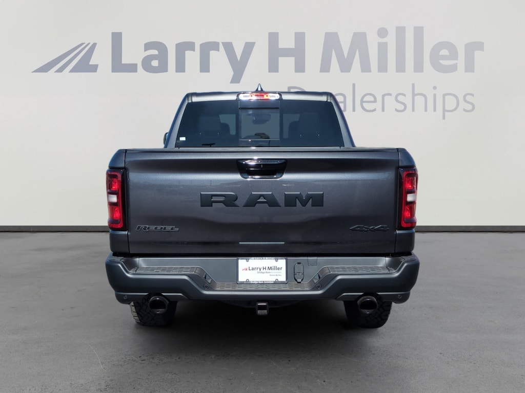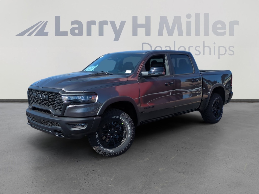 Granite Crystal Metallic Clearcoat 2026 Ram 1500 Rebel 4WD 8-Speed Automatic 3.0L I6 10 Speakers, 115V Auxiliary Rear Power Outlet, 14.4 Touchscreen Display, 2-Door Passive Entry, Front Door Locks, 3.92 Rear Axle Ratio, 33 Gallon Fuel Tank, 4 Way Front Headrests, 4-Corner Air Suspension, 4-Wheel Disc Brakes, 4G LTE Wi-Fi Hot Spot, ABS brakes, Accent Color Door Handles, Accent Color Premium Power Mirrors, Accent Color Tailgate Handle, Active Noise Control System, Air Conditioning, Alloy wheels, AM/FM radio: SiriusXM with 360L, Apple CarPlay, Apple CarPlay/Android Auto, Auto High-beam Headlights, Auto Power-Folding Mirrors, Auto-Dimming Exterior Driver Mirror, Auto-dimming Rear-View mirror, Automatic temperature control, Black Exterior Mirrors, Black Painted Exterior Mirrors Caps, Brake assist, Bucket Seats, Cloth/Vinyl Bucket Seats, Compass, Connected Travel and Traffic Services, Connectivity - US/Canada, Convex Wide-Angle Exterior Mirror Insert, Delay-off headlights, Disassociated Touchscreen Display, Driver door bin, Driver Seat Memory, Driver vanity mirror, Dual front impact airbags, Dual front side impact airbags, Dual Wireless Charging Pad, Electronic Stability Control, Exterior Mirrors Approach Lamps, Exterior Mirrors Courtesy Lamps, Exterior Mirrors with Heating Element, Exterior Mirrors with Memory, Exterior Mirrors with Supplemental Signals, Front anti-roll bar, Front Bucket Seats, Front Center Armrest w/Storage, Front dual zone A/C, Front fog lights, Front Passenger Interactive Display, Front reading lights, Front Seat Back Map Pockets, Front wheel independent suspension, Full Length Upgraded Floor Console, Fully automatic headlights, Garage door transmitter, Global Telematics Box Module, Google Android Auto, GPS Antenna Input, GPS Navigation, Harman/Kardon 19 Speaker Premium Sound, HD Radio, Heated door mirrors, Heated Front Seats, Heated front seats, Heated Second Row Seats, Heated Steering Wheel, Heated steering wheel, Illuminated entry, Integrated Center Stack Radio, Integrated Voice Command with Bluetooth, Leather steering wheel, Low tire pressure warning, Manual Folding Exterior Mirrors, Manufacturer's Statement of Origin, Media Hub with 2 Charge Only USBs, Navigation System, Occupant sensing airbag, Off-Road Information Pages, Outside temperature display, Overhead airbag, Overhead console, Panic alarm, ParkView Rear Back-Up Camera, Passenger door bin, Passenger vanity mirror, Power 2-Way Driver Lumbar Adjust, Power 2-Way Passenger Lumbar Adjust, Power Adjust 8-Way Driver Seat, Power Adjust 8-Way Front Passenger Seat, Power Adjustable Pedals with Memory, Power door mirrors, Power driver seat, Power steering, Power Tailgate, Power windows, Proximity Approach/Departure Lamps, Quick Order Package 21W Rebel, Radio data system, Radio: Uconnect 5 Nav with 14.4 Display, Radio: Uconnect 5 Navigation with 12.0 Display, Radio/Driver Seat/Mirrors/Pedals Memory, Rain Sensitive Windshield Wipers, Rear 60/40 Folding Seat, Rear anti-roll bar, Rear seat center armrest, Rear step bumper, Rear Window Defroster, Rebel Level 2 Equipment Group, Remote keyless entry, Security Alarm, SiriusXM Radio Service, SiriusXM with 360L, Smartphone as a Key Capable, Speed control, Split folding rear seat, Steering wheel mounted audio controls, Tachometer, Telescoping steering wheel, Tilt steering wheel, Traction control, Trailer Brake Control, Trip computer, USB Host Flip, Variably intermittent wipers, Voltmeter, Wheels: 18 x 8.0 Painted Mid-Gloss Black.