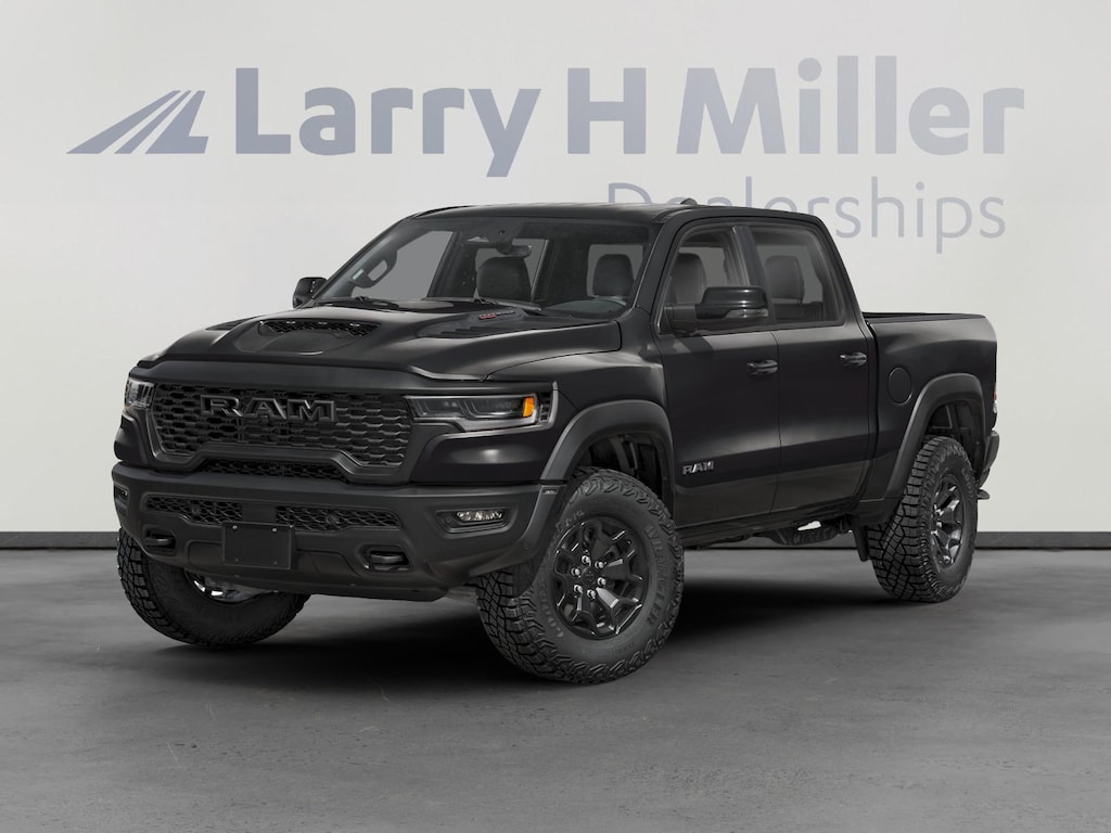 Diamond Black Crystal Pearlcoat 2026 Ram 1500 RHO 4WD 8-Speed Automatic 3.0L I6 10 Speakers, 12-Way/1-Way Trailer Connector, 14.4 Touchscreen Display, 240 Amp Alternator, 3.92 Rear Axle Ratio, 4-Wheel Disc Brakes, 4G LTE Wi-Fi Hot Spot, ABS brakes, Adaptive suspension, Adjustable pedals, Air Conditioning, Alloy wheels, AM/FM radio, Apple CarPlay/Android Auto, Auto High-beam Headlights, Auto Power-Folding Mirrors, Auto-dimming door mirrors, Auto-Dimming Exterior Driver Mirror, Auto-Dimming Exterior Passenger Mirror, Auto-dimming Rear-View mirror, Automatic temperature control, Bed Utility Group, Black Exterior Mirrors, Black Power-Fold Trailer Tow Mirrors, Brake assist, Compass, Connected Travel and Traffic Services, Connectivity - US/Canada, Delay-off headlights, Disassociated Touchscreen Display, Dome Dual LED Reading Lamp, Driver door bin, Driver Power Seat Back Massage, Driver Seat Memory, Driver vanity mirror, Driver/Passenger Wrapped Assist Handles, Drowsy Driver Detection, Dual front impact airbags, Dual front side impact airbags, Dual Wireless Charging Pad, Dual-Pane Panoramic Sunroof, Electronic Stability Control, Evasive Steer Assist, Exterior 115V AC Outlet, Exterior Mirrors Courtesy Lamps, Exterior Mirrors with Heating Element, Exterior Mirrors with Memory, Exterior Mirrors with Supplemental Signals, Exterior Parking Camera Rear, Flareside Box, Forward and Reverse Utility Lights, Front anti-roll bar, Front Bucket Seats, Front Center Armrest w/Storage, Front dual zone A/C, Front fog lights, Front Passenger Interactive Display, Front Passenger Power Seat Back Massage, Front reading lights, Front wheel independent suspension, Full Length Premium Upgraded Floor Console, Fully automatic headlights, Garage door transmitter, GPS Navigation, Hands-Free Active Driving Assist System, Harman/Kardon 19 Speaker Premium Sound, HD Radio, Heads-Up Display, Heated door mirrors, Heated front seats, Heated Second Row Seats, Heated steering wheel, Illuminated entry, Integrated Center Stack Radio, Integrated Voice Command with Bluetooth, Intersection Collision Assist System, Leather Shift Knob, Leather steering wheel, Leather Trimmed Bucket Seats, Leather/Carbon Flat-Bottom Steering Wheel, LED CHMSL Lamp, Low tire pressure warning, Luxury Front Door Trim Panel, Manufacturer's Statement of Origin, Mirror Clearance/Running Lights, MOPAR 4 Adjustable Cargo Tie-Down Hooks, MOPAR Deployable Bed Step, MOPAR RHO Hood Graphics, Navigation System, Occupant sensing airbag, Outside temperature display, Overhead airbag, Overhead console, Panic alarm, Passenger door bin, Passenger vanity mirror, Power Adjustable Pedals with Memory, Power door mirrors, Power driver seat, Power passenger seat, Power steering, Power Tailgate, Power Telescoping Mirrors, Power windows, Power-Adjustable Convex Aux Mirrors, Premium Wrapped Instrument Panel Bezel, Quick Order Package 22Y RHO, Radio data system, Radio: Uconnect 5 Nav with 14.4 Display, Radio: Uconnect 5 Navigation with 12.0 Display, Radio/Driver Seat/Mirrors/Pedals Memory, Rain Sensitive Windshield Wipers, Real Carbon Fiber Interior Accents, Rear 60/40 Folding Split Recline Seat, Rear reading lights, Rear seat center armrest, Rear step bumper, Rear window defroster, Remote keyless entry, RHO Level 1 Equipment Group, Security system, SiriusXM Radio Service, Smartphone as a Key Capable, Speed control, Split folding rear seat, Sport steering wheel, Steering wheel mounted audio controls, Surround View Camera System, Tachometer, Telescoping steering wheel, Tilt steering wheel, Traction control, Traffic Sign Recognition, Trailer Reverse Steering Control, Trailer Tire Pressure Monitoring System, Trailer Tow Group, Trailer Tow Mirrors, Trip computer, Turn signal indicator mirrors, USB Host Flip, Variably intermittent wipers, Ventilated Front Seats, Ventilated Rear Seats, Voltmeter, Wheels: 18 x 9 Bead-Lock Aluminum, Wheels: 18 x 9 Black Paint/Polish Aluminum.