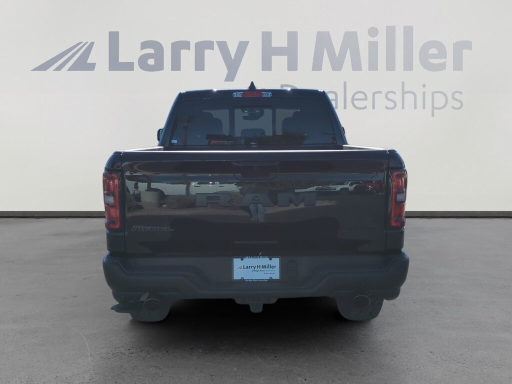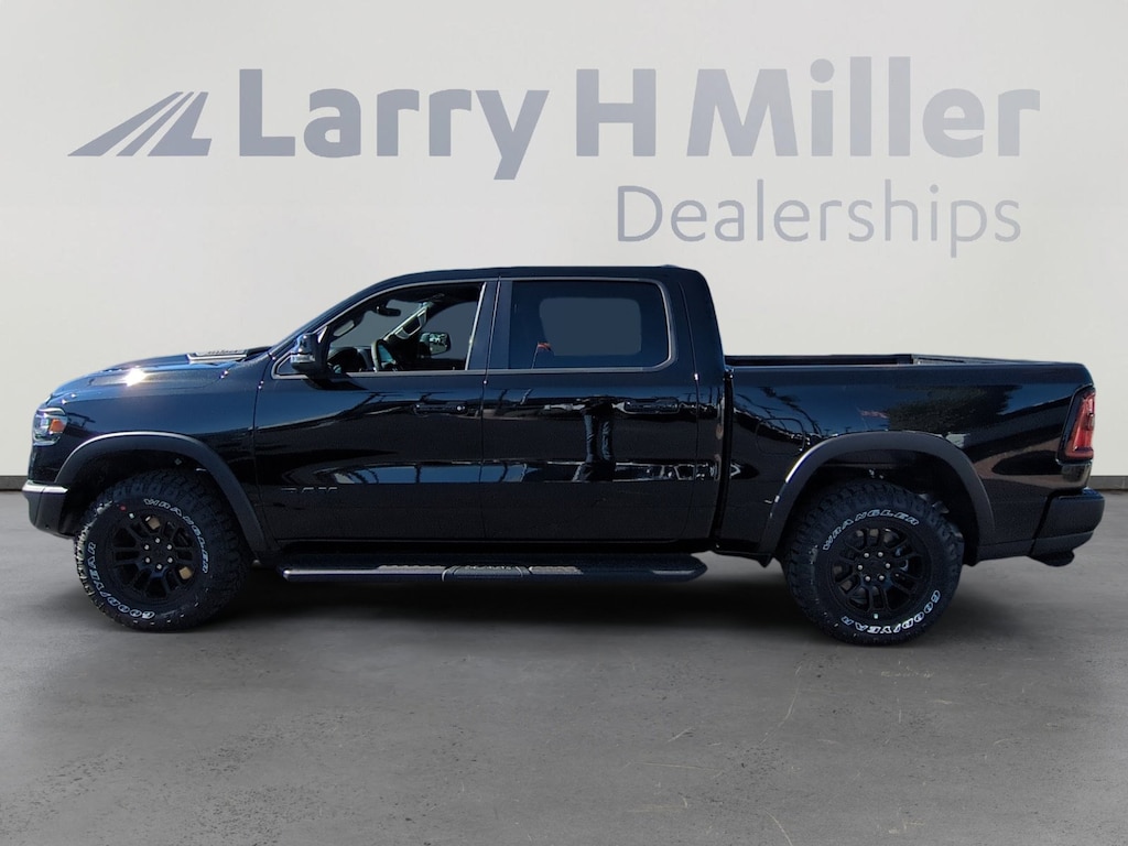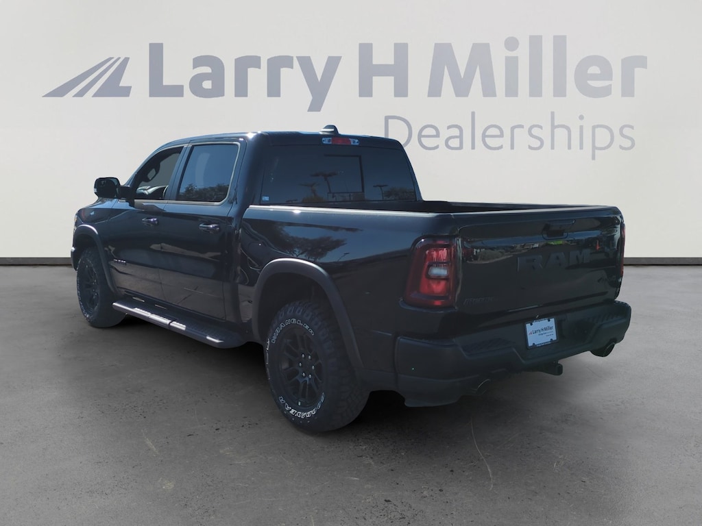 Diamond Black Crystal Pearlcoat 2026 Ram 1500 Rebel 4WD 8-Speed Automatic 3.0L I6 10 Speakers, 115V Auxiliary Rear Power Outlet, 14.4 Touchscreen Display, 2-Door Passive Entry, Front Door Locks, 3.92 Rear Axle Ratio, 33 Gallon Fuel Tank, 4 Way Front Headrests, 4-Corner Air Suspension, 4-Wheel Disc Brakes, 4G LTE Wi-Fi Hot Spot, ABS brakes, Accent Color Door Handles, Accent Color Premium Power Mirrors, Accent Color Tailgate Handle, Active Noise Control System, Air Conditioning, Alloy wheels, AM/FM radio: SiriusXM with 360L, Apple CarPlay, Apple CarPlay/Android Auto, Auto High-beam Headlights, Auto Power-Folding Mirrors, Auto-Dimming Exterior Driver Mirror, Auto-dimming Rear-View mirror, Automatic temperature control, Bed Utility Group, Black Exterior Mirrors, Black Painted Exterior Mirrors Caps, Brake assist, Bucket Seats, Cloth/Vinyl Bucket Seats, Compass, Connected Travel & Traffic Services, Connectivity - US/Canada, Convex Wide-Angle Exterior Mirror Insert, Delay-off headlights, Disassociated Touchscreen Display, Dome Dual LED Reading Lamp, Driver door bin, Driver Seat Memory, Driver vanity mirror, Dual front impact airbags, Dual front side impact airbags, Dual Wireless Charging Pad, Dual-Pane Panoramic Sunroof, Electronic Stability Control, Exterior 115V AC Outlet, Exterior Mirrors Approach Lamps, Exterior Mirrors Courtesy Lamps, Exterior Mirrors w/Heating Element, Exterior Mirrors w/Memory, Exterior Mirrors w/Supplemental Signals, Front anti-roll bar, Front Bucket Seats, Front Center Armrest w/Storage, Front dual zone A/C, Front fog lights, Front Passenger Interactive Display, Front reading lights, Front Seat Back Map Pockets, Front wheel independent suspension, Full Length Upgraded Floor Console, Fully automatic headlights, Garage door transmitter, Global Telematics Box Module (TBM), Google Android Auto, GPS Antenna Input, GPS Navigation, harman/kardon 19 Speaker Premium Sound, HD Radio, Heated door mirrors, Heated Front Seats, Heated front seats, Heated Second Row Seats, Heated Steering Wheel, Heated steering wheel, Illuminated entry, Integrated Center Stack Radio, Integrated Voice Command w/Bluetooth, Leather steering wheel, Low tire pressure warning, Manual Folding Exterior Mirrors, Manufacturer's Statement of Origin, Media Hub w/2 Charge Only USBs, MOPAR 4 Adjustable Cargo Tie-Down Hooks, Mopar Black Tubular Side Steps, MOPAR Spray In Bedliner, Navigation System, Occupant sensing airbag, Off-Road Information Pages, Outside temperature display, Overhead airbag, Overhead console, Panic alarm, ParkView Rear Back-Up Camera, Passenger door bin, Passenger vanity mirror, Power 2-Way Driver Lumbar Adjust, Power 2-Way Passenger Lumbar Adjust, Power Adjust 8-Way Driver Seat, Power Adjust 8-Way Front Passenger Seat, Power Adjustable Pedals w/Memory, Power door mirrors, Power driver seat, Power steering, Power Tailgate, Power windows, Proximity Approach/Departure Lamps, Quick Order Package 21W Rebel, Radio data system, Radio: Uconnect 5 Nav w/12.0 Display, Radio: Uconnect 5 Nav w/14.4 Display, Radio/Driver Seat/Mirrors/Pedals Memory, Rain Sensitive Windshield Wipers, Rear 60/40 Folding Seat, Rear anti-roll bar, Rear seat center armrest, Rear step bumper, Rear Window Defroster, Rebel Level 2 Equipment Group, Remote keyless entry, Security Alarm, SiriusXM Radio Service, SiriusXM w/360L, Smartphone As A Key Capable, Speed control, Split folding rear seat, Steering wheel mounted audio controls, Tachometer, Telescoping steering wheel, Tilt steering wheel, Traction control, Trailer Brake Control, Trip computer, USB Host Flip, Variably intermittent wipers, Voltmeter, Wheels: 18 x 8.0 Painted Mid-Gloss Black.