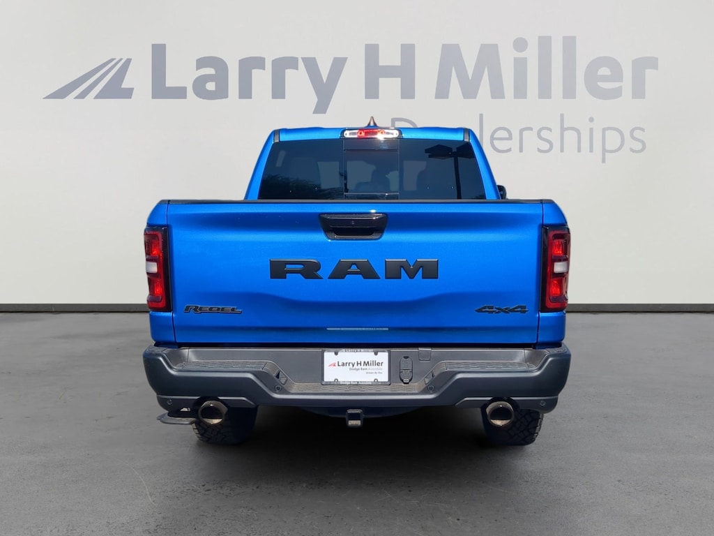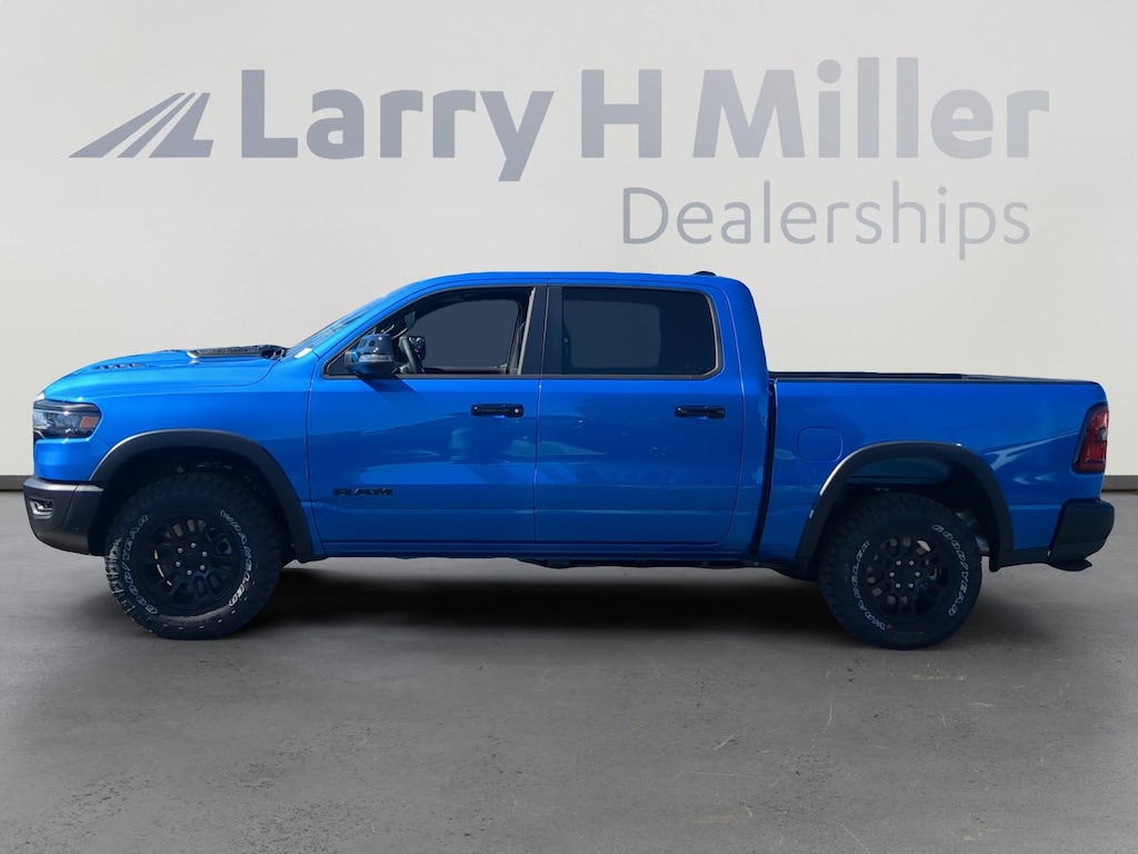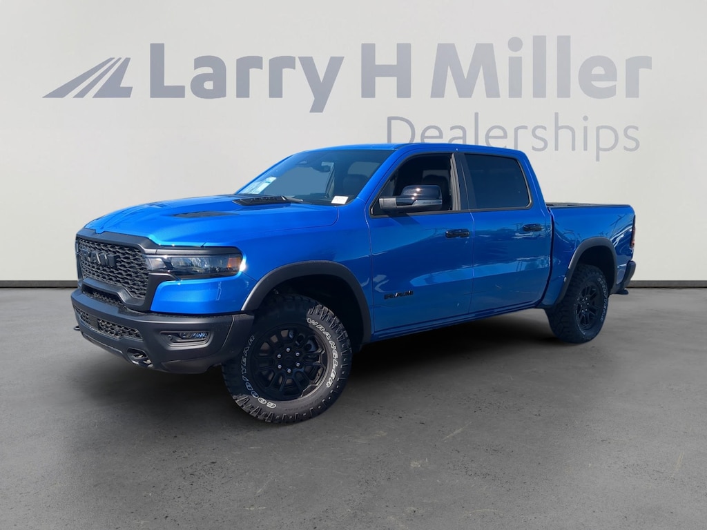 Hydro Blue Pearlcoat 2026 Ram 1500 Rebel 4WD 8-Speed Automatic 3.0L I6 10 Speakers, 115V Auxiliary Rear Power Outlet, 14.4 Touchscreen Display, 2-Door Passive Entry, Front Door Locks, 3.92 Rear Axle Ratio, 33 Gallon Fuel Tank, 4 Way Front Headrests, 4-Wheel Disc Brakes, 4G LTE Wi-Fi Hot Spot, ABS brakes, Accent Color Door Handles, Accent Color Premium Power Mirrors, Accent Color Tailgate Handle, Air Conditioning, Alloy wheels, AM/FM radio: SiriusXM with 360L, Apple CarPlay, Apple CarPlay/Android Auto, Auto High-beam Headlights, Auto Power-Folding Mirrors, Auto-Dimming Exterior Driver Mirror, Auto-dimming Rear-View mirror, Automatic temperature control, Bed Utility Group, Black Exterior Mirrors, Black Painted Exterior Mirrors Caps, Brake assist, Bucket Seats, Cloth/Vinyl Bucket Seats, Compass, Connected Travel & Traffic Services, Connectivity - US/Canada, Convex Wide-Angle Exterior Mirror Insert, Delay-off headlights, Disassociated Touchscreen Display, Driver door bin, Driver Seat Memory, Driver vanity mirror, Dual front impact airbags, Dual front side impact airbags, Dual Wireless Charging Pad, Electronic Stability Control, Exterior 115V AC Outlet, Exterior Mirrors Approach Lamps, Exterior Mirrors Courtesy Lamps, Exterior Mirrors w/Heating Element, Exterior Mirrors w/Memory, Exterior Mirrors w/Supplemental Signals, Front anti-roll bar, Front Bucket Seats, Front Center Armrest w/Storage, Front dual zone A/C, Front fog lights, Front Passenger Interactive Display, Front reading lights, Front Seat Back Map Pockets, Front wheel independent suspension, Full Length Upgraded Floor Console, Fully automatic headlights, Garage door transmitter, Global Telematics Box Module (TBM), Google Android Auto, GPS Antenna Input, GPS Navigation, harman/kardon 19 Speaker Premium Sound, HD Radio, Heated door mirrors, Heated Front Seats, Heated front seats, Heated Second Row Seats, Heated Steering Wheel, Heated steering wheel, Illuminated entry, Integrated Center Stack Radio, Integrated Voice Command w/Bluetooth, Leather steering wheel, Low tire pressure warning, Manual Folding Exterior Mirrors, Manufacturer's Statement of Origin, Media Hub w/2 Charge Only USBs, MOPAR 4 Adjustable Cargo Tie-Down Hooks, MOPAR Spray In Bedliner, Navigation System, Occupant sensing airbag, Off-Road Information Pages, Outside temperature display, Overhead airbag, Overhead console, Panic alarm, ParkView Rear Back-Up Camera, Passenger door bin, Passenger vanity mirror, Power 2-Way Driver Lumbar Adjust, Power 2-Way Passenger Lumbar Adjust, Power Adjust 8-Way Driver Seat, Power Adjust 8-Way Front Passenger Seat, Power Adjustable Pedals w/Memory, Power door mirrors, Power driver seat, Power steering, Power Tailgate, Power windows, Proximity Approach/Departure Lamps, Quick Order Package 21W Rebel, Radio data system, Radio: Uconnect 5 Nav w/12.0 Display, Radio: Uconnect 5 Nav w/14.4 Display, Radio/Driver Seat/Mirrors/Pedals Memory, Rain Sensitive Windshield Wipers, Rear 60/40 Folding Seat, Rear anti-roll bar, Rear seat center armrest, Rear step bumper, Rear Window Defroster, Rebel Level 2 Equipment Group, Remote keyless entry, Security Alarm, SiriusXM Radio Service, SiriusXM w/360L, Smartphone As A Key Capable, Speed control, Split folding rear seat, Steering wheel mounted audio controls, Tachometer, Telescoping steering wheel, Tilt steering wheel, Traction control, Trailer Brake Control, Trip computer, USB Host Flip, Variably intermittent wipers, Voltmeter, Wheels: 18 x 8.0 Painted Mid-Gloss Black.