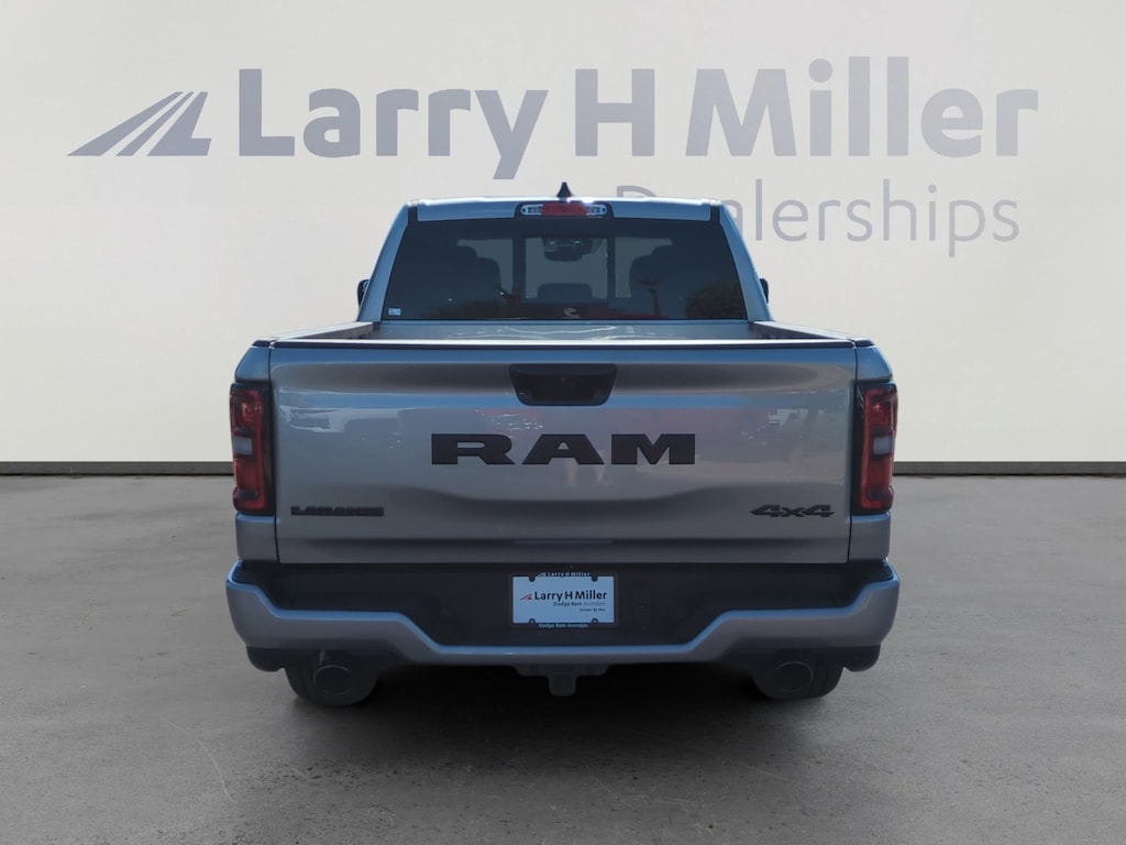 Billet Silver Metallic Clearcoat 2026 Ram 1500 Laramie 4WD 8-Speed Automatic 3.0L I6 10 Speakers, 14.4 Touchscreen Display, 33 Gallon Fuel Tank, 4-Corner Air Suspension, 4-Wheel Disc Brakes, 4G LTE Wi-Fi Hot Spot, ABS brakes, Accent Color Door Handles, Accent Color Premium Power Mirrors, Accent Color Tailgate Handle, Active Noise Control System, Air Conditioning, Alloy wheels, AM/FM radio: SiriusXM with 360L, Anti-Spin Differential Rear Axle, Apple CarPlay, Apple CarPlay/Android Auto, Audio memory, Auto High-beam Headlights, Auto Power-Folding Mirrors, Auto-dimming door mirrors, Auto-Dimming Exterior Driver Mirror, Auto-dimming Rear-View mirror, Automatic temperature control, Black Exterior Truck Badging, Black Headlamp Bezels, Black Interior Accents, Black Painted Exterior Mirrors Caps, Black Tail Lamp Bezels, Body Color Front Bumper, Body Color Rear Bumper w/Step Pads, Brake assist, Bumpers: chrome, Chrome Exterior Mirrors, Cluster 12 TFT Color Display, Compass, Connected Travel & Traffic Services, Connectivity - US/Canada, Convex Wide-Angle Exterior Mirror Insert, Delay-off headlights, Disassociated Touchscreen Display, Driver door bin, Driver vanity mirror, Dual Exhaust w/Black Tips, Dual front impact airbags, Dual front side impact airbags, Dual Wireless Charging Pad, Electronic Stability Control, Exterior Mirrors Approach Lamps, Exterior Mirrors Courtesy Lamps, Exterior Mirrors w/Heating Element, Exterior Mirrors w/Memory, Exterior Mirrors w/Supplemental Signals, Front anti-roll bar, Front Bucket Seats, Front Center Armrest w/Storage, Front dual zone A/C, Front fog lights, Front Passenger Interactive Display, Front reading lights, Front wheel independent suspension, Fully automatic headlights, Garage door transmitter, Global Telematics Box Module (TBM), Google Android Auto, GPS Antenna Input, GPS Navigation, Grille Surround 3 Black Texture 2 Black, harman/kardon 19 Speaker Premium Sound, HD Radio, Heated door mirrors, Heated front seats, Heated rear seats, Heated steering wheel, Illuminated entry, Integrated Center Stack Radio, Integrated Voice Command w/Bluetooth, Laramie Level 2 Equipment Group, Leather steering wheel, Leather Trimmed Bucket Seats, Low tire pressure warning, Manufacturer's Statement of Origin, Memory seat, MOPAR Front & Rear Rubber Floor Mats, Navigation System, Night Edition, Occupant sensing airbag, Off-Road Information Pages, Outside temperature display, Overhead airbag, Overhead console, Panic alarm, ParkView Rear Back-Up Camera, Passenger door bin, Passenger vanity mirror, Pirelli Brand Tires, Power door mirrors, Power driver seat, Power passenger seat, Power steering, Power Tailgate, Power windows, Proximity Approach/Departure Lamps, Quick Order Package 21H Laramie, Radio data system, Radio: Uconnect 5 Nav w/12.0 Display, Radio: Uconnect 5 Nav w/14.4 Display, Rain Sensitive Windshield Wipers, RAM Grille Badge - Black, RAM Grille Badge - Chrome, Rear anti-roll bar, Rear reading lights, Rear seat center armrest, Rear step bumper, Remote keyless entry, Secondary Active Grille Shutters, Security system, SiriusXM Radio Service, SiriusXM w/360L, Smartphone As A Key Capable, Speed control, Split folding rear seat, Sport Performance Hood, Steering wheel mounted audio controls, Tachometer, Telescoping steering wheel, Tilt steering wheel, Traction control, Trailer Brake Control, Trip computer, Turn signal indicator mirrors, USB Host Flip, Variably intermittent wipers, Ventilated front seats, Voltmeter, Wheels: 20 x 9 Premium Paint/Polish, Wheels: 22 x 9 Forged Aluminum.