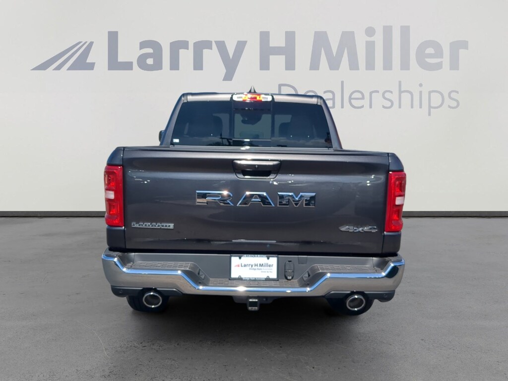 Granite Crystal Metallic Clearcoat 2026 Ram 1500 Laramie 4WD 8-Speed Automatic 3.0L I6 10 Speakers, 14.4 Touchscreen Display, 33 Gallon Fuel Tank, 4-Corner Air Suspension, 4-Wheel Disc Brakes, 4G LTE Wi-Fi Hot Spot, ABS brakes, Active Noise Control System, Air Conditioning, Alloy wheels, AM/FM radio: SiriusXM with 360L, Anti-Spin Differential Rear Axle, Apple CarPlay, Apple CarPlay/Android Auto, Audio memory, Auto High-beam Headlights, Auto Power-Folding Mirrors, Auto-dimming door mirrors, Auto-Dimming Exterior Driver Mirror, Auto-dimming Rear-View mirror, Automatic temperature control, Brake assist, Bumpers: chrome, Chrome Exterior Mirrors, Cluster 12 TFT Color Display, Compass, Connected Travel & Traffic Services, Connectivity - US/Canada, Convex Wide-Angle Exterior Mirror Insert, Delay-off headlights, Disassociated Touchscreen Display, Driver door bin, Driver vanity mirror, Dual front impact airbags, Dual front side impact airbags, Dual Wireless Charging Pad, Electronic Stability Control, Exterior Mirrors Courtesy Lamps, Exterior Mirrors w/Heating Element, Exterior Mirrors w/Memory, Exterior Mirrors w/Supplemental Signals, Front anti-roll bar, Front Bucket Seats, Front Center Armrest w/Storage, Front dual zone A/C, Front fog lights, Front Passenger Interactive Display, Front reading lights, Front wheel independent suspension, Fully automatic headlights, Garage door transmitter, Global Telematics Box Module (TBM), Google Android Auto, GPS Antenna Input, GPS Navigation, harman/kardon 19 Speaker Premium Sound, HD Radio, Heated door mirrors, Heated front seats, Heated rear seats, Heated steering wheel, Illuminated entry, Integrated Center Stack Radio, Integrated Voice Command w/Bluetooth, Laramie Level 2 Equipment Group, Leather steering wheel, Leather Trimmed Bucket Seats, Low tire pressure warning, Manufacturer's Statement of Origin, Memory seat, MOPAR Front & Rear Rubber Floor Mats, Navigation System, Occupant sensing airbag, Off-Road Information Pages, Outside temperature display, Overhead airbag, Overhead console, Panic alarm, ParkView Rear Back-Up Camera, Passenger door bin, Passenger vanity mirror, Power door mirrors, Power driver seat, Power passenger seat, Power steering, Power Tailgate, Power windows, Quick Order Package 21H Laramie, Radio data system, Radio: Uconnect 5 Nav w/12.0 Display, Radio: Uconnect 5 Nav w/14.4 Display, Rain Sensitive Windshield Wipers, RAM Grille Badge - Chrome, Rear anti-roll bar, Rear reading lights, Rear seat center armrest, Rear step bumper, Remote keyless entry, Secondary Active Grille Shutters, Security system, SiriusXM Radio Service, SiriusXM w/360L, Smartphone As A Key Capable, Speed control, Split folding rear seat, Steering wheel mounted audio controls, Tachometer, Telescoping steering wheel, Tilt steering wheel, Traction control, Trip computer, Turn signal indicator mirrors, USB Host Flip, Variably intermittent wipers, Ventilated front seats, Voltmeter, Wheels: 20 x 9 Premium Paint/Polish.
