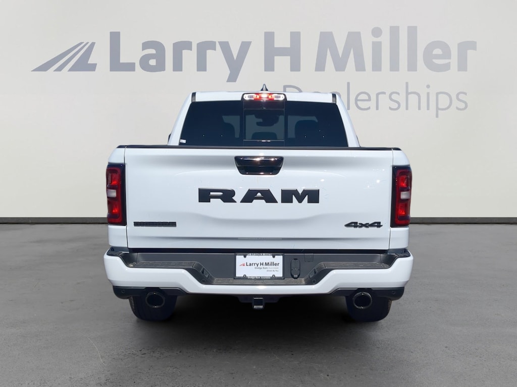 Bright White Clearcoat 2026 Ram 1500 Big Horn/Lone Star 4WD 8-Speed Automatic 3.0L I6 115V Auxiliary Power Outlet, 115V Auxiliary Rear Power Outlet, 12 Touchscreen Display, 2nd Row In Floor Storage Bins, 3 Rear Seat Head Restraints, 33 Gallon Fuel Tank, 4 Way Front Headrests, 4-Wheel Disc Brakes, 400W Inverter, 48V Belt Starter Generator, 4G LTE Wi-Fi Hot Spot, 6 Speakers, 9 Amplified Speakers w/Subwoofer, ABS brakes, Accent Color Door Handles, Accent Color Premium Power Mirrors, Accent Color Tailgate Handle, Air Conditioning, Air Conditioning ATC w/Dual Zone Control, Alloy wheels, AM/FM radio, Anti-Spin Differential Rear Axle, Apple CarPlay, Apple CarPlay/Android Auto, Auto High-beam Headlights, Auto Power-Folding Mirrors, Auto-Dimming Exterior Driver Mirror, Auto-Dimming Rear-View Mirror, Big Horn Level 2 Equipment Group, Black Exterior Mirrors, Black Exterior Truck Badging, Black Headlamp Bezels, Black Interior Accents, Black Painted Exterior Mirrors Caps, Black Premium Power Mirrors, Black Tail Lamp Bezels, Body Color Fender Flares, Body Color Front Bumper, Body Color Rear Bumper w/Step Pads, Brake assist, Bucket Seats, Bumpers: chrome, Center Console Parts Module, Cloth Bucket Seats, Cluster 12 TFT Color Display, Cluster 7.0 TFT Color Display, Compass, Configurable Drive Mode, Connected Travel & Traffic Services, Connectivity - US/Canada, Convex Wide-Angle Exterior Mirror Insert, Delay-off headlights, Deluxe Cloth Bucket Seats, Disassociated Touchscreen Display, Driver door bin, Dual Exhaust w/Black Tips, Dual front impact airbags, Dual front side impact airbags, Electronic Stability Control, Exterior Mirrors Courtesy Lamps, Exterior Mirrors w/Heating Element, Exterior Mirrors w/Supplemental Signals, Front anti-roll bar, Front Bucket Seats, Front Center Armrest w/Storage, Front fog lights, Front reading lights, Front Seat Back Map Pockets, Front wheel independent suspension, Full Length Floor Console, Fully automatic headlights, Global Telematics Box Module (TBM), Glove Box Lamp, Google Android Auto, GPS Antenna Input, GPS Navigation, Grille Black Surround Black Mesh, HD Radio, Heated door mirrors, Heated Front Seats, Heated Steering Wheel, Illuminated entry, Integrated Center Stack Radio, Integrated Voice Command w/Bluetooth, Leather Wrapped Steering Wheel, LED Dome Lamp w/On/Off Switch, LED Footwell Lighting, Low tire pressure warning, Manual Adjust 4-Way Driver Seat, Manual Adjust 4-Way Front Passenger Seat, Manual Folding Exterior Mirrors, Manufacturer's Statement of Origin, Media Hub w/2 Charge Only USBs, MOPAR Front & Rear Rubber Floor Mats, Night Edition, Occupant sensing airbag, Outside temperature display, Overhead airbag, Overhead console, Overhead LED Lamps, Panic alarm, ParkView Rear Back-Up Camera, Passenger door bin, Passenger vanity mirror, Power 2-Way Driver Lumbar Adjust, Power Adjust 8-Way Driver Seat, Power Adjustable Pedals, Power door mirrors, Power steering, Power windows, Premium Overhead Console, Quick Order Package 21Z Big Horn, Radio data system, Radio: Uconnect 5 Nav w/12.0 Display, Radio: Uconnect 5 W w/8.4 Display, RAM Grille Badge - Black, RAM Grille Badge - Chrome, Rear 60/40 Folding Seat, Rear anti-roll bar, Rear Center Armrest, Rear Power Sliding Window, Rear step bumper, Rear Wheelhouse Liners, Rear Window Defroster, Remote keyless entry, Remote Tailgate Release, Secondary Active Grille Shutters, Security Alarm, SiriusXM Radio Service, SiriusXM w/360L, Speed control, Steering Wheel Mounted Audio Controls, Sun Visors w/Illuminated Vanity Mirrors, Supplier Part Tracking (J-1), Tachometer, Telescoping steering wheel, Tilt steering wheel, Traction control, Trailer Brake Control, Trip computer, Universal Garage Door Opener, USB Host Flip, Variably intermittent wipers, Voltmeter, Wheels: 18 x 8 Cast-Aluminum Painted, Wheels: 20 x 9.0 Aluminum Painted Clad, Wheels: 20 x 9 Aluminum Chrome Clad (WRK), Wireless Charging Pad.