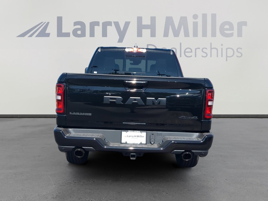 Diamond Black Crystal Pearlcoat 2026 Ram 1500 Laramie 4WD 8-Speed Automatic 3.0L I6 10 Speakers, 14.4 Touchscreen Display, 33 Gallon Fuel Tank, 4-Wheel Disc Brakes, 4G LTE Wi-Fi Hot Spot, ABS brakes, Accent Color Door Handles, Accent Color Premium Power Mirrors, Accent Color Tailgate Handle, Active Noise Control System, Air Conditioning, Alloy wheels, AM/FM radio: SiriusXM with 360L, Anti-Spin Differential Rear Axle, Apple CarPlay, Apple CarPlay/Android Auto, Audio memory, Auto High-beam Headlights, Auto Power-Folding Mirrors, Auto-dimming door mirrors, Auto-Dimming Exterior Driver Mirror, Auto-dimming Rear-View mirror, Automatic temperature control, Black Exterior Truck Badging, Black Headlamp Bezels, Black Interior Accents, Black Painted Exterior Mirrors Caps, Black Tail Lamp Bezels, Body Color Front Bumper, Body Color Rear Bumper w/Step Pads, Brake assist, Bumpers: chrome, Chrome Exterior Mirrors, Cluster 12 TFT Color Display, Compass, Connected Travel & Traffic Services, Connectivity - US/Canada, Convex Wide-Angle Exterior Mirror Insert, Delay-off headlights, Disassociated Touchscreen Display, Driver door bin, Driver vanity mirror, Dual Exhaust w/Black Tips, Dual front impact airbags, Dual front side impact airbags, Dual Wireless Charging Pad, Electronic Stability Control, Exterior Mirrors Approach Lamps, Exterior Mirrors Courtesy Lamps, Exterior Mirrors w/Heating Element, Exterior Mirrors w/Memory, Exterior Mirrors w/Supplemental Signals, Front anti-roll bar, Front Bucket Seats, Front Center Armrest w/Storage, Front dual zone A/C, Front fog lights, Front Passenger Interactive Display, Front reading lights, Front wheel independent suspension, Fully automatic headlights, Garage door transmitter, Global Telematics Box Module (TBM), Google Android Auto, GPS Antenna Input, GPS Navigation, Grille Surround 3 Black Texture 2 Black, harman/kardon 19 Speaker Premium Sound, HD Radio, Heated door mirrors, Heated front seats, Heated rear seats, Heated steering wheel, Illuminated entry, Integrated Center Stack Radio, Integrated Voice Command w/Bluetooth, Laramie Level 2 Equipment Group, Leather steering wheel, Leather Trimmed Bucket Seats, Low tire pressure warning, Manufacturer's Statement of Origin, Memory seat, MOPAR Front & Rear Rubber Floor Mats, Navigation System, Night Edition, Occupant sensing airbag, Off-Road Information Pages, Outside temperature display, Overhead airbag, Overhead console, Panic alarm, ParkView Rear Back-Up Camera, Passenger door bin, Passenger vanity mirror, Pirelli Brand Tires, Power door mirrors, Power driver seat, Power passenger seat, Power steering, Power Tailgate, Power windows, Proximity Approach/Departure Lamps, Quick Order Package 21H Laramie, Radio data system, Radio: Uconnect 5 Nav w/12.0 Display, Radio: Uconnect 5 Nav w/14.4 Display, Rain Sensitive Windshield Wipers, RAM Grille Badge - Black, RAM Grille Badge - Chrome, Rear anti-roll bar, Rear reading lights, Rear seat center armrest, Rear step bumper, Remote keyless entry, Secondary Active Grille Shutters, Security system, SiriusXM Radio Service, SiriusXM w/360L, Smartphone As A Key Capable, Speed control, Split folding rear seat, Sport Performance Hood, Steering wheel mounted audio controls, Tachometer, Telescoping steering wheel, Tilt steering wheel, Traction control, Trailer Brake Control, Trip computer, Turn signal indicator mirrors, USB Host Flip, Variably intermittent wipers, Ventilated front seats, Voltmeter, Wheels: 20 x 9 Premium Paint/Polish, Wheels: 22 x 9 Forged Aluminum.