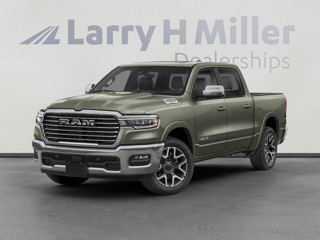 Canyon Lake 2026 Ram 1500 Laramie 4WD 8-Speed Automatic 3.0L I6 10 Speakers, 14.4 Touchscreen Display, 33 Gallon Fuel Tank, 4-Corner Air Suspension, 4-Wheel Disc Brakes, 4G LTE Wi-Fi Hot Spot, ABS brakes, Accent Color Door Handles, Accent Color Premium Power Mirrors, Accent Color Tailgate Handle, Active Noise Control System, Air Conditioning, Alloy wheels, AM/FM radio: SiriusXM with 360L, Anti-Spin Differential Rear Axle, Apple CarPlay, Apple CarPlay/Android Auto, Audio memory, Auto High-beam Headlights, Auto Power-Folding Mirrors, Auto-dimming door mirrors, Auto-Dimming Exterior Driver Mirror, Auto-dimming Rear-View mirror, Automatic temperature control, Black Exterior Truck Badging, Black Headlamp Bezels, Black Interior Accents, Black Painted Exterior Mirrors Caps, Black Tail Lamp Bezels, Body Color Front Bumper, Body Color Rear Bumper w/Step Pads, Brake assist, Bumpers: chrome, Chrome Exterior Mirrors, Cluster 12 TFT Color Display, Compass, Connected Travel & Traffic Services, Connectivity - US/Canada, Convex Wide-Angle Exterior Mirror Insert, Delay-off headlights, Disassociated Touchscreen Display, Driver door bin, Driver vanity mirror, Dual Exhaust w/Black Tips, Dual front impact airbags, Dual front side impact airbags, Dual Wireless Charging Pad, Electronic Stability Control, Exterior Mirrors Approach Lamps, Exterior Mirrors Courtesy Lamps, Exterior Mirrors w/Heating Element, Exterior Mirrors w/Memory, Exterior Mirrors w/Supplemental Signals, Front anti-roll bar, Front Bucket Seats, Front Center Armrest w/Storage, Front dual zone A/C, Front fog lights, Front Passenger Interactive Display, Front reading lights, Front wheel independent suspension, Fully automatic headlights, Garage door transmitter, Global Telematics Box Module (TBM), Google Android Auto, GPS Antenna Input, GPS Navigation, Grille Surround 3 Black Texture 2 Black, harman/kardon 19 Speaker Premium Sound, HD Radio, Heated door mirrors, Heated front seats, Heated rear seats, Heated steering wheel, Illuminated entry, Integrated Center Stack Radio, Integrated Voice Command w/Bluetooth, Laramie Level 2 Equipment Group, Leather steering wheel, Leather Trimmed Bucket Seats, Low tire pressure warning, Manufacturer's Statement of Origin, Memory seat, MOPAR Front & Rear Rubber Floor Mats, Navigation System, Night Edition, Occupant sensing airbag, Off-Road Information Pages, Outside temperature display, Overhead airbag, Overhead console, Panic alarm, ParkView Rear Back-Up Camera, Passenger door bin, Passenger vanity mirror, Pirelli Brand Tires, Power door mirrors, Power driver seat, Power passenger seat, Power steering, Power Tailgate, Power windows, Proximity Approach/Departure Lamps, Quick Order Package 21H Laramie, Radio data system, Radio: Uconnect 5 Nav w/12.0 Display, Radio: Uconnect 5 Nav w/14.4 Display, Rain Sensitive Windshield Wipers, RAM Grille Badge - Black, RAM Grille Badge - Chrome, Rear anti-roll bar, Rear reading lights, Rear seat center armrest, Rear step bumper, Remote keyless entry, Secondary Active Grille Shutters, Security system, SiriusXM Radio Service, SiriusXM w/360L, Smartphone As A Key Capable, Speed control, Split folding rear seat, Sport Performance Hood, Steering wheel mounted audio controls, Tachometer, Telescoping steering wheel, Tilt steering wheel, Traction control, Trailer Brake Control, Trip computer, Turn signal indicator mirrors, USB Host Flip, Variably intermittent wipers, Ventilated front seats, Voltmeter, Wheels: 20 x 9 Premium Paint/Polish, Wheels: 22 x 9 Forged Aluminum.