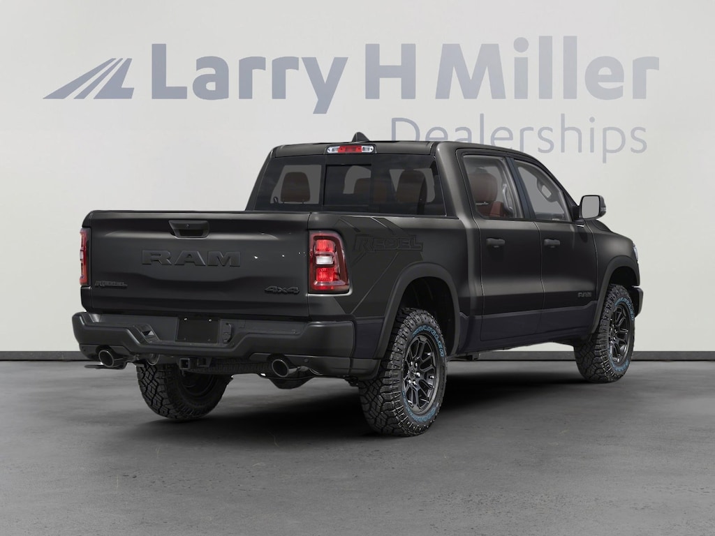 Diamond Black Crystal Pearlcoat 2026 Ram 1500 Rebel 4WD 8-Speed Automatic 3.0L I6 10 Speakers, 115V Auxiliary Rear Power Outlet, 14.4 Touchscreen Display, 2-Door Passive Entry, Front Door Locks, 3.92 Rear Axle Ratio, 33 Gallon Fuel Tank, 4 Way Front Headrests, 4-Corner Air Suspension, 4-Wheel Disc Brakes, 4G LTE Wi-Fi Hot Spot, ABS brakes, Accent Color Door Handles, Accent Color Premium Power Mirrors, Accent Color Tailgate Handle, Air Conditioning, Alloy wheels, AM/FM radio: SiriusXM with 360L, Apple CarPlay, Apple CarPlay/Android Auto, Auto High-beam Headlights, Auto Power-Folding Mirrors, Auto-Dimming Exterior Driver Mirror, Auto-dimming Rear-View mirror, Automatic temperature control, Black Exterior Mirrors, Black Painted Exterior Mirrors Caps, Brake assist, Bucket Seats, Cloth/Vinyl Bucket Seats, Compass, Connected Travel & Traffic Services, Connectivity - US/Canada, Convex Wide-Angle Exterior Mirror Insert, Delay-off headlights, Disassociated Touchscreen Display, Driver door bin, Driver Seat Memory, Driver vanity mirror, Dual front impact airbags, Dual front side impact airbags, Dual Wireless Charging Pad, Electronic Stability Control, Exterior Mirrors Approach Lamps, Exterior Mirrors Courtesy Lamps, Exterior Mirrors w/Heating Element, Exterior Mirrors w/Memory, Exterior Mirrors w/Supplemental Signals, Front anti-roll bar, Front Bucket Seats, Front Center Armrest w/Storage, Front dual zone A/C, Front fog lights, Front Passenger Interactive Display, Front reading lights, Front Seat Back Map Pockets, Front wheel independent suspension, Full Length Upgraded Floor Console, Fully automatic headlights, Garage door transmitter, Global Telematics Box Module (TBM), Google Android Auto, GPS Antenna Input, GPS Navigation, harman/kardon 19 Speaker Premium Sound, HD Radio, Heated door mirrors, Heated Front Seats, Heated front seats, Heated Second Row Seats, Heated Steering Wheel, Heated steering wheel, Illuminated entry, Integrated Center Stack Radio, Integrated Voice Command w/Bluetooth, Leather steering wheel, Low tire pressure warning, Manual Folding Exterior Mirrors, Manufacturer's Statement of Origin, Media Hub w/2 Charge Only USBs, Navigation System, Occupant sensing airbag, Off-Road Information Pages, Outside temperature display, Overhead airbag, Overhead console, Panic alarm, ParkView Rear Back-Up Camera, Passenger door bin, Passenger vanity mirror, Power 2-Way Driver Lumbar Adjust, Power 2-Way Passenger Lumbar Adjust, Power Adjust 8-Way Driver Seat, Power Adjust 8-Way Front Passenger Seat, Power Adjustable Pedals w/Memory, Power door mirrors, Power driver seat, Power steering, Power Tailgate, Power windows, Proximity Approach/Departure Lamps, Quick Order Package 21W Rebel, Radio data system, Radio: Uconnect 5 Nav w/12.0 Display, Radio: Uconnect 5 Nav w/14.4 Display, Radio/Driver Seat/Mirrors/Pedals Memory, Rain Sensitive Windshield Wipers, Rear 60/40 Folding Seat, Rear anti-roll bar, Rear seat center armrest, Rear step bumper, Rear Window Defroster, Rebel Level 2 Equipment Group, Remote keyless entry, Security Alarm, SiriusXM Radio Service, SiriusXM w/360L, Smartphone As A Key Capable, Speed control, Split folding rear seat, Steering wheel mounted audio controls, Tachometer, Telescoping steering wheel, Tilt steering wheel, Traction control, Trailer Brake Control, Trip computer, USB Host Flip, Variably intermittent wipers, Voltmeter, Wheels: 18 x 8.0 Painted Mid-Gloss Black.