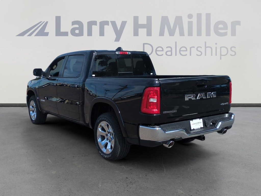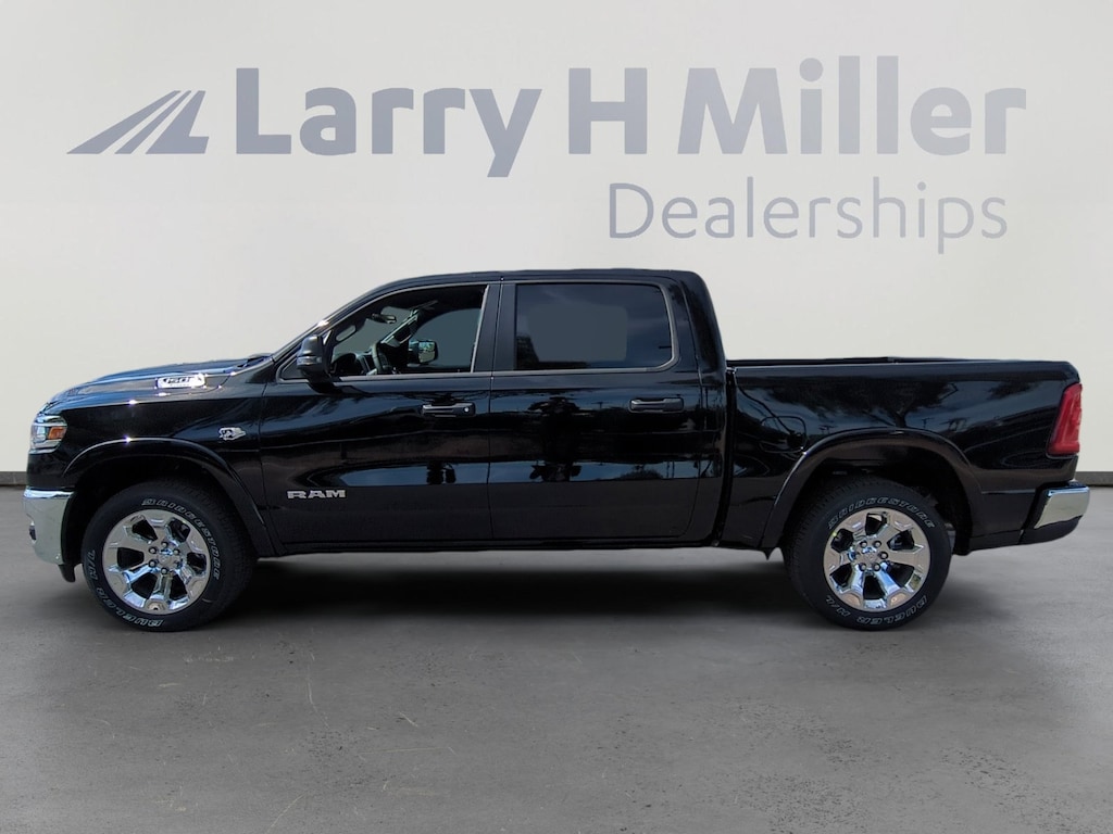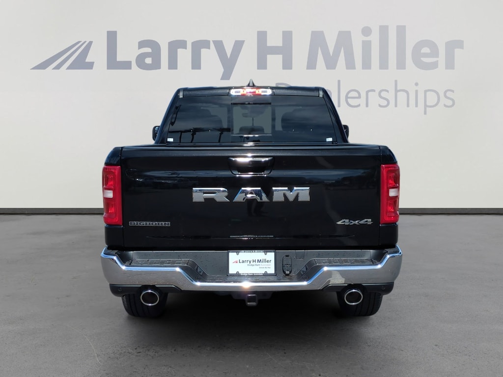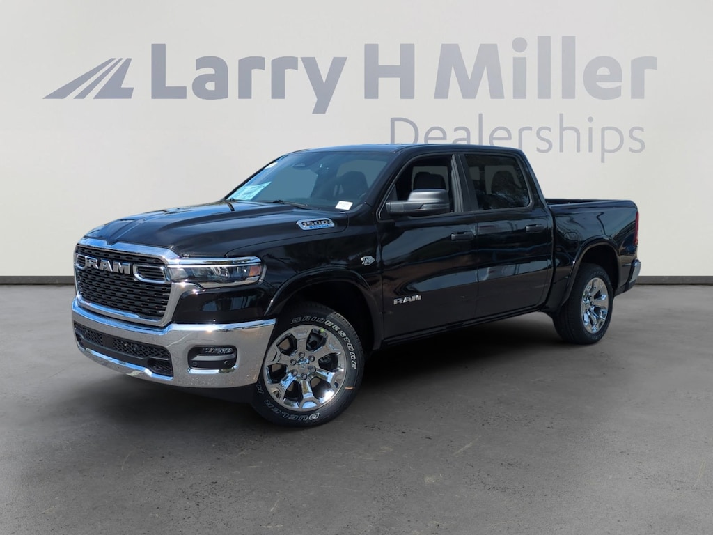 Diamond Black Crystal Pearlcoat 2026 Ram 1500 Big Horn/Lone Star 4WD 8-Speed Automatic HEMI 5.7L V8 Multi Displacement VVT eTorque 115V Auxiliary Power Outlet, 115V Auxiliary Rear Power Outlet, 12 Touchscreen Display, 2nd Row in Floor Storage Bins, 3 Rear Seat Head Restraints, 4 Way Front Headrests, 4-Wheel Disc Brakes, 400W Inverter, 48V Belt Starter Generator, 4G LTE Wi-Fi Hot Spot, 6 Speakers, 9 Amplified Speakers with Subwoofer, ABS brakes, Accent Color Tailgate Handle, Air Conditioning, Air Conditioning ATC with Dual Zone Control, Alloy wheels, AM/FM radio, Apple CarPlay, Apple CarPlay/Android Auto, Auto High-beam Headlights, Auto Power-Folding Mirrors, Auto-Dimming Exterior Driver Mirror, Auto-Dimming Rear-View Mirror, Big Horn Level 2 Equipment Group, Black Exterior Mirrors, Black Premium Power Mirrors, Body Color Fender Flares, Brake assist, Bucket Seats, Bumpers: chrome, Center Console Parts Module, Cloth Bucket Seats, Cluster 12 TFT Color Display, Cluster 7.0 TFT Color Display, Compass, Configurable Drive Mode, Connected Travel and Traffic Services, Connectivity - US/Canada, Convex Wide-Angle Exterior Mirror Insert, Delay-off headlights, Deluxe Cloth Bucket Seats, Disassociated Touchscreen Display, Driver door bin, Dual front impact airbags, Dual front side impact airbags, E-Locker Rear Axle, Electronic Stability Control, Exterior Mirrors Courtesy Lamps, Exterior Mirrors with Heating Element, Exterior Mirrors with Supplemental Signals, Front anti-roll bar, Front Bucket Seats, Front Center Armrest w/Storage, Front fog lights, Front reading lights, Front Seat Back Map Pockets, Front wheel independent suspension, Full Length Floor Console, Fully automatic headlights, Global Telematics Box Module, Glove Box Lamp, Google Android Auto, GPS Antenna Input, GPS Navigation, HD Radio, Heated door mirrors, Heated Front Seats, Heated Steering Wheel, Illuminated entry, Integrated Center Stack Radio, Integrated Voice Command with Bluetooth, Leather Wrapped Steering Wheel, LED Dome Lamp with on/Off Switch, LED Footwell Lighting, Low tire pressure warning, Manual Adjust 4-Way Driver Seat, Manual Adjust 4-Way Front Passenger Seat, Manual Folding Exterior Mirrors, Manufacturer's Statement of Origin, Media Hub with 2 Charge Only USBs, MOPAR Front and Rear Rubber Floor Mats, Occupant sensing airbag, Outside temperature display, Overhead airbag, Overhead console, Overhead LED Lamps, Panic alarm, ParkView Rear Back-Up Camera, Passenger door bin, Passenger vanity mirror, Power 2-Way Driver Lumbar Adjust, Power Adjust 8-Way Driver Seat, Power Adjustable Pedals, Power door mirrors, Power steering, Power windows, Premium Overhead Console, Quick Order Package 27Z Big Horn, Radio data system, Radio: Uconnect 5 Navigation with 12.0 Display, Radio: Uconnect 5 W with 8.4 Display, RAM Grille Badge - Chrome, Rear 60/40 Folding Seat, Rear anti-roll bar, Rear Center Armrest, Rear Power Sliding Window, Rear step bumper, Rear Window Defroster, Remote keyless entry, Remote Tailgate Release, Security Alarm, SiriusXM Radio Service, SiriusXM with 360L, Speed control, Steering Wheel Mounted Audio Controls, Sun Visors with Illuminated Vanity Mirrors, Supplier Part Tracking (J-1), Tachometer, Telescoping steering wheel, Tilt steering wheel, Traction control, Trailer Brake Control, Trailer Reverse Steering Control, Trailer Tire Pressure Monitoring System, Trailer Tow Group II, Trip computer, Universal Garage Door Opener, USB Host Flip, Variably intermittent wipers, Voltmeter.