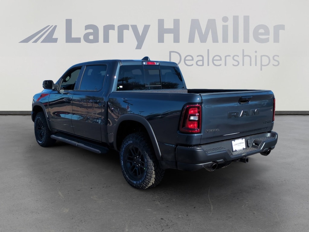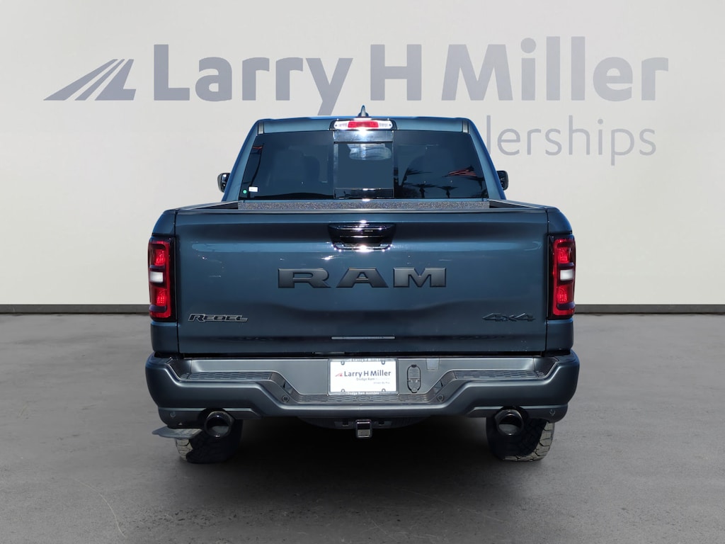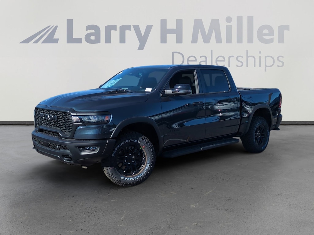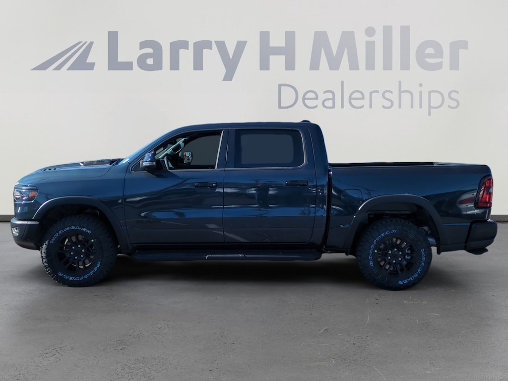 Forged Blue Metallic 2026 Ram 1500 Rebel 4WD 8-Speed Automatic 3.0L I6 10 Speakers, 115V Auxiliary Rear Power Outlet, 14.4 Touchscreen Display, 2-Door Passive Entry, Front Door Locks, 3.92 Rear Axle Ratio, 33 Gallon Fuel Tank, 4 Way Front Headrests, 4-Corner Air Suspension, 4-Wheel Disc Brakes, 4G LTE Wi-Fi Hot Spot, ABS brakes, Accent Color Door Handles, Accent Color Premium Power Mirrors, Accent Color Tailgate Handle, Active Noise Control System, Air Conditioning, Alloy wheels, AM/FM radio: SiriusXM with 360L, Apple CarPlay, Apple CarPlay/Android Auto, Auto High-beam Headlights, Auto Power-Folding Mirrors, Auto-Dimming Exterior Driver Mirror, Auto-dimming Rear-View mirror, Automatic temperature control, Bed Utility Group, Black Exterior Mirrors, Black Painted Exterior Mirrors Caps, Brake assist, Bucket Seats, Cloth/Vinyl Bucket Seats, Compass, Connected Travel and Traffic Services, Connectivity - US/Canada, Convex Wide-Angle Exterior Mirror Insert, Delay-off headlights, Disassociated Touchscreen Display, Driver door bin, Driver Seat Memory, Driver vanity mirror, Dual front impact airbags, Dual front side impact airbags, Dual Wireless Charging Pad, Electronic Stability Control, Exterior 115V AC Outlet, Exterior Mirrors Approach Lamps, Exterior Mirrors Courtesy Lamps, Exterior Mirrors with Heating Element, Exterior Mirrors with Memory, Exterior Mirrors with Supplemental Signals, Front anti-roll bar, Front Bucket Seats, Front Center Armrest w/Storage, Front dual zone A/C, Front fog lights, Front Passenger Interactive Display, Front reading lights, Front Seat Back Map Pockets, Front wheel independent suspension, Full Length Upgraded Floor Console, Fully automatic headlights, Garage door transmitter, Global Telematics Box Module, Google Android Auto, GPS Antenna Input, GPS Navigation, Harman/Kardon 19 Speaker Premium Sound, HD Radio, Heated door mirrors, Heated Front Seats, Heated front seats, Heated Second Row Seats, Heated Steering Wheel, Heated steering wheel, Illuminated entry, Integrated Center Stack Radio, Integrated Voice Command with Bluetooth, Leather steering wheel, Low tire pressure warning, Manual Folding Exterior Mirrors, Manufacturer's Statement of Origin, Media Hub with 2 Charge Only USBs, MOPAR 4 Adjustable Cargo Tie-Down Hooks, Mopar Black Tubular Side Steps, MOPAR Spray in Bedliner, Navigation System, Occupant sensing airbag, Off-Road Information Pages, Outside temperature display, Overhead airbag, Overhead console, Panic alarm, ParkView Rear Back-Up Camera, Passenger door bin, Passenger vanity mirror, Power 2-Way Driver Lumbar Adjust, Power 2-Way Passenger Lumbar Adjust, Power Adjust 8-Way Driver Seat, Power Adjust 8-Way Front Passenger Seat, Power Adjustable Pedals with Memory, Power door mirrors, Power driver seat, Power steering, Power Tailgate, Power windows, Proximity Approach/Departure Lamps, Quick Order Package 21W Rebel, Radio data system, Radio: Uconnect 5 Nav with 14.4 Display, Radio: Uconnect 5 Navigation with 12.0 Display, Radio/Driver Seat/Mirrors/Pedals Memory, Rain Sensitive Windshield Wipers, Rear 60/40 Folding Seat, Rear anti-roll bar, Rear seat center armrest, Rear step bumper, Rear Window Defroster, Rebel Level 2 Equipment Group, Remote keyless entry, Security Alarm, SiriusXM Radio Service, SiriusXM with 360L, Smartphone as a Key Capable, Speed control, Split folding rear seat, Steering wheel mounted audio controls, Tachometer, Telescoping steering wheel, Tilt steering wheel, Traction control, Trailer Brake Control, Trip computer, USB Host Flip, Variably intermittent wipers, Voltmeter, Wheels: 18 x 8.0 Painted Mid-Gloss Black.