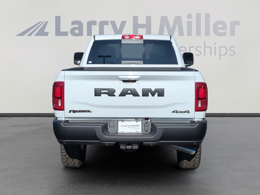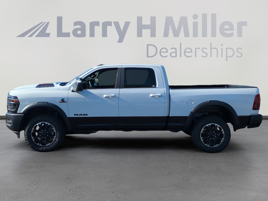 Bright White Clearcoat 2026 Ram 2500 Rebel 4WD 8-Speed Automatic 6.7L I6 2 Way Rear Headrest Seat, 4 Way Front Headrests, 4-Wheel Disc Brakes, 4G LTE Wi-Fi Hot Spot, 6 Speakers, 9 Alpine Speakers with Subwoofer, ABS brakes, Adjustable pedals, Air Conditioning, Alexa Built-in, Alloy wheels, AM/FM radio: SiriusXM with 360L, Apple CarPlay, Apple CarPlay/Android Auto, Auto Adjust in Reverse Exterior Mirrors, Auto Dim Exterior Mirror, Auto High Beam Headlamp Control, Auto Power-Folding Mirrors, Auto-Dimming Exterior Passenger Mirror, Auto-dimming Rear-View mirror, Automatic temperature control, Black Exterior Mirrors, Black Wheel Center Hub, Block heater, Body Color Door Handles, Brake assist, Cloth Heated Power Bench Seat, Compass, Connected Travel and Traffic Services, Connectivity - US/Canada, Delay-off headlights, Disassociated Touchscreen Display, Driver door bin, Dual front impact airbags, Dual front side impact airbags, Electronic Stability Control, Emergency Vehicle Alert System (EVAS), Exterior Mirrors Courtesy Lamps, Exterior Mirrors with Heating Element, Exterior Mirrors with Memory, Exterior Mirrors with Supplemental Signals, Folding Flat Load Floor Storage, For Details, Visit DriveUconnect.com, For More Info, Call 800-643-2112, Forward and Reverse Utility Lights, Front anti-roll bar, Front Center Armrest w/Storage, Front Door Locks 2-Door Passive Entry, Front dual zone A/C, Front fog lights, Front reading lights, Fully automatic headlights, Global Telematics Box Module, Google Android Auto, GPS Antenna Input, GPS Navigation, HD Radio, Heated door mirrors, Heated Front Seats, Heated front seats, Heated Steering Wheel, Heated steering wheel, High Back Seats, Illuminated entry, Integrated Voice Command with Bluetooth, Leather steering wheel, LED Dome Lamp with on/Off Switch, LED Interior Lighting, Low tire pressure warning, Manufacturer's Statement of Origin, Mirror Running Lights, MOPAR Front and Rear Rubber Floor Mats, Navigation System, Occupant sensing airbag, Off-Road Info Pages, Outside temperature display, Overhead airbag, Overhead console, Overhead LED Lamps, Panic alarm, ParkView Rear Back-Up Camera, Passenger door bin, Passenger vanity mirror, Power 2-Way Driver Lumbar Adjust, Power Adjust 8-Way Driver Seat, Power Adjust Mirrors, Power Adjustable Pedals with Memory, Power door mirrors, Power driver seat, Power Heated Fold Telescopic Mirrors with Memory, Power steering, Power Telescoping Mirrors, Power windows, Power-Adjustable Convex Aux Mirrors, Premium Overhead Console, Quick Order Package 24R Rebel, Radio data system, Radio: Uconnect 5 Navigation with 12.0 Display, Rain Sensitive Windshield Wipers, Rear 60/40 Folding Seat, Rear anti-roll bar, Rear seat center armrest, Rear step bumper, Rear window defroster, Rebel Level 1 Equipment Group, Remote keyless entry, Security system, Selectable Tire Fill Alert, SiriusXM Radio Service, SiriusXM with 360L, Speed control, Split folding rear seat, Sport Performance Hood, Steering wheel mounted audio controls, Sun Visors with Illuminated Vanity Mirrors, Tachometer, Tilt steering wheel, Traction control, Trailer Tow Pages, Trip computer, Turn signal indicator mirrors, Universal Garage Door Opener, Variably intermittent wipers, Vendor Painted Cargo Box, Vendor Painted Cargo Box Tracking, Ventilated front seats, Voltmeter, Wheels: 20 x 8.0 Black Diamond Cut Aluminum.