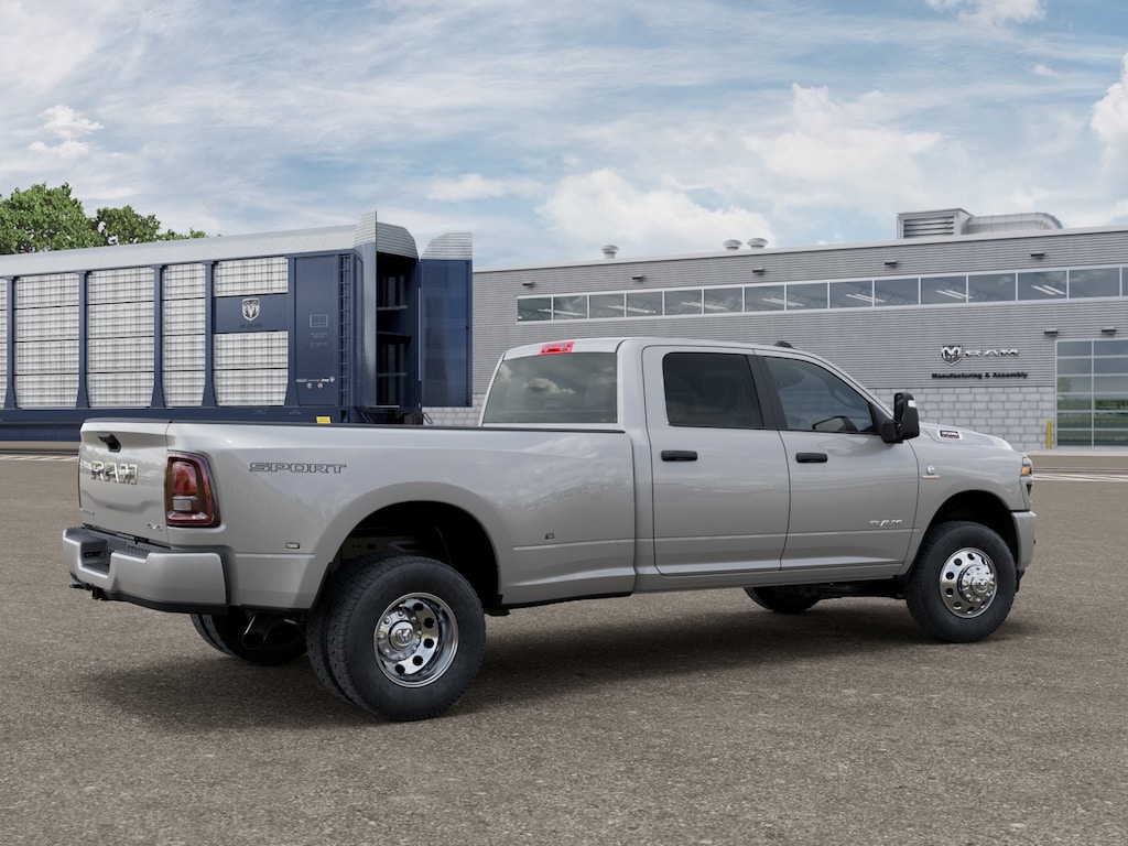 Silver Zynith 2026 Ram 3500 Big Horn 4WD 8-Speed Automatic 6.7L I6 12 Touchscreen Display, 2 Way Rear Headrest Seat, 2nd Row in Floor Storage Bins, 4 Way Front Headrests, 4-Wheel Disc Brakes, 40/20/40 Split Bench Seat, 4G LTE Wi-Fi Hot Spot, 50 Gallon Fuel Tank, 5th Wheel/Gooseneck Towing Prep Group, 6 Speakers, 6000# Front Axle with Hub Extension, 9 Alpine Speakers with Subwoofer, ABS brakes, Air Conditioning, Air Conditioning ATC with Dual Zone Control, Alexa Built-in, Alloy wheels, AM/FM radio: SiriusXM, Apple CarPlay, Apple CarPlay/Android Auto, Auto Power-Folding Mirrors, Auto-Dimming Rear-View Mirror, Big Horn Level 1 Plus Equipment Group, Black Exterior Mirrors, Black Interior Accents, Body Color Grille Surround, Box and Rear Fender Clearance Lamps, Brake assist, Bumpers: chrome, Center Hub, Clearance Lamps, Cloth 40/20/40 Bench Seat, Cloth 40/20/40 Premium Bench Seat, Compass, Connected Travel and Traffic Services, Connectivity - US/Canada, Dash Pass Thru Wire Circuits, Delay-off headlights, Disassociated Touchscreen Display, Driver door bin, Dual Alternators Rated At 480 Amps, Dual front impact airbags, Dual front side impact airbags, Dual Glove Boxes, Dual Rear Wheels, Electronic Stability Control, Emergency Vehicle Alert System (EVAS), Exterior Mirrors Courtesy Lamps, Exterior Mirrors with Heating Element, Exterior Mirrors with Supplemental Signals, Foam Bottle Insert (door Trim Panel), Folding Flat Load Floor Storage, Footwell Courtesy Lamp, For Details Visit DriveUconnect.com, For More Info, Call 800-643-2112, Forward and Reverse Utility Lights, Front anti-roll bar, Front Armrest with Cupholders, Front Center Armrest w/Storage, Front Center Seat Cushion Storage, Front fog lights, Front reading lights, Front Seat Back Map Pockets, Fully automatic headlights, Global Telematics Box Module, Glove Box Lamp, Google Android Auto, GPS Antenna Input, GPS Navigation, HD Radio, Heated door mirrors, Illuminated entry, Instrument Panel Mounted Auxiliary Switches, Integrated Voice Command with Bluetooth, LED Bed Lighting, Locking Lower Glove Box, Low tire pressure warning, Luxury Steering Wheel, Manual Adjust 4-Way Driver Seat, Manual Adjust 4-Way Front Passenger Seat, Manufacturer's Statement of Origin, Max Tow Package, Mirror Running Lights, MOPAR Deployable Bed Step, MOPAR Front and Rear Rubber Floor Mats, MOPAR Spray in Bedliner, Nexen Brand Tires, Occupant sensing airbag, Off-Road Information Pages, Outside temperature display, Overhead airbag, Overhead console, Painted Front Bumper, Painted Rear Bumper, Panic alarm, ParkView Rear Back-Up Camera, Passenger door bin, Passenger vanity mirror, Power 2-Way Driver Lumbar Adjust, Power Adjust 8-Way Driver Seat, Power Adjust Mirrors, Power door mirrors, Power Heated Fold Telescopic Mirrors, Power steering, Power Telescoping Mirrors, Power windows, Power-Adjustable Convex Aux Mirrors, Quick Order Package 24Z Big Horn, Radio data system, Radio: Uconnect 5 Navigation with 12.0 Display, Radio: Uconnect 5 with 8.4 Display, Rear 60/40 Folding Seat, Rear Dome with on/Off Switch Lamp, Rear Folding Seat, Rear seat center armrest, Rear step bumper, Rear Wheelhouse Liners, Rear window defroster, Remote keyless entry, Remote Start System, Remote USB Port - Charge Only, Selectable Tire Fill Alert, SiriusXM Radio Service, SiriusXM with 360L, Speed control, Sport Appearance Package, Sport Decal, Steering Wheel Mounted Audio Controls, Storage Tray, Tachometer, Tilt steering wheel, Traction control, Trailer Tow Pages, Trip computer, Turn signal indicator mirrors, Variably intermittent wipers, Voltmeter, Wheels: 17 x 6.0 Polished Aluminum, Wheels: 18 x 8.0 Polished Aluminum.