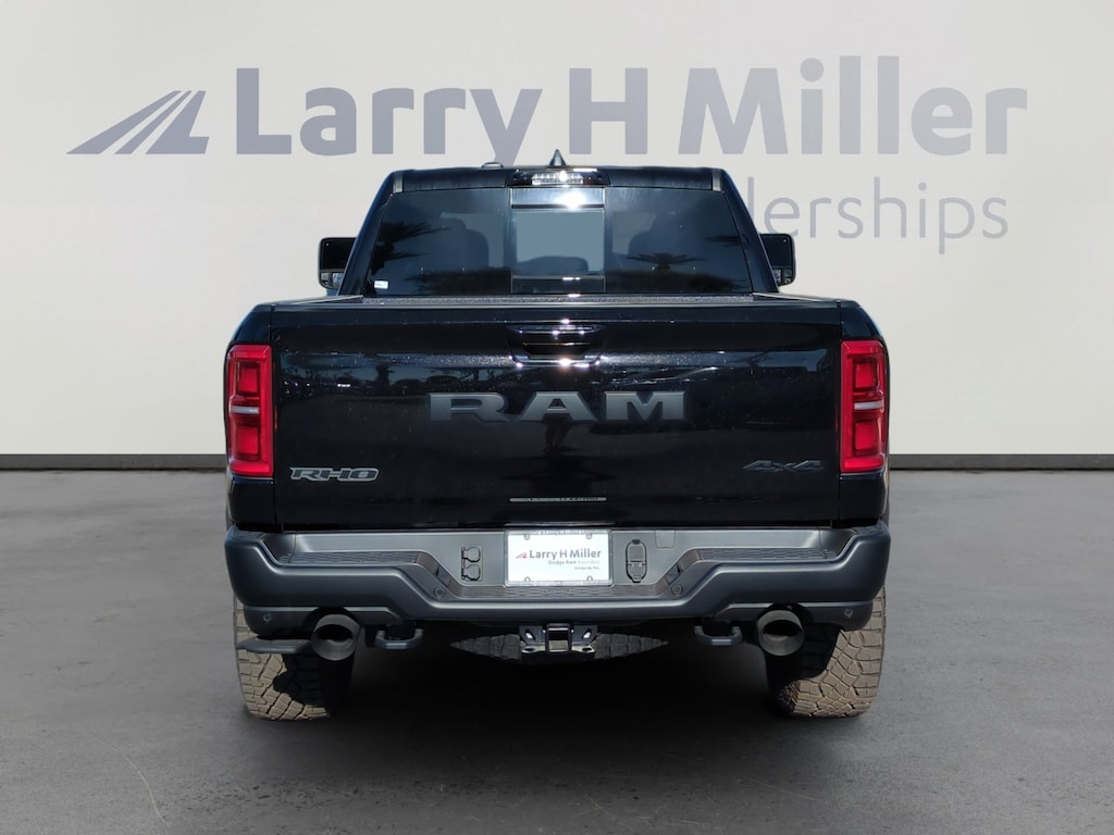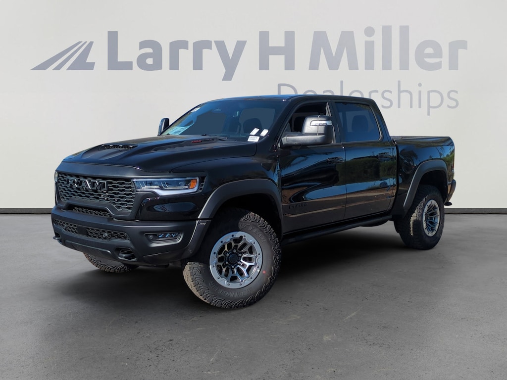 Diamond Black Crystal Pearlcoat 2026 Ram 1500 RHO 4WD 8-Speed Automatic 3.0L I6 10 Speakers, 12-Way/1-Way Trailer Connector, 14.4 Touchscreen Display, 240 Amp Alternator, 3.92 Rear Axle Ratio, 4-Wheel Disc Brakes, 4G LTE Wi-Fi Hot Spot, ABS brakes, Adaptive suspension, Adjustable pedals, Air Conditioning, Alloy wheels, AM/FM radio, Apple CarPlay/Android Auto, Auto High-beam Headlights, Auto Power-Folding Mirrors, Auto-dimming door mirrors, Auto-Dimming Exterior Driver Mirror, Auto-Dimming Exterior Passenger Mirror, Auto-dimming Rear-View mirror, Automatic temperature control, Bed Utility Group, Black Exterior Mirrors, Black Power-Fold Trailer Tow Mirrors, Brake assist, Compass, Connected Travel and Traffic Services, Connectivity - US/Canada, Delay-off headlights, Disassociated Touchscreen Display, Driver door bin, Driver Power Seat Back Massage, Driver Seat Memory, Driver vanity mirror, Driver/Passenger Wrapped Assist Handles, Drowsy Driver Detection, Dual front impact airbags, Dual front side impact airbags, Dual Wireless Charging Pad, Electronic Stability Control, Evasive Steer Assist, Exterior 115V AC Outlet, Exterior Mirrors Courtesy Lamps, Exterior Mirrors with Heating Element, Exterior Mirrors with Memory, Exterior Mirrors with Supplemental Signals, Exterior Parking Camera Rear, Flareside Box, Forward and Reverse Utility Lights, Front anti-roll bar, Front Bucket Seats, Front Center Armrest w/Storage, Front dual zone A/C, Front fog lights, Front License Plate Bracket, Front Passenger Interactive Display, Front Passenger Power Seat Back Massage, Front reading lights, Front wheel independent suspension, Full Length Premium Upgraded Floor Console, Fully automatic headlights, Garage door transmitter, GPS Navigation, Hands-Free Active Driving Assist System, Harman/Kardon 19 Speaker Premium Sound, HD Radio, Heads-Up Display, Heated door mirrors, Heated front seats, Heated Second Row Seats, Heated steering wheel, Illuminated entry, Integrated Center Stack Radio, Integrated Voice Command with Bluetooth, Intersection Collision Assist System, Leather Shift Knob, Leather steering wheel, Leather Trimmed Bucket Seats, Leather/Carbon Flat-Bottom Steering Wheel, LED CHMSL Lamp, Low tire pressure warning, Luxury Front Door Trim Panel, Manufacturer's Statement of Origin, Mirror Clearance/Running Lights, MOPAR 4 Adjustable Cargo Tie-Down Hooks, MOPAR Deployable Bed Step, MOPAR Rock Rails, Navigation System, Occupant sensing airbag, Outside temperature display, Overhead airbag, Overhead console, Panic alarm, Passenger door bin, Passenger vanity mirror, Power Adjustable Pedals with Memory, Power door mirrors, Power driver seat, Power passenger seat, Power steering, Power Tailgate, Power Telescoping Mirrors, Power windows, Power-Adjustable Convex Aux Mirrors, Premium Wrapped Instrument Panel Bezel, Quick Order Package 22Y RHO, Radio data system, Radio: Uconnect 5 Nav with 14.4 Display, Radio: Uconnect 5 Navigation with 12.0 Display, Radio/Driver Seat/Mirrors/Pedals Memory, Rain Sensitive Windshield Wipers, Real Carbon Fiber Interior Accents, Rear 60/40 Folding Split Recline Seat, Rear reading lights, Rear seat center armrest, Rear step bumper, Rear window defroster, Remote keyless entry, RHO Level 1 Equipment Group, Security system, SiriusXM Radio Service, Smartphone as a Key Capable, Speed control, Split folding rear seat, Sport steering wheel, Steering wheel mounted audio controls, Surround View Camera System, Tachometer, Telescoping steering wheel, Tilt steering wheel, Traction control, Traffic Sign Recognition, Trailer Reverse Steering Control, Trailer Tire Pressure Monitoring System, Trailer Tow Group, Trailer Tow Mirrors, Trip computer, Turn signal indicator mirrors, USB Host Flip, Variably intermittent wipers, Ventilated Front Seats, Ventilated Rear Seats, Voltmeter, Wheels: 18 x 9 Bead-Lock Aluminum, Wheels: 18 x 9 Black Paint/Polish Aluminum.