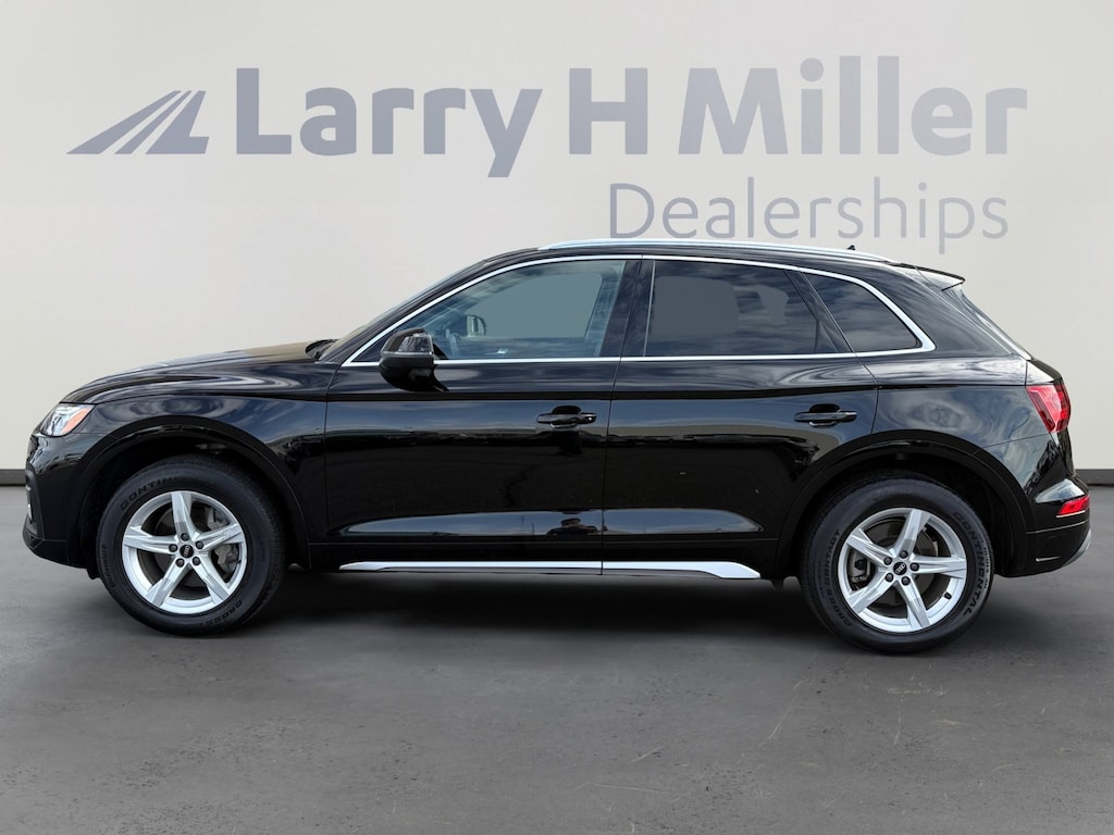 This 2021 Brilliant Black Audi Q5 45 Premium AWD is well equipped and includes these features and benefits: Black Leather, 10 Speakers, 4-Wheel Disc Brakes, 5.302 Axle Ratio, ABS brakes, Air Conditioning, Alloy wheels, AM/FM radio, Auto High-beam Headlights, Auto-dimming Rear-View mirror, Automatic temperature control, Brake assist, Bumpers: body-color, Compass, Delay-off headlights, Driver door bin, Driver vanity mirror, Dual front impact airbags, Dual front side impact airbags, Electronic Stability Control, Emergency communication system: Audi connect CARE, Exterior Parking Camera Rear, Four wheel independent suspension, Front anti-roll bar, Front Bucket Seats, Front Center Armrest, Front dual zone A/C, Front fog lights, Front reading lights, Garage door transmitter: HomeLink, Genuine wood console insert, Genuine wood dashboard insert, Genuine wood door panel insert, Heated 8-Way Power Front Bucket Seats, Heated door mirrors, Heated front seats, Illuminated entry, Leather Seating Surfaces, Leather Shift Knob, Low tire pressure warning, Occupant sensing airbag, Outside temperature display, Overhead airbag, Overhead console, Panic alarm, Passenger door bin, Passenger vanity mirror, Power door mirrors, Power driver seat, Power Liftgate, Power passenger seat, Power steering, Power windows, Radio data system, Radio: Audi Sound System, Rain sensing wipers, Rear air conditioning, Rear anti-roll bar, Rear fog lights, Rear reading lights, Rear seat center armrest, Rear window defroster, Rear window wiper, Remote keyless entry, Roof rack, Security system, Speed control, Speed-sensing steering, Speed-Sensitive Wipers, Split folding rear seat, Spoiler, Steering wheel mounted audio controls, Tachometer, Telescoping steering wheel, Tilt steering wheel, Traction control, Trip computer, Turn signal indicator mirrors, Variably intermittent wipers, and Wheels: 18 5-Arm-Star Design. Black Leather, 10 Speakers, 4-Wheel Disc Brakes, 5.302 Axle Ratio, ABS brakes, Air Conditioning, Alloy wheels, AM/FM radio, Auto High-beam Headlights, Auto-dimming Rear-View mirror, Automatic temperature control, Brake assist, Bumpers: body-color, Compass, Delay-off headlights, Driver door bin, Driver vanity mirror, Dual front impact airbags, Dual front side impact airbags, Electronic Stability Control, Emergency communication system: Audi connect CARE, Exterior Parking Camera Rear, Four wheel independent suspension, Front anti-roll bar, Front Bucket Seats, Front Center Armrest, Front dual zone A/C, Front fog lights, Front reading lights, Garage door transmitter: HomeLink, Genuine wood console insert, Genuine wood dashboard insert, Genuine wood door panel insert, Heated 8-Way Power Front Bucket Seats, Heated door mirrors, Heated front seats, Illuminated entry, Leather Seating Surfaces, Leather Shift Knob, Low tire pressure warning, Occupant sensing airbag, Outside temperature display, Overhead airbag, Overhead console, Panic alarm, Passenger door bin, Passenger vanity mirror, Power door mirrors, Power driver seat, Power Liftgate, Power passenger seat, Power steering, Power windows, Radio data system, Radio: Audi Sound System, Rain sensing wipers, Rear air conditioning, Rear anti-roll bar, Rear fog lights, Rear reading lights, Rear seat center armrest, Rear window defroster, Rear window wiper, Remote keyless entry, Roof rack, Security system, Speed control, Speed-sensing steering, Speed-Sensitive Wipers, Split folding rear seat, Spoiler, Steering wheel mounted audio controls, Tachometer, Telescoping steering wheel, Tilt steering wheel, Traction control, Trip computer, Turn signal indicator mirrors, Variably intermittent wipers, Wheels: 18 5-Arm-Star Design, Black Leather.