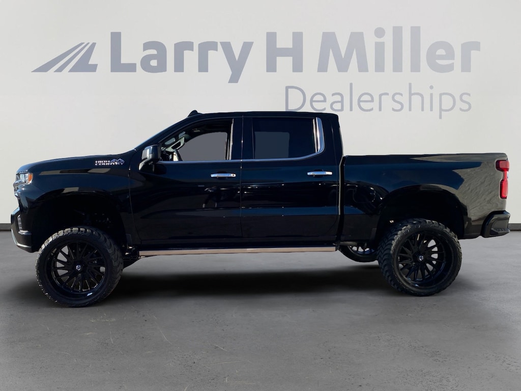 This 2019 Black Chevrolet Silverado 1500 High Country 4WD is well equipped and includes these features and benefits: High Country Deluxe (All-Weather Floor Liner (LPO) and Power Sunroof), Preferred Equipment Group 3LZ (10-Way Power Driver Seat w/Lumbar, 10-Way Power Passenger Seat Adjuster w/Lumbar, 12-Volt Rear Auxiliary Power Outlet, 120-Volt Bed Mounted Power Outlet, 120-Volt Instrument Panel Power Outlet, 170 Amp Alternator, 2nd Row Heated Outboard Seats, 8 Driver Information Center, Advanced Trailering System, Auto-Dimming Inside Rear-View Mirror, Auxiliary External Transmission Oil Cooler, Bluetooth® For Phone, Chevrolet Connected Access, Chevrolet w/4G LTE, Chevytec Spray-On Black Bedliner, Chrome Assist Steps, Chrome Grille, Chrome Recovery Hooks, Color-Keyed Carpeting Floor Covering, Compass, Deep-Tinted Glass, Driver Memory, Dual Exhaust w/Polished Outlets, Electric Rear-Window Defogger, Electrical Lock Control Steering Column, Electronic Cruise Control, Floor Mounted Console, Front Carpeted Floor Mats, Front LED Fog Lamps, HD Radio, HD Rear Vision Camera, Heated Driver & Front Passenger Seats, Heated Steering Wheel, Heavy-Duty Rear Locking Differential, Hitch Guidance, Hitch Guidance w/Hitch View, Integrated Trailer Brake Controller, Keyless Open & Start, Lane Change Alert w/Side Blind Zone Alert, Leather Wrapped Steering Wheel, LED Cargo Area Lighting, Manual Tilt/Telescoping Steering Column, OnStar & Chevrolet Connected Services Capable, Outside Heated Power-Adjustable Mirrors, Painted Mirror Caps, Power Door Locks, Power Front Passenger Windows w/Express Up/Down, Power Front Windows w/Driver Express Up/Down, Power Rear Windows w/Express Down, Power Sliding Rear Window w/Rear Defogger, Rear Carpeted Floor Mats, Rear Cross Traffic Alert, Rear Dual USB Charging-Only Ports, Rear Wheelhouse Liners, Remote Vehicle Starter System, SiriusXM Radio, Steering Wheel Audio Controls, Theft Deterrent System (Unauthorized Entry), Trailer Tire Pressure Monitor System, Ultrasonic Front & Rear Park Assist, Universal Home Remote, Ventilated Driver & Front Passenger Seats, and Wireless Charging), Safety Package II (Following Distance Indicator, Forward Collision Alert, Front Pedestrian Braking, IntelliBeam Automatic High Beam On/Off, Lane Keep Assist w/Lane Departure Warning, Low Speed Forward Automatic Braking, and Safety Alert Seat), Technology Package (15 Diagonal Head-Up Display, HD Surround Vision, and Rear Camera Mirror), Trailering Package, Up-Level Rear Seat w/Storage Package, 10-Speed Automatic, 4WD, Jet Black Leather, 3.23 Rear Axle Ratio, 4-Wheel Disc Brakes, 7 Speakers, ABS brakes, Air Conditioning, Alloy wheels, AM/FM radio: SiriusXM, Apple CarPlay/Android Auto, Auto-dimming door mirrors, Auto-dimming Rear-View mirror, Automatic temperature control, Brake assist, Bumpers: body-color, Delay-off headlights, Driver door bin, Driver vanity mirror, Dual front impact airbags, Dual front side impact airbags, Electronic Stability Control, Front anti-roll bar, Front Bucket Seats, Front Center Armrest w/Storage, Front dual zone A/C, Front fog lights, Front reading lights, Front wheel independent suspension, Fully automatic headlights, Garage door transmitter, Heated door mirrors, Heated front seats, Heated rear seats, Heated steering wheel, Heavy Duty Suspension, Illuminated entry, Low tire pressure warning, Memory seat, Navigation System, Occupant sensing airbag, Outside temperature display, Overhead airbag, Overhead console, Panic alarm, Passenger door bin, Passenger vanity mirror, Perforated Leather Appointed Seat Trim, Power door mirrors, Power driver seat, Power passenger seat, Power steering, Power windows, Power-Retractable Assist Steps, Premium audio system: Chevrolet Infotainment System 3, Radio data system, Radio: Chevrolet Infotainment 3 Premium System, Rear reading lights, Rear seat center armrest, Rear step bumper, Rear window defroster, Remote keyless entry, Security system, Speed control, Speed-sensing steering,