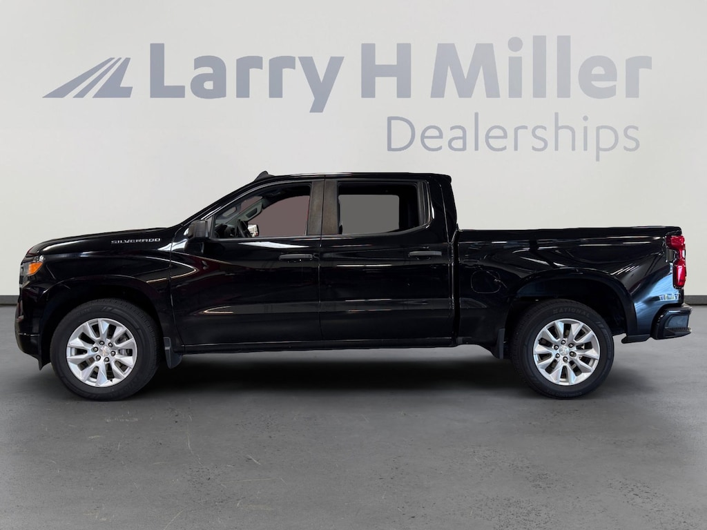 This 2022 Black Chevrolet Silverado 1500 Custom RWD is well equipped and includes these features and benefits: Custom Convenience Package (Electric Rear-Window Defogger, EZ Lift Power Lock & Release Tailgate, LED Cargo Area Lighting, and Remote Vehicle Starter System), Custom Value Package, High Capacity Suspension Package, Preferred Equipment Group 1CX (10-Way Power Driver Seat w/Lumbar, 120-Volt Bed Mounted Power Outlet, 120-Volt Instrument Panel Power Outlet, 3.5 Monochromatic Display Driver Info Center, Bluetooth® For Phone, Chevrolet Connected Access Capable, Color-Keyed Carpeting Floor Covering, Compass, Deep-Tinted Glass, Dual Rear USB Ports (Charge Only), Electrical Steering Column Lock, Electronic Cruise Control, Front Frame-Mounted Black Recovery Hooks, Front Rubberized Vinyl Floor Mats, HD Rear Vision Camera, Manual Tilt Wheel Steering Column, OnStar & Chevrolet Connected Services Capable, Power Front Windows w/Driver Express Up/Down, Power Front Windows w/Passenger Express Down, Power Rear Windows w/Express Down, Rear 60/40 Folding Bench Seat (Folds Up), Rear Rubberized-Vinyl Floor Mats, Remote Keyless Entry, SiriusXM Radio, Standard Tailgate, Theft Deterrent System (Unauthorized Entry), Wi-Fi Hot Spot Capable, and Wireless Phone Projection), Trailering Package (Hitch Guidance), 8-Speed Automatic, Black Cloth, 3.42 Rear Axle Ratio, 4-Wheel Disc Brakes, 40/20/40 Front Split-Bench Seat, 6 Speakers, 6-Speaker Audio System, ABS brakes, Air Conditioning, Alloy wheels, AM/FM radio: SiriusXM, Apple CarPlay/Android Auto, Auto High-beam Headlights, Automatic Emergency Braking, Brake assist, Bumpers: body-color, Cloth Seat Trim, Delay-off headlights, Driver door bin, Driver vanity mirror, Dual front impact airbags, Dual front side impact airbags, Electronic Stability Control, Following Distance Indicator, Forward Collision Alert, Front anti-roll bar, Front Center Armrest w/Storage, Front Pedestrian Braking, Front reading lights, Front wheel independent suspension, Fully automatic headlights, Heated door mirrors, Illuminated entry, IntelliBeam Automatic High Beam On/Off, Lane Keep Assist w/Lane Departure Warning, Low tire pressure warning, Occupant sensing airbag, Outside temperature display, Overhead airbag, Overhead console, Panic alarm, Passenger door bin, Passenger vanity mirror, Power door mirrors, Power driver seat, Power steering, Power windows, Premium audio system: Chevrolet Infotainment 3, Radio data system, Radio: Chevrolet Infotainment 3 System, Rear reading lights, Rear step bumper, Rear window defroster, Remote keyless entry, Security system, Speed control, Speed-sensing steering, Split folding rear seat, Tachometer, Tilt steering wheel, Traction control, Trip computer, Variably intermittent wipers, Voltmeter, and Wheels: 20 x 9 Bright Silver Painted Aluminum. 8-Speed Automatic, Black Cloth, 10-Way Power Driver Seat w/Lumbar, 120-Volt Bed Mounted Power Outlet, 120-Volt Instrument Panel Power Outlet, 3.42 Rear Axle Ratio, 3.5 Monochromatic Display Driver Info Center, 4-Wheel Disc Brakes, 40/20/40 Front Split-Bench Seat, 6 Speakers, 6-Speaker Audio System, ABS brakes, Air Conditioning, Alloy wheels, AM/FM radio: SiriusXM, Apple CarPlay/Android Auto, Auto High-beam Headlights, Automatic Emergency Braking, Bluetooth® For Phone, Brake assist, Bumpers: body-color, Chevrolet Connected Access Capable, Cloth Seat Trim, Color-Keyed Carpeting Floor Covering, Compass, Custom Convenience Package, Custom Value Package, Deep-Tinted Glass, Delay-off headlights, Driver door bin, Driver vanity mirror, Dual front impact airbags, Dual front side impact airbags, Dual Rear USB Ports (Charge Only), Electric Rear-Window Defogger, Electrical Steering Column Lock, Electronic Cruise Control, Electronic Stability Control, EZ Lift Power Lock & Release Tailgate, Following Distance Indicator, Forward Collision Alert, Front anti-roll bar, Front Center Armrest w/Storage, Front Frame-Mounted Black Recovery Hooks,