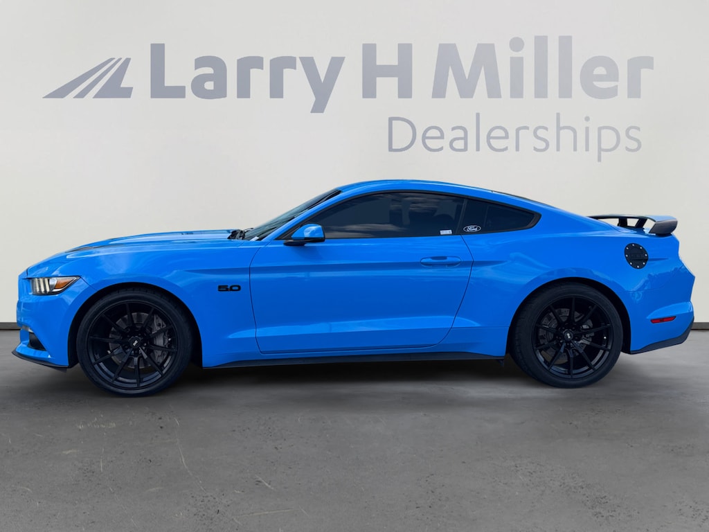 This 2017 Grabber Blue Ford Mustang GT Premium RWD is well equipped and includes these features and benefits: Black Accent Package (Wheels: 19 Painted Black Aluminum), Enhanced Security Package (Wheel Locking Kit), Equipment Group 401A (Memory Driver Seat, Mirrors & Ambient Lighting and Shaker Pro Audio System), 4-Wheel Disc Brakes, 9 Speakers, ABS brakes, Air Conditioning, Alloy wheels, AM/FM radio: SiriusXM, AM/FM Stereo w/Single CD Player, Auto-dimming Rear-View mirror, Automatic temperature control, Block heater, Brake assist, Bumpers: body-color, CD player, Climate Controlled Heated/Cooled Front Seats, Compass, Delay-off headlights, Driver door bin, Driver vanity mirror, Dual front impact airbags, Dual front side impact airbags, Electronic Stability Control, Emergency communication system: 911 Assist, Exterior Parking Camera Rear, Four wheel independent suspension, Front anti-roll bar, Front Bucket Seats, Front Center Armrest, Front dual zone A/C, Front fog lights, Front reading lights, Fully automatic headlights, Garage door transmitter, Heated door mirrors, Heated front seats, High-Intensity Discharge Headlights, Illuminated entry, Knee airbag, Leather Bucket Seats, Leather Shift Knob, Low tire pressure warning, Occupant sensing airbag, Outside temperature display, Overhead airbag, Overhead console, Panic alarm, Passenger door bin, Passenger vanity mirror, Power door mirrors, Power driver seat, Power passenger seat, Power steering, Power windows, Radio data system, Rear anti-roll bar, Rear window defroster, Remote keyless entry, Reverse Sensing System, Security system, SiriusXM Radio, Speed control, Speed-sensing steering, Speed-Sensitive Wipers, Split folding rear seat, Steering wheel mounted audio controls, SYNC 3 Communications & Entertainment System, Tachometer, Telescoping steering wheel, Tilt steering wheel, Traction control, Trip computer, Turn signal indicator mirrors, Variably intermittent wipers, Ventilated front seats, Voltmeter, and Wheels: 18 x 8 Magnetic Painted/Machined. 4-Wheel Disc Brakes, 9 Speakers, ABS brakes, Air Conditioning, Alloy wheels, AM/FM radio: SiriusXM, AM/FM Stereo w/Single CD Player, Auto-dimming Rear-View mirror, Automatic temperature control, Black Accent Package, Block heater, Brake assist, Bumpers: body-color, CD player, Climate Controlled Heated/Cooled Front Seats, Compass, Delay-off headlights, Driver door bin, Driver vanity mirror, Dual front impact airbags, Dual front side impact airbags, Electronic Stability Control, Emergency communication system: 911 Assist, Enhanced Security Package, Equipment Group 401A, Exterior Parking Camera Rear, Four wheel independent suspension, Front anti-roll bar, Front Bucket Seats, Front Center Armrest, Front dual zone A/C, Front fog lights, Front reading lights, Fully automatic headlights, Garage door transmitter, Heated door mirrors, Heated front seats, High-Intensity Discharge Headlights, Illuminated entry, Knee airbag, Leather Bucket Seats, Leather Shift Knob, Low tire pressure warning, Memory Driver Seat, Mirrors & Ambient Lighting, Occupant sensing airbag, Outside temperature display, Overhead airbag, Overhead console, Panic alarm, Passenger door bin, Passenger vanity mirror, Power door mirrors, Power driver seat, Power passenger seat, Power steering, Power windows, Radio data system, Rear anti-roll bar, Rear window defroster, Remote keyless entry, Reverse Sensing System, Security system, Shaker Pro Audio System, SiriusXM Radio, Speed control, Speed-sensing steering, Speed-Sensitive Wipers, Split folding rear seat, Steering wheel mounted audio controls, SYNC 3 Communications & Entertainment System, Tachometer, Telescoping steering wheel, Tilt steering wheel, Traction control, Trip computer, Turn signal indicator mirrors, Variably intermittent wipers, Ventilated front seats, Voltmeter, Wheel Locking Kit, Wheels: 18 x 8 Magnetic Painted/Machined, Wheels: 19 Painted Black Aluminum.