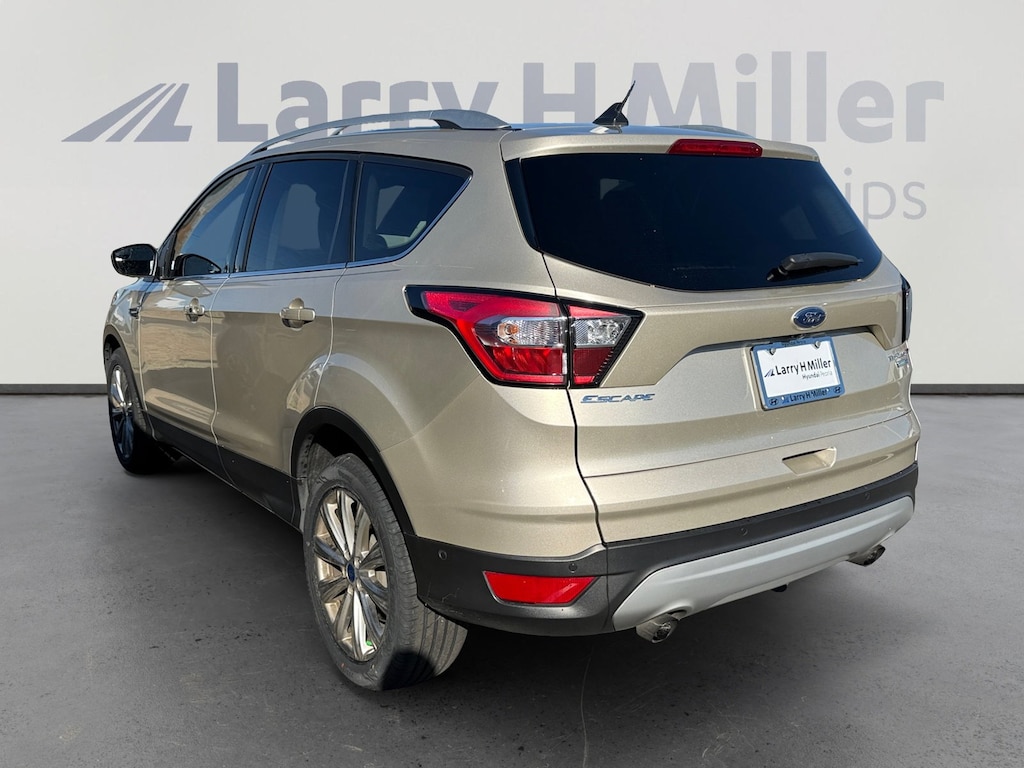 This 2018 White Gold Ford Escape Titanium 4WD is well equipped and includes these features and benefits: Equipment Group 400A, 4WD, 10 Speakers, 3.07 Axle Ratio, 4-Wheel Disc Brakes, ABS brakes, Air Conditioning, Alloy wheels, AM/FM radio: SiriusXM, AppLink/Apple CarPlay and Android Auto, Auto-dimming Rear-View mirror, Automatic temperature control, Brake assist, Bumpers: body-color, CD player, Compass, Delay-off headlights, Driver door bin, Driver vanity mirror, Dual front impact airbags, Dual front side impact airbags, Electronic Stability Control, Emergency communication system: SYNC 3 911 Assist, Exterior Parking Camera Rear, Four wheel independent suspension, Front anti-roll bar, Front Bucket Seats, Front Center Armrest, Front dual zone A/C, Front fog lights, Front reading lights, Fully automatic headlights, Garage door transmitter, Heated door mirrors, Heated front seats, Heated Leather-Trimmed Front Bucket Seats, Heated steering wheel, High-Intensity Discharge Headlights, Illuminated entry, Knee airbag, Leather Shift Knob, Low tire pressure warning, Memory seat, Navigation System, Occupant sensing airbag, Outside temperature display, Overhead airbag, Overhead console, Panic alarm, Passenger door bin, Passenger vanity mirror, Power door mirrors, Power driver seat, Power Liftgate, Power passenger seat, Power steering, Power windows, Radio data system, Radio: AM/FM Stereo w/Single-CD/MP3 Player, Rear anti-roll bar, Rear reading lights, Rear seat center armrest, Rear window defroster, Rear window wiper, Remote keyless entry, Roof rack: rails only, Security system, Speed control, Speed-sensing steering, Split folding rear seat, Steering wheel mounted audio controls, SYNC 3 Communications & Entertainment System, SYNC Connect, Tachometer, Telescoping steering wheel, Tilt steering wheel, Traction control, Trip computer, Turn signal indicator mirrors, Variably intermittent wipers, Voice-Activated Touchscreen Navigation System, and Wheels: 18 Sparkle Silver-Painted Aluminum. 4WD, 10 Speakers, 3.07 Axle Ratio, 4-Wheel Disc Brakes, ABS brakes, Air Conditioning, Alloy wheels, AM/FM radio: SiriusXM, AppLink/Apple CarPlay and Android Auto, Auto-dimming Rear-View mirror, Automatic temperature control, Brake assist, Bumpers: body-color, CD player, Compass, Delay-off headlights, Driver door bin, Driver vanity mirror, Dual front impact airbags, Dual front side impact airbags, Electronic Stability Control, Emergency communication system: SYNC 3 911 Assist, Equipment Group 400A, Exterior Parking Camera Rear, Four wheel independent suspension, Front anti-roll bar, Front Bucket Seats, Front Center Armrest, Front dual zone A/C, Front fog lights, Front reading lights, Fully automatic headlights, Garage door transmitter, Heated door mirrors, Heated front seats, Heated Leather-Trimmed Front Bucket Seats, Heated steering wheel, High-Intensity Discharge Headlights, Illuminated entry, Knee airbag, Leather Shift Knob, Low tire pressure warning, Memory seat, Navigation System, Occupant sensing airbag, Outside temperature display, Overhead airbag, Overhead console, Panic alarm, Passenger door bin, Passenger vanity mirror, Power door mirrors, Power driver seat, Power Liftgate, Power passenger seat, Power steering, Power windows, Radio data system, Radio: AM/FM Stereo w/Single-CD/MP3 Player, Rear anti-roll bar, Rear reading lights, Rear seat center armrest, Rear window defroster, Rear window wiper, Remote keyless entry, Roof rack: rails only, Security system, Speed control, Speed-sensing steering, Split folding rear seat, Steering wheel mounted audio controls, SYNC 3 Communications & Entertainment System, SYNC Connect, Tachometer, Telescoping steering wheel, Tilt steering wheel, Traction control, Trip computer, Turn signal indicator mirrors, Variably intermittent wipers, Voice-Activated Touchscreen Navigation System, Wheels: 18 Sparkle Silver-Painted Aluminum, 4WD.