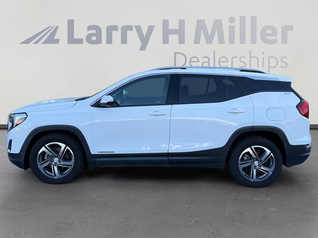 This 2019 Summit White GMC Terrain SLT FWD is well equipped and includes these features and benefits: License Plate Front Mounting Package, Preferred Equipment Group 4SA, 2 USB Data Ports, 2 USB Data Ports w/SD Card Reader, 3.47 Axle Ratio, 4-Way Manual Front Passenger Seat, 4-Wheel Disc Brakes, 6 Speakers, 6-Speaker Audio System Feature, 8-Way Power Driver Seat Adjuster, ABS brakes, Air Conditioning, Alloy wheels, AM/FM radio: SiriusXM, Apple CarPlay/Android Auto, Auto-dimming door mirrors, Auto-dimming Rear-View mirror, Automatic temperature control, Bluetooth® For Phone, Brake assist, Bumpers: body-color, Compass, Delay-off headlights, Driver & Front Passenger Heated Seats, Driver door bin, Driver vanity mirror, Dual front impact airbags, Dual front side impact airbags, Electronic Stability Control, Emergency communication system, Exterior Parking Camera Rear, Four wheel independent suspension, Front anti-roll bar, Front Bucket Seats, Front Center Armrest, Front dual zone A/C, Front fog lights, Front reading lights, Fully automatic headlights, Heated door mirrors, Heated front seats, High-Intensity Discharge Headlights, Illuminated entry, Low tire pressure warning, Occupant sensing airbag, Outside temperature display, Overhead airbag, Overhead console, Panic alarm, Passenger door bin, Passenger vanity mirror, Perforated Leather-Appointed Seat Trim, Power door mirrors, Power Driver Lumbar Control, Power driver seat, Power steering, Power windows, Radio data system, Radio: GMC Infotainment Audio System w/8 Display, Rear anti-roll bar, Rear seat center armrest, Rear window defroster, Rear window wiper, Remote keyless entry, Roof rack: rails only, Security system, SiriusXM Radio, Speed control, Speed-sensing steering, Split folding rear seat, Spoiler, Steering wheel mounted audio controls, Tachometer, Telescoping steering wheel, Tilt steering wheel, Traction control, Trip computer, Turn signal indicator mirrors, Variably intermittent wipers, and Wheels: 18 x 7 Machined Aluminum w/Gray Accents. 2 USB Data Ports, 2 USB Data Ports w/SD Card Reader, 3.47 Axle Ratio, 4-Way Manual Front Passenger Seat, 4-Wheel Disc Brakes, 6 Speakers, 6-Speaker Audio System Feature, 8-Way Power Driver Seat Adjuster, ABS brakes, Air Conditioning, Alloy wheels, AM/FM radio: SiriusXM, Apple CarPlay/Android Auto, Auto-dimming door mirrors, Auto-dimming Rear-View mirror, Automatic temperature control, Bluetooth® For Phone, Brake assist, Bumpers: body-color, Compass, Delay-off headlights, Driver & Front Passenger Heated Seats, Driver door bin, Driver vanity mirror, Dual front impact airbags, Dual front side impact airbags, Electronic Stability Control, Emergency communication system, Exterior Parking Camera Rear, Four wheel independent suspension, Front anti-roll bar, Front Bucket Seats, Front Center Armrest, Front dual zone A/C, Front fog lights, Front reading lights, Fully automatic headlights, Heated door mirrors, Heated front seats, High-Intensity Discharge Headlights, Illuminated entry, License Plate Front Mounting Package, Low tire pressure warning, Occupant sensing airbag, Outside temperature display, Overhead airbag, Overhead console, Panic alarm, Passenger door bin, Passenger vanity mirror, Perforated Leather-Appointed Seat Trim, Power door mirrors, Power Driver Lumbar Control, Power driver seat, Power steering, Power windows, Preferred Equipment Group 4SA, Radio data system, Radio: GMC Infotainment Audio System w/8 Display, Rear anti-roll bar, Rear seat center armrest, Rear window defroster, Rear window wiper, Remote keyless entry, Roof rack: rails only, Security system, SiriusXM Radio, Speed control, Speed-sensing steering, Split folding rear seat, Spoiler, Steering wheel mounted audio controls, Tachometer, Telescoping steering wheel, Tilt steering wheel, Traction control, Trip computer, Turn signal indicator mirrors, Variably intermittent wipers, Wheels: 18 x 7 Machined Aluminum w/Gray Accents.