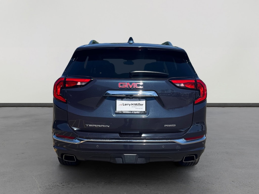 This 2019 Blue Steel Metallic GMC Terrain Denali AWD is well equipped and includes these features and benefits: Advanced Safety Package (Automatic Parking Assist and HD Surround Vision), Comfort Package (Heated Rear Outboard Seating Positions, Ventilated Driver Seat, and Ventilated Front Passenger Seat), Driver Alert Package II (Adaptive Cruise Control - Camera, Following Distance Indicator, Forward Collision Alert, Front Pedestrian Braking, IntelliBeam Auto High Beam Headlamp Control, Lane Keep Assist w/Lane Departure Warning, and Low Speed Forward Automatic Braking), Interior Protection Package (LPO) (All-Weather Cargo Mat (LPO) and All-Weather Floor Mats), Preferred Equipment Group 5SA, Trailering Equipment (Factory Installed Trailer Hitch), AWD, 2 USB Data Ports, 2 USB Data Ports w/SD Card Reader, 3.17 Axle Ratio, 4-Wheel Disc Brakes, 6-Way Power Front Passenger Seat, 7 Speakers, 8-Way Power Driver Seat Adjuster, ABS brakes, Air Conditioning, Alloy wheels, AM/FM radio: SiriusXM, Apple CarPlay/Android Auto, Auto-dimming door mirrors, Auto-dimming Rear-View mirror, Automatic temperature control, Bluetooth® For Phone, Brake assist, Bumpers: body-color, Compass, Delay-off headlights, Driver & Front Passenger Heated Seats, Driver door bin, Driver vanity mirror, Dual front impact airbags, Dual front side impact airbags, Electronic Stability Control, Emergency communication system, Exterior Parking Camera Rear, Four wheel independent suspension, Front anti-roll bar, Front Bucket Seats, Front Center Armrest, Front dual zone A/C, Front fog lights, Front Passenger 2-Way Power Lumbar, Front reading lights, Fully automatic headlights, Garage door transmitter, HD Radio, Heated door mirrors, Heated front seats, Heated steering wheel, Illuminated entry, Low tire pressure warning, Memory seat, Navigation System, Occupant sensing airbag, Outside temperature display, Overhead airbag, Overhead console, Panic alarm, Passenger door bin, Passenger vanity mirror, Perforated Leather-Appointed Seat Trim w/Denali Logo, Power door mirrors, Power Driver Lumbar Control, Power driver seat, Power Liftgate, Power passenger seat, Power steering, Power windows, Premium 7-Speaker Bose Sound System w/Amplifier, Radio data system, Radio: GMC Infotainment System w/Navigation, Rear anti-roll bar, Rear seat center armrest, Rear window defroster, Rear window wiper, Remote keyless entry, Roof rack: rails only, Security system, SiriusXM Radio, Speed control, Speed-sensing steering, Split folding rear seat, Spoiler, Steering wheel mounted audio controls, Tachometer, Telescoping steering wheel, Tilt steering wheel, Traction control, Trip computer, Turn signal indicator mirrors, Variably intermittent wipers, and Wheels: 19 x 7.5 Ultra-Bright Machined Aluminum. AWD, 2 USB Data Ports, 2 USB Data Ports w/SD Card Reader, 3.17 Axle Ratio, 4-Wheel Disc Brakes, 6-Way Power Front Passenger Seat, 7 Speakers, 8-Way Power Driver Seat Adjuster, ABS brakes, Adaptive Cruise Control - Camera, Advanced Safety Package, Air Conditioning, All-Weather Cargo Mat (LPO), All-Weather Floor Mats, Alloy wheels, AM/FM radio: SiriusXM, Apple CarPlay/Android Auto, Auto-dimming door mirrors, Auto-dimming Rear-View mirror, Automatic Parking Assist, Automatic temperature control, Bluetooth® For Phone, Brake assist, Bumpers: body-color, Comfort Package, Compass, Delay-off headlights, Driver & Front Passenger Heated Seats, Driver Alert Package II, Driver door bin, Driver vanity mirror, Dual front impact airbags, Dual front side impact airbags, Electronic Stability Control, Emergency communication system, Exterior Parking Camera Rear, Factory Installed Trailer Hitch, Following Distance Indicator, Forward Collision Alert, Four wheel independent suspension, Front anti-roll bar, Front Bucket Seats, Front Center Armrest, Front dual zone A/C, Front fog lights, Front Passenger 2-Way Power Lumbar, Front Pedestrian Braking, Front reading lights, Fully automatic headlights, Garage door transmitter, HD Radio