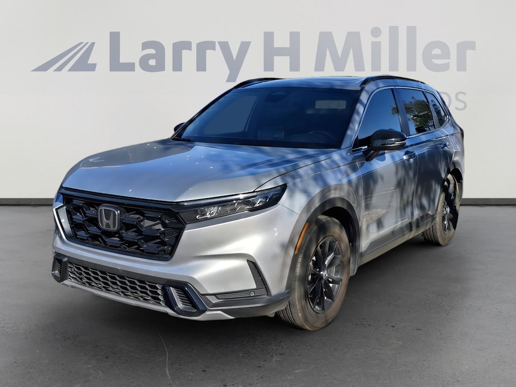 This 2025 Silver Metallic Honda CR-V Hybrid Sport-L FWD is well equipped and includes these features and benefits.2.0L I4 DOHC 16V, 4-Wheel Disc Brakes, 8 Speakers, ABS brakes, Adaptive Cruise Control: Adaptive Cruise Control (ACC) with Low-Speed Follow, Air Conditioning, Alloy wheels, AM/FM radio: SiriusXM, Auto High-beam Headlights, Auto-dimming Rear-View mirror, Automatic temperature control, Blind Spot Information (BSI) System warning, Brake assist, Bumpers: body-color, Compass, Delay-off headlights, Driver door bin, Driver vanity mirror, Dual front impact airbags, Dual front side impact airbags, Electronic Stability Control, Exterior Parking Camera Rear, Four wheel independent suspension, Front anti-roll bar, Front Bucket Seats, Front Center Armrest, Front dual zone A/C, Front reading lights, Fully automatic headlights, Heated door mirrors, Heated Front Bucket Seats, Heated front seats, Illuminated entry, Knee airbag, Leather Seat Trim, Leather Shift Knob, Leather steering wheel, Low tire pressure warning, Memory seat, Occupant sensing airbag, Outside temperature display, Overhead airbag, Overhead console, Panic alarm, Passenger door bin, Passenger vanity mirror, Power door mirrors, Power driver seat, Power Liftgate, Power moonroof, Power passenger seat, Power steering, Power windows, Radio data system, Radio: 320-Watt AM/FM/HD/SiriusXM Audio System, Rear anti-roll bar, Rear reading lights, Rear seat center armrest, Rear side impact airbag, Rear window defroster, Rear window wiper, Remote keyless entry, Security system, Speed control, Speed-sensing steering, Speed-Sensitive Wipers, Split folding rear seat, Spoiler, Steering wheel mounted audio controls, Telescoping steering wheel, Tilt steering wheel, Traction control, Trip computer, Turn signal indicator mirrors, Variably intermittent wipers, and Wheels: 18 Berlina Black Alloy: 2.0L I4 DOHC 16V, 4-Wheel Disc Brakes, 8 Speakers, ABS brakes, Adaptive Cruise Control: Adaptive Cruise Control (ACC) with Low-Speed Follow, Air Conditioning, Alloy wheels, AM/FM radio: SiriusXM, Auto High-beam Headlights, Auto-dimming Rear-View mirror, Automatic temperature control, Blind Spot Information (BSI) System warning, Brake assist, Bumpers: body-color, Compass, Delay-off headlights, Driver door bin, Driver vanity mirror, Dual front impact airbags, Dual front side impact airbags, Electronic Stability Control, Exterior Parking Camera Rear, Four wheel independent suspension, Front anti-roll bar, Front Bucket Seats, Front Center Armrest, Front dual zone A/C, Front reading lights, Fully automatic headlights, Heated door mirrors, Heated Front Bucket Seats, Heated front seats, Illuminated entry, Knee airbag, Leather Seat Trim, Leather Shift Knob, Leather steering wheel, Low tire pressure warning, Memory seat, Occupant sensing airbag, Outside temperature display, Overhead airbag, Overhead console, Panic alarm, Passenger door bin, Passenger vanity mirror, Power door mirrors, Power driver seat, Power Liftgate, Power moonroof, Power passenger seat, Power steering, Power windows, Radio data system, Radio: 320-Watt AM/FM/HD/SiriusXM Audio System, Rear anti-roll bar, Rear reading lights, Rear seat center armrest, Rear side impact airbag, Rear window defroster, Rear window wiper, Remote keyless entry, Security system, Speed control, Speed-sensing steering, Speed-Sensitive Wipers, Split folding rear seat, Spoiler, Steering wheel mounted audio controls, Telescoping steering wheel, Tilt steering wheel, Traction control, Trip computer, Turn signal indicator mirrors, Variably intermittent wipers, and Wheels: 18 Berlina Black Alloy. 2.0L I4 DOHC 16V, 4-Wheel Disc Brakes, 8 Speakers, ABS brakes, Adaptive Cruise Control: Adaptive Cruise Control (ACC) with Low-Speed Follow, Air Conditioning, Alloy wheels, AM/FM radio: SiriusXM, Auto High-beam Headlights, Auto-dimming Rear-View mirror, Automatic temperature control, Blind Spot Information (BSI) System warning, Brake assist, Bumpers: body-color, Compass, Delay-