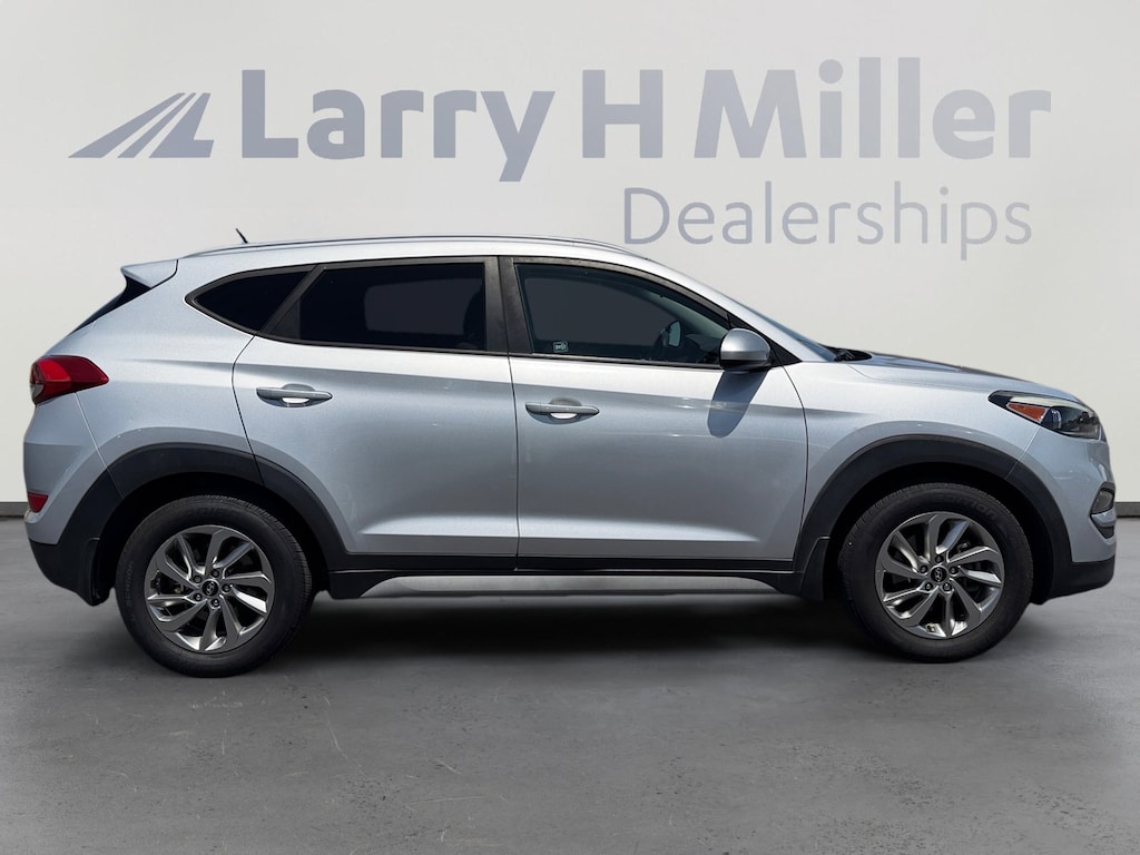 This 2017 Molten Silver Hyundai Tucson SE AWD is well equipped and includes these features and benefits: SE Popular Package 02 (Driver Power Window w/Auto Up/Down, Dual Illuminated Vanity Mirrors, Fog Lamps, Front Seats w/Power Driver's Seat, Illuminated Glove Box, LED Daytime Running Lights, LED Headlight Accents (Positioning Lights), Option Group 02, Premium Side Sills, and Roof Rack Side Rails), AWD, 17 Alloy Wheels, 4-Wheel Disc Brakes, 6 Speakers, ABS brakes, Air Conditioning, Alloy wheels, AM/FM radio: SiriusXM, AM/FM/CD/MP3 Audio System, Axle Ratio: 3.648, Brake assist, Bumpers: body-color, Carpeted Floor Mats, CD player, Delay-off headlights, Driver door bin, Driver vanity mirror, Dual front impact airbags, Dual front side impact airbags, Electronic Stability Control, Exterior Parking Camera Rear, Four wheel independent suspension, Front anti-roll bar, Front Bucket Seats, Front Center Armrest, Front reading lights, Fully automatic headlights, Heated door mirrors, Illuminated entry, Low tire pressure warning, Mudguards, Occupant sensing airbag, Outside temperature display, Overhead airbag, Overhead console, Panic alarm, Passenger door bin, Passenger vanity mirror, Power door mirrors, Power steering, Power windows, Rear anti-roll bar, Rear seat center armrest, Rear window defroster, Rear window wiper, Remote keyless entry, Security system, Speed control, Speed-sensing steering, Split folding rear seat, Spoiler, Steering wheel mounted audio controls, Tachometer, Telescoping steering wheel, Tilt steering wheel, Traction control, Trip computer, Variably intermittent wipers, Wheel Locks, and YES Essentials Cloth Seat Trim. AWD, 17 Alloy Wheels, 4-Wheel Disc Brakes, 6 Speakers, ABS brakes, Air Conditioning, Alloy wheels, AM/FM radio: SiriusXM, AM/FM/CD/MP3 Audio System, Axle Ratio: 3.648, Brake assist, Bumpers: body-color, Carpeted Floor Mats, CD player, Delay-off headlights, Driver door bin, Driver Power Window w/Auto Up/Down, Driver vanity mirror, Dual front impact airbags, Dual front side impact airbags, Dual Illuminated Vanity Mirrors, Electronic Stability Control, Exterior Parking Camera Rear, Fog Lamps, Four wheel independent suspension, Front anti-roll bar, Front Bucket Seats, Front Center Armrest, Front reading lights, Front Seats w/Power Driver's Seat, Fully automatic headlights, Heated door mirrors, Illuminated entry, Illuminated Glove Box, LED Daytime Running Lights, LED Headlight Accents (Positioning Lights), Low tire pressure warning, Mudguards, Occupant sensing airbag, Option Group 02, Outside temperature display, Overhead airbag, Overhead console, Panic alarm, Passenger door bin, Passenger vanity mirror, Power door mirrors, Power steering, Power windows, Premium Side Sills, Rear anti-roll bar, Rear seat center armrest, Rear window defroster, Rear window wiper, Remote keyless entry, Roof Rack Side Rails, SE Popular Package 02, Security system, Speed control, Speed-sensing steering, Split folding rear seat, Spoiler, Steering wheel mounted audio controls, Tachometer, Telescoping steering wheel, Tilt steering wheel, Traction control, Trip computer, Variably intermittent wipers, Wheel Locks, YES Essentials Cloth Seat Trim, AWD.