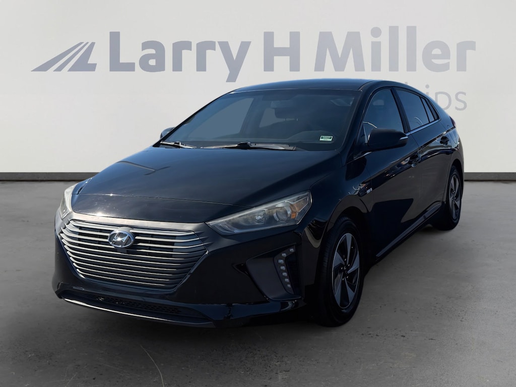 This 2018 Black Noir Pearl Hyundai Ioniq Hybrid SEL FWD is well equipped and includes these features and benefits: Option Group 01, 1.6L I4 DGI Hybrid DOHC 16V LEV3-SULEV30, 4-Wheel Disc Brakes, 6 Speakers, ABS brakes, Air Conditioning, Alloy wheels, AM/FM radio: SiriusXM, Apple CarPlay & Android Auto, Automatic temperature control, Bodyside moldings, Brake assist, Bumpers: body-color, Cargo Tray, Carpet Floor Mats, Delay-off headlights, Driver door bin, Driver vanity mirror, Dual front impact airbags, Dual front side impact airbags, Electronic Stability Control, Exterior Parking Camera Rear, Four wheel independent suspension, Front anti-roll bar, Front Bucket Seats, Front Center Armrest, Front dual zone A/C, Front reading lights, Fully automatic headlights, Heated door mirrors, Heated Front Bucket Seats, Heated front seats, Illuminated entry, Knee airbag, Leather Shift Knob, Low tire pressure warning, Occupant sensing airbag, Outside temperature display, Overhead airbag, Overhead console, Panic alarm, Passenger door bin, Passenger vanity mirror, Power door mirrors, Power driver seat, Power steering, Power windows, Premium Cloth Seating Surfaces, Radio: 7 Touch-Screen Display Audio, Rear seat center armrest, Rear window defroster, Remote keyless entry, Security system, Speed control, Speed-sensing steering, Split folding rear seat, Spoiler, Steering wheel mounted audio controls, Tachometer, Telescoping steering wheel, Tilt steering wheel, Traction control, Trip computer, Turn signal indicator mirrors, Variably intermittent wipers, and Wheels: 15 Eco-spoke Alloy. 1.6L I4 DGI Hybrid DOHC 16V LEV3-SULEV30, 4-Wheel Disc Brakes, 6 Speakers, ABS brakes, Air Conditioning, Alloy wheels, AM/FM radio: SiriusXM, Apple CarPlay & Android Auto, Automatic temperature control, Bodyside moldings, Brake assist, Bumpers: body-color, Cargo Tray, Carpet Floor Mats, Delay-off headlights, Driver door bin, Driver vanity mirror, Dual front impact airbags, Dual front side impact airbags, Electronic Stability Control, Exterior Parking Camera Rear, Four wheel independent suspension, Front anti-roll bar, Front Bucket Seats, Front Center Armrest, Front dual zone A/C, Front reading lights, Fully automatic headlights, Heated door mirrors, Heated Front Bucket Seats, Heated front seats, Illuminated entry, Knee airbag, Leather Shift Knob, Low tire pressure warning, Occupant sensing airbag, Option Group 01, Outside temperature display, Overhead airbag, Overhead console, Panic alarm, Passenger door bin, Passenger vanity mirror, Power door mirrors, Power driver seat, Power steering, Power windows, Premium Cloth Seating Surfaces, Radio: 7 Touch-Screen Display Audio, Rear seat center armrest, Rear window defroster, Remote keyless entry, Security system, Speed control, Speed-sensing steering, Split folding rear seat, Spoiler, Steering wheel mounted audio controls, Tachometer, Telescoping steering wheel, Tilt steering wheel, Traction control, Trip computer, Turn signal indicator mirrors, Variably intermittent wipers, Wheels: 15 Eco-spoke Alloy, 1.6L I4 DGI Hybrid DOHC 16V LEV3-SULEV30.