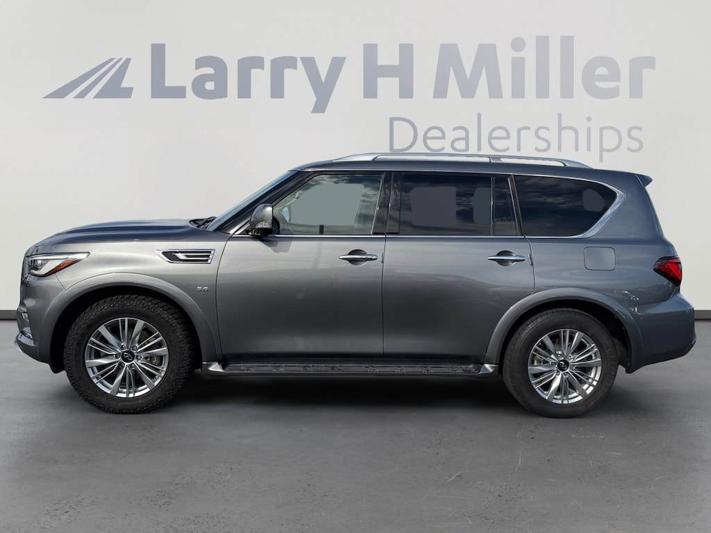 This 2020 Graphite Shadow INFINITI QX80 LUXE 4WD is well equipped and includes these features and benefits: ProASSIST Package (Blind Spot Intervention (BSI), Intelligent Cruise Control, Lane Departure Prevention (LDP), and Smart Rear View Mirror), 13 Speakers, 2.937 Axle Ratio, 3rd row seats: split-bench, 4-Wheel Disc Brakes, ABS brakes, Air Conditioning, Alloy wheels, AM/FM radio: SiriusXM, Anti-whiplash front head restraints, Apple CarPlay/Android Auto, Auto High-beam Headlights, Auto tilt-away steering wheel, Auto-dimming door mirrors, Auto-dimming Rear-View mirror, Auto-leveling suspension, Automatic temperature control, Blind Spot Warning, Brake assist, Bumpers: body-color, CD player, Compass, Delay-off headlights, Driver door bin, Driver vanity mirror, Dual front impact airbags, Dual front side impact airbags, DVD-Audio, Electronic Stability Control, Emergency communication system: INFINITI Connection, Four wheel independent suspension, Front anti-roll bar, Front Bucket Seats, Front Center Armrest, Front dual zone A/C, Front fog lights, Front reading lights, Fully automatic headlights, Garage door transmitter: HomeLink, Heated door mirrors, Heated Front Bucket Seats, Heated front seats, Heated steering wheel, Illuminated entry, Leather Shift Knob, Leather steering wheel, Leather-Appointed Seats, Literature Kit, Low tire pressure warning, Memory seat, Navigation system: INFINITI InTouch Navigation, Occupant sensing airbag, Outside temperature display, Overhead airbag, Overhead console, Panic alarm, Passenger door bin, Passenger vanity mirror, Power door mirrors, Power driver seat, Power Liftgate, Power moonroof, Power passenger seat, Power steering, Power windows, Radiant Illuminated Kick Plates, Radio data system, Radio: AM/FM/HD w/Single In-Dash CD Player & MP3, Rain sensing wipers, Rear air conditioning, Rear anti-roll bar, Rear audio controls, Rear reading lights, Rear seat center armrest, Rear window defroster, Rear window wiper, Reclining 3rd row seat, Remote keyless entry, Security system, Speed control, Speed-sensing steering, Split folding rear seat, Spoiler, Steering wheel memory, Steering wheel mounted audio controls, Tachometer, Telescoping steering wheel, Tilt steering wheel, Traction control, Trip computer, Turn signal indicator mirrors, Variably intermittent wipers, Voltmeter, and Wheels: 20 x 8.0 Aluminum-Alloy. 13 Speakers, 2.937 Axle Ratio, 3rd row seats: split-bench, 4-Wheel Disc Brakes, ABS brakes, Air Conditioning, Alloy wheels, AM/FM radio: SiriusXM, Anti-whiplash front head restraints, Apple CarPlay/Android Auto, Auto High-beam Headlights, Auto tilt-away steering wheel, Auto-dimming door mirrors, Auto-dimming Rear-View mirror, Auto-leveling suspension, Automatic temperature control, Blind Spot Intervention (BSI), Blind Spot Warning, Brake assist, Bumpers: body-color, CD player, Compass, Delay-off headlights, Driver door bin, Driver vanity mirror, Dual front impact airbags, Dual front side impact airbags, DVD-Audio, Electronic Stability Control, Emergency communication system: INFINITI Connection, Four wheel independent suspension, Front anti-roll bar, Front Bucket Seats, Front Center Armrest, Front dual zone A/C, Front fog lights, Front reading lights, Fully automatic headlights, Garage door transmitter: HomeLink, Heated door mirrors, Heated Front Bucket Seats, Heated front seats, Heated steering wheel, Illuminated entry, Intelligent Cruise Control, Lane Departure Prevention (LDP), Leather Shift Knob, Leather steering wheel, Leather-Appointed Seats, Literature Kit, Low tire pressure warning, Memory seat, Navigation system: INFINITI InTouch Navigation, Occupant sensing airbag, Outside temperature display, Overhead airbag, Overhead console, Panic alarm, Passenger door bin, Passenger vanity mirror, Power door mirrors, Power driver seat, Power Liftgate, Power moonroof, Power passenger seat, Power steering, Power windows, ProASSIST Package, Radiant Illuminated Kick Plates, Radio data system, Radio: AM/