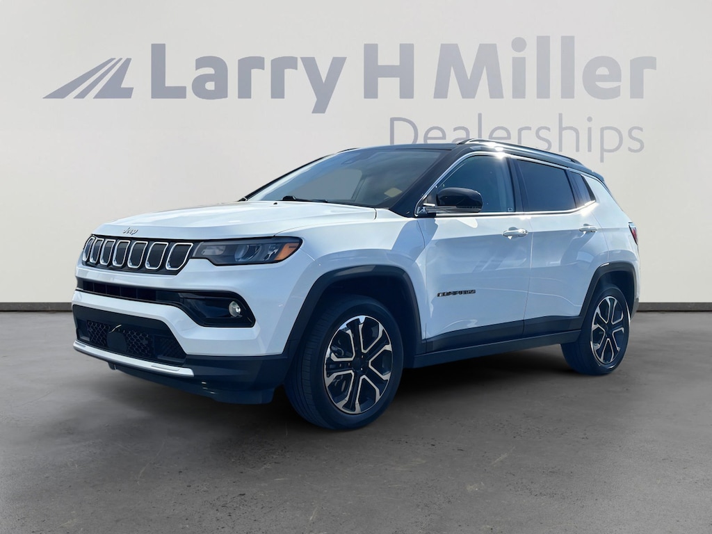 This 2022 Bright White Clearcoat Jeep Compass Limited 4WD is well equipped and includes these features and benefits: Quick Order Package 2GG, 4WD, 10.1 Touchscreen Display, 3.73 Axle Ratio, 4-Wheel Disc Brakes, 6 Speakers, ABS brakes, Air Conditioning, Alloy wheels, AM/FM radio: SiriusXM, Anti-whiplash front head restraints, Auto High-beam Headlights, Auto-dimming Rear-View mirror, Automatic temperature control, Brake assist, Bumpers: body-color, Compass, Delay-off headlights, Disassociated Touchscreen Display, Driver door bin, Driver vanity mirror, Dual front impact airbags, Dual front side impact airbags, Electronic Stability Control, Emergency communication system: SiriusXM Guardian, Four wheel independent suspension, Front anti-roll bar, Front Bucket Seats, Front Center Armrest w/Storage, Front dual zone A/C, Front fog lights, Front License Plate Bracket, Front reading lights, Fully automatic headlights, Global Telematics Box Module (TBM), Gloss Black Exterior Mirrors, Heated door mirrors, Heated front seats, Heated steering wheel, Illuminated entry, Knee airbag, Leather Shift Knob, Leather Trimmed Bucket Seats, Low tire pressure warning, Occupant sensing airbag, Outside temperature display, Overhead airbag, Overhead console, Panic alarm, ParkView Rear Back-Up Camera, Passenger door bin, Passenger vanity mirror, Power door mirrors, Power driver seat, Power steering, Power windows, Radio: Uconnect 5 w/10.1 Display, Rain sensing wipers, Rear anti-roll bar, Rear seat center armrest, Rear window defroster, Rear window wiper, Remote keyless entry, Roof rack: rails only, Security system, Speed control, Split folding rear seat, Spoiler, Steering wheel mounted audio controls, Tachometer, Telescoping steering wheel, Tilt steering wheel, Traction control, Trip computer, Turn signal indicator mirrors, Variably intermittent wipers, and Wheels: 18 x 7 Painted Diamond Cut Aluminum. 4WD, 10.1 Touchscreen Display, 3.73 Axle Ratio, 4-Wheel Disc Brakes, 6 Speakers, ABS brakes, Air Conditioning, Alloy wheels, AM/FM radio: SiriusXM, Anti-whiplash front head restraints, Auto High-beam Headlights, Auto-dimming Rear-View mirror, Automatic temperature control, Brake assist, Bumpers: body-color, Compass, Delay-off headlights, Disassociated Touchscreen Display, Driver door bin, Driver vanity mirror, Dual front impact airbags, Dual front side impact airbags, Electronic Stability Control, Emergency communication system: SiriusXM Guardian, Four wheel independent suspension, Front anti-roll bar, Front Bucket Seats, Front Center Armrest w/Storage, Front dual zone A/C, Front fog lights, Front License Plate Bracket, Front reading lights, Fully automatic headlights, Global Telematics Box Module (TBM), Gloss Black Exterior Mirrors, Heated door mirrors, Heated front seats, Heated steering wheel, Illuminated entry, Knee airbag, Leather Shift Knob, Leather Trimmed Bucket Seats, Low tire pressure warning, Occupant sensing airbag, Outside temperature display, Overhead airbag, Overhead console, Panic alarm, ParkView Rear Back-Up Camera, Passenger door bin, Passenger vanity mirror, Power door mirrors, Power driver seat, Power steering, Power windows, Quick Order Package 2GG, Radio: Uconnect 5 w/10.1 Display, Rain sensing wipers, Rear anti-roll bar, Rear seat center armrest, Rear window defroster, Rear window wiper, Remote keyless entry, Roof rack: rails only, Security system, Speed control, Split folding rear seat, Spoiler, Steering wheel mounted audio controls, Tachometer, Telescoping steering wheel, Tilt steering wheel, Traction control, Trip computer, Turn signal indicator mirrors, Variably intermittent wipers, Wheels: 18 x 7 Painted Diamond Cut Aluminum, 4WD.
