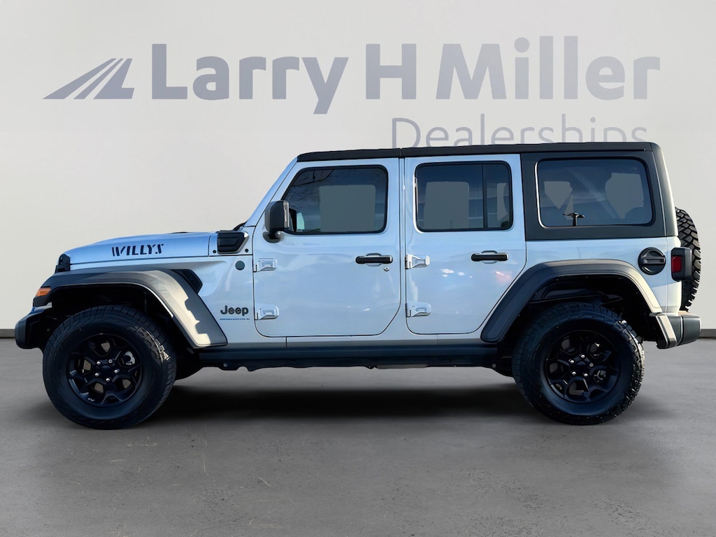 This 2023 Silver Zynith Clearcoat Jeep Wrangler Base 4xe 4WD is well equipped and includes these features and benefits: Convenience Group (Universal Garage Door Opener), Quick Order Package 29W Willys (4xe 4-Wheel Drive Swing Gate Decal, 97 MPH Vehicle Max Speed Calibration, Anti-Spin Differential Rear Axle, Black Grille, Front LED Fog Lamps, LED Headlamp & Fog Lamp Group, LED Premium Reflector Headlamps, Molded-In-Color Fender Flares (2-Piece), MOPAR All-Weather Floor Mats, Normal Duty Suspension, Wheels: 17 x 7.5 Black Aluminum, Willys, and Willys 4xe Hood Decal), Trailer Tow & Aux Switch Group (700 Amp Maintenance Free Battery and Auxiliary Switches), 2.0L I4 DOHC, 3.73 Rear Axle Ratio, 4-Wheel Disc Brakes, 4G LTE Wi-Fi Hot Spot, 9 Speakers, ABS brakes, Air Conditioning, Alloy wheels, AM/FM radio: SiriusXM, Apple CarPlay, Apple CarPlay/Android Auto, Automatic temperature control, Black 3-Piece Hard Top, Brake assist, Cloth Low-Back Bucket Seats, Compass, Delay-off headlights, Driver door bin, Driver vanity mirror, Dual front impact airbags, Dual front side impact airbags, Electronic Stability Control, Emergency communication system: SiriusXM Guardian, Front anti-roll bar, Front Bucket Seats, Front Center Armrest w/Storage, Front dual zone A/C, Front fog lights, Front reading lights, Fully automatic headlights, Google Android Auto, GPS Antenna Input, Heated door mirrors, Illuminated entry, Integrated Center Stack Radio, Integrated roll-over protection, Integrated Voice Command w/Bluetooth, Low tire pressure warning, Occupant sensing airbag, Outside temperature display, Panic alarm, ParkView Rear Back-Up Camera, Passenger door bin, Passenger vanity mirror, Power door mirrors, Power steering, Power windows, Radio data system, Radio: Uconnect 4 w/7 Display, Radio: Uconnect 4C Nav w/8.4 Display, Rear anti-roll bar, Rear reading lights, Remote keyless entry, Security system, Speed control, Split folding rear seat, Steering wheel mounted audio controls, Tachometer, Telescoping steering wheel, Tilt steering wheel, Traction control, Trip computer, USB Host Flip, Variably intermittent wipers, and Voltmeter. 2.0L I4 DOHC, 3.73 Rear Axle Ratio, 4-Wheel Disc Brakes, 4G LTE Wi-Fi Hot Spot, 4xe 4-Wheel Drive Swing Gate Decal, 700 Amp Maintenance Free Battery, 9 Speakers, 97 MPH Vehicle Max Speed Calibration, ABS brakes, Air Conditioning, Alloy wheels, AM/FM radio: SiriusXM, Anti-Spin Differential Rear Axle, Apple CarPlay, Apple CarPlay/Android Auto, Automatic temperature control, Auxiliary Switches, Black 3-Piece Hard Top, Black Grille, Brake assist, Cloth Low-Back Bucket Seats, Compass, Convenience Group, Delay-off headlights, Driver door bin, Driver vanity mirror, Dual front impact airbags, Dual front side impact airbags, Electronic Stability Control, Emergency communication system: SiriusXM Guardian, Front anti-roll bar, Front Bucket Seats, Front Center Armrest w/Storage, Front dual zone A/C, Front fog lights, Front LED Fog Lamps, Front reading lights, Fully automatic headlights, Google Android Auto, GPS Antenna Input, Heated door mirrors, Illuminated entry, Integrated Center Stack Radio, Integrated roll-over protection, Integrated Voice Command w/Bluetooth, LED Headlamp & Fog Lamp Group, LED Premium Reflector Headlamps, Low tire pressure warning, Molded-In-Color Fender Flares (2-Piece), MOPAR All-Weather Floor Mats, Normal Duty Suspension, Occupant sensing airbag, Outside temperature display, Panic alarm, ParkView Rear Back-Up Camera, Passenger door bin, Passenger vanity mirror, Power door mirrors, Power steering, Power windows, Quick Order Package 29W Willys, Radio data system, Radio: Uconnect 4 w/7 Display, Radio: Uconnect 4C Nav w/8.4 Display, Rear anti-roll bar, Rear reading lights, Remote keyless entry, Security system, Speed control, Split folding rear seat, Steering wheel mounted audio controls, Tachometer, Telescoping steering wheel, Tilt steering wheel, Traction control, Trailer Tow & Aux Switch Group, Trip computer, Un