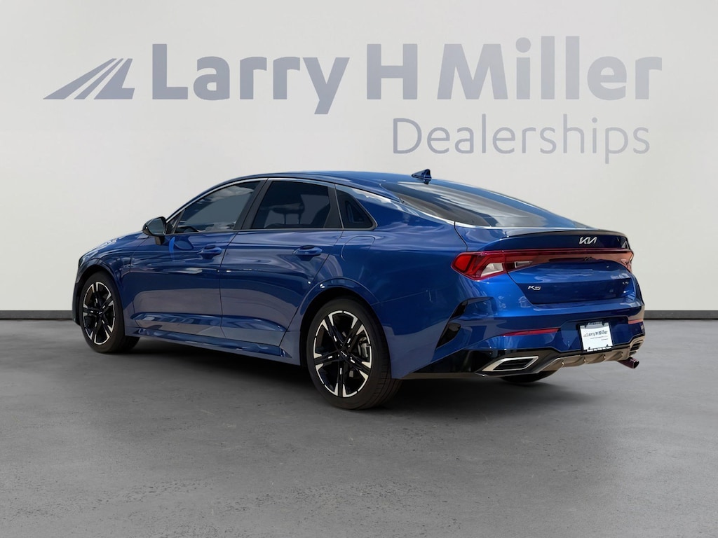 This 2022 Sapphire Blue Kia K5 GT-Line AWD is well equipped and includes these features and benefits: 4-Wheel Disc Brakes, 6 Speakers, ABS brakes, Air Conditioning, Alloy wheels, AM/FM radio: SiriusXM, Apple CarPlay & Android Auto, Auto High-beam Headlights, Automatic temperature control, Brake assist, Bumpers: body-color, Carpeted Floor Mats, Cloth/Leatherette Seat Trim, Delay-off headlights, Driver door bin, Driver vanity mirror, Dual front impact airbags, Dual front side impact airbags, Electronic Stability Control, Four wheel independent suspension, Front anti-roll bar, Front Bucket Seats, Front Center Armrest, Front dual zone A/C, Front fog lights, Front reading lights, Fully automatic headlights, Heated door mirrors, Heated Front Bucket Seats, Heated front seats, Illuminated entry, Knee airbag, Low tire pressure warning, Navigation System, Occupant sensing airbag, Outside temperature display, Overhead airbag, Overhead console, Panic alarm, Passenger door bin, Passenger vanity mirror, Power door mirrors, Power driver seat, Power steering, Power windows, Radio data system, Radio: AM/FM/MP3 Audio System, Rear anti-roll bar, Rear seat center armrest, Rear side impact airbag, Rear window defroster, Remote keyless entry, Security system, Speed control, Speed-sensing steering, Split folding rear seat, Spoiler, Sport steering wheel, Steering wheel mounted audio controls, Tachometer, Telescoping steering wheel, Tilt steering wheel, Traction control, Trip computer, Turn signal indicator mirrors, Variably intermittent wipers, and Wheels: 7.5J x 18 Gloss Black Machined Finish Alloy. 4-Wheel Disc Brakes, 6 Speakers, ABS brakes, Air Conditioning, Alloy wheels, AM/FM radio: SiriusXM, Apple CarPlay & Android Auto, Auto High-beam Headlights, Automatic temperature control, Brake assist, Bumpers: body-color, Carpeted Floor Mats, Cloth/Leatherette Seat Trim, Delay-off headlights, Driver door bin, Driver vanity mirror, Dual front impact airbags, Dual front side impact airbags, Electronic Stability Control, Four wheel independent suspension, Front anti-roll bar, Front Bucket Seats, Front Center Armrest, Front dual zone A/C, Front fog lights, Front reading lights, Fully automatic headlights, Heated door mirrors, Heated Front Bucket Seats, Heated front seats, Illuminated entry, Knee airbag, Low tire pressure warning, Navigation System, Occupant sensing airbag, Outside temperature display, Overhead airbag, Overhead console, Panic alarm, Passenger door bin, Passenger vanity mirror, Power door mirrors, Power driver seat, Power steering, Power windows, Radio data system, Radio: AM/FM/MP3 Audio System, Rear anti-roll bar, Rear seat center armrest, Rear side impact airbag, Rear window defroster, Remote keyless entry, Security system, Speed control, Speed-sensing steering, Split folding rear seat, Spoiler, Sport steering wheel, Steering wheel mounted audio controls, Tachometer, Telescoping steering wheel, Tilt steering wheel, Traction control, Trip computer, Turn signal indicator mirrors, Variably intermittent wipers, Wheels: 7.5J x 18 Gloss Black Machined Finish Alloy.