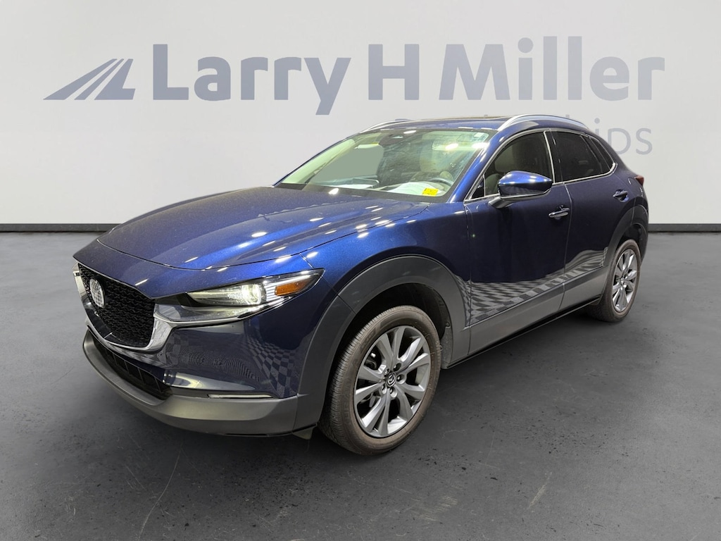 This 2024 Deep Crystal Blue Mica Mazda CX-30 2.5 S Premium Package AWD is well equipped and includes these features and benefits: 12 Speakers, 4-Wheel Disc Brakes, 4.095 Axle Ratio, ABS brakes, Air Conditioning, Alloy wheels, AM/FM radio: SiriusXM, AppLink/Apple CarPlay and Android Auto, Auto High-beam Headlights, Automatic temperature control, Brake assist, Bumpers: body-color, Cargo Mat, Cargo Tray, Compass, Delay-off headlights, Driver door bin, Driver vanity mirror, Dual front impact airbags, Dual front side impact airbags, Electronic Stability Control, Emergency communication system: Mazda Connected Services (3-year complimentary trial included), Exterior Parking Camera Rear, Front anti-roll bar, Front Bucket Seats, Front Center Armrest, Front dual zone A/C, Front reading lights, Front wheel independent suspension, Fully automatic headlights, Heads-Up Display, Heated door mirrors, Heated Front Bucket Seats, Heated front seats, High Wall All-Weather Floor Mats, Illuminated entry, Knee airbag, Leather Seat Trim, Leather Shift Knob, Leather steering wheel, Low tire pressure warning, MAZDA CONNECT Infotainment System, Memory seat, Navigation system: MAZDA CONNECT, Occupant sensing airbag, Outside temperature display, Overhead airbag, Overhead console, Panic alarm, Passenger door bin, Passenger vanity mirror, Power door mirrors, Power driver seat, Power Liftgate, Power moonroof, Power steering, Power windows, Radio data system, Radio: AM/FM/HD Audio System w/Mazda Navigation, Rain sensing wipers, Rear seat center armrest, Rear side impact airbag, Rear window defroster, Rear window wiper, Remote keyless entry, Speed control, Speed-sensing steering, Split folding rear seat, Spoiler, Steering wheel mounted audio controls, Tachometer, Telescoping steering wheel, Tilt steering wheel, Traction control, Trip computer, Turn signal indicator mirrors, Variably intermittent wipers, Wheel Locks, and Wheels: 18 x 7J Aluminum Alloy. Recent Arrival! 26/33 City/Highway MPG