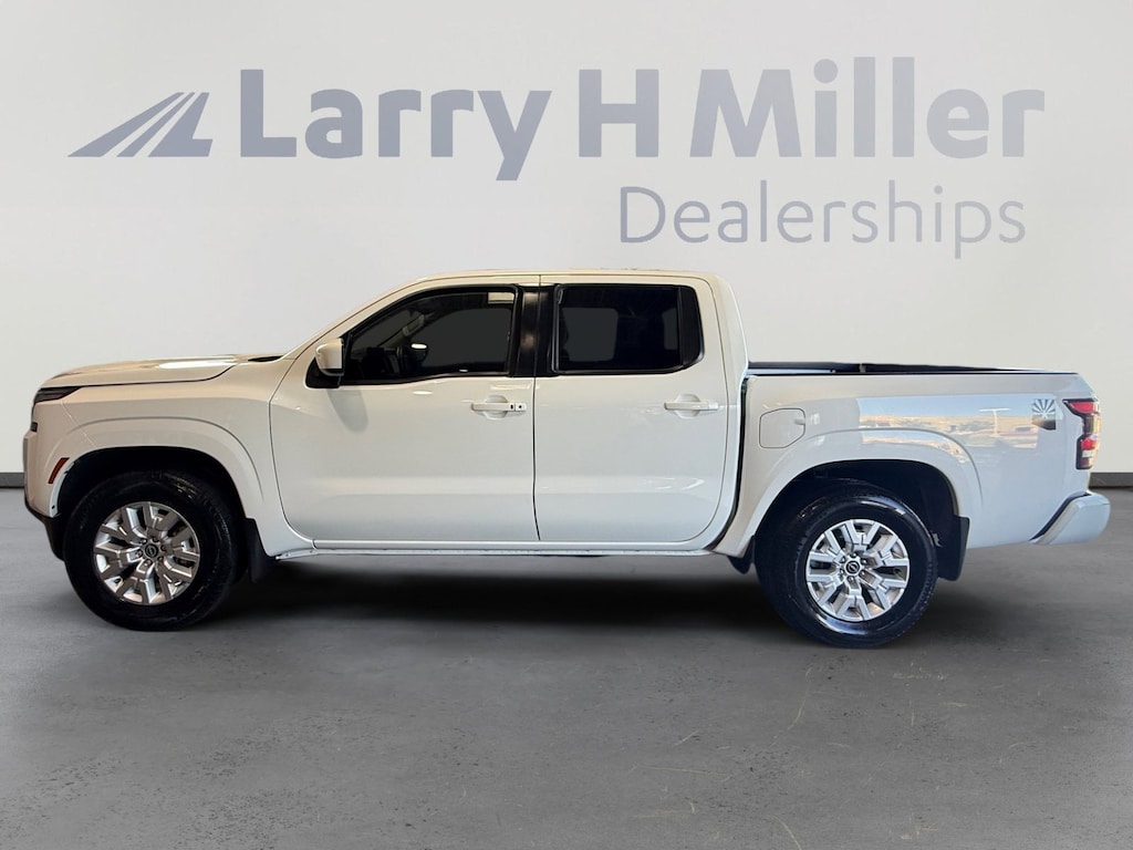 This 2022 Glacier White Nissan Frontier SV RWD is well equipped and includes these features and benefits: SV Comfort & Convenience Package (120V Power Outlet in Bed, 120V Power Outlet in Rear Center Console, Bed Under-Rail Lighting, Front Halogen Fog Lights, Halogen Daytime Running Lights, Heated Front Seats, Heated Leather Steering Wheel, Heated Outside Mirrors, HVAC - Dual-Zone Front Auto A/C, I-Key w/Request Switches on O/S Handles, Leather Shift Lever, Overhead Console Storage (Sunglass Holder), Remote Engine Starter, Sliding Rear Window, Spray-In Bedliner, Trailer Hitch w/Wiring Harness, and Utili-Track System), Technology Package (Blind Spot Warning, High Beam Assist (HBA), Intelligent Cruise Control, Lane Departure Warning System, Rear Automatic Braking (RAB), Rear Cross Traffic Alert (RCTA), and Rear Sonar System), 17 Alloy Wheels, 3.692 Axle Ratio, 4-Wheel Disc Brakes, 6 Speakers, ABS brakes, Air Conditioning, Alloy wheels, AM/FM radio: SiriusXM, Anti-whiplash front head restraints, Apple CarPlay/Android Auto, Auto High-beam Headlights, Brake assist, Bumpers: body-color, Delay-off headlights, Driver door bin, Driver vanity mirror, Dual front impact airbags, Dual front side impact airbags, Electronic Stability Control, Electronic Tailgate Lock, Floor Mats, Front anti-roll bar, Front Bucket Seats, Front Center Armrest, Front reading lights, Front wheel independent suspension, Fully automatic headlights, Illuminated entry, Knee airbag, Low tire pressure warning, Occupant sensing airbag, Overhead airbag, Panic alarm, Passenger door bin, Passenger vanity mirror, Power door mirrors, Power driver seat, Power steering, Power windows, Premium Cloth Seat Trim, Radio data system, Radio: SXM/AM/FM/AUX/USB Audio System w/6 Speakers, Rear anti-roll bar, Rear seat center armrest, Rear step bumper, Remote keyless entry, Security system, Speed control, Speed-sensing steering, Splash Guards, Split folding rear seat, Steering wheel mounted audio controls, Tachometer, Tilt steering wheel, Traction control, Trip computer, Variably intermittent wipers, and Voltmeter. Odometer is 18383 miles below market average!