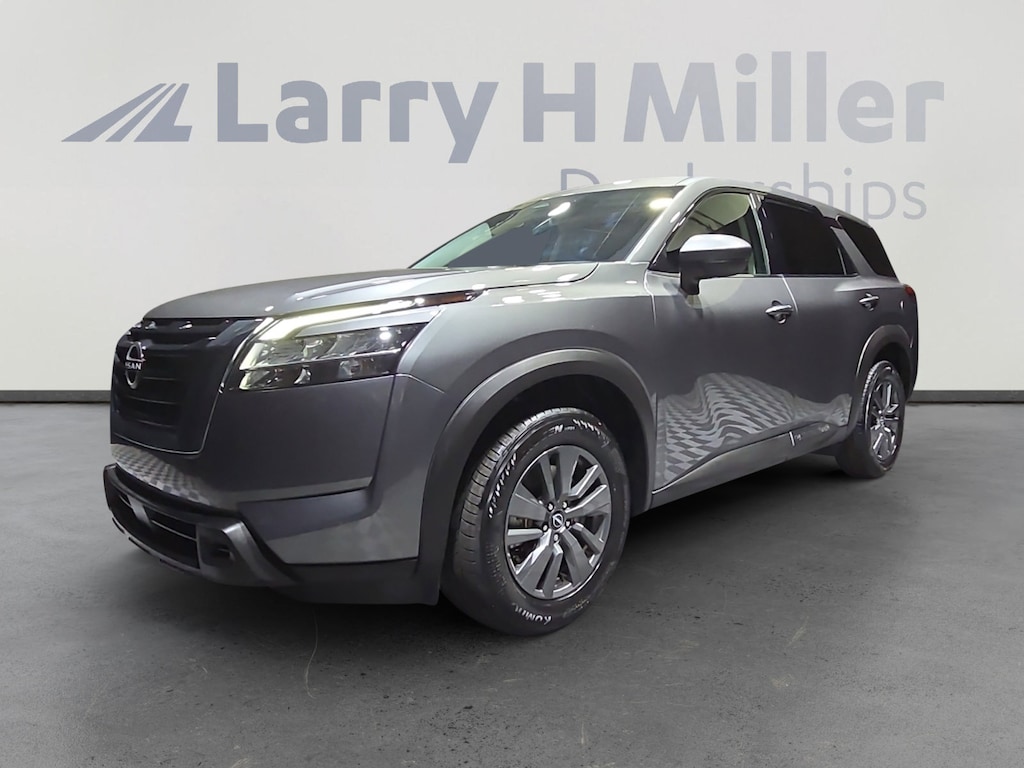 This 2022 Gun Metallic Nissan Pathfinder S FWD is well equipped and includes these features and benefits: 18 Painted Alloy Wheels, 3rd row seats: bench, 4-Wheel Disc Brakes, 6 Speakers, ABS brakes, Air Conditioning, Alloy wheels, AM/FM radio: SiriusXM, Auto High-beam Headlights, Automatic temperature control, Axle Ratio: TBD, Bench Seat Carpeted Floor Mats (Set of 4), Blind Spot Warning, Brake assist, Bumpers: body-color, Cloth Seating Surfaces, Delay-off headlights, Driver door bin, Driver vanity mirror, Dual front impact airbags, Dual front side impact airbags, Electronic Stability Control, Four wheel independent suspension, Front anti-roll bar, Front Bucket Seats, Front Center Armrest, Front dual zone A/C, Front reading lights, Fully automatic headlights, Illuminated entry, Knee airbag, Low tire pressure warning, NissanConnect featuring Apple CarPlay and Android Auto, Occupant sensing airbag, Outside temperature display, Overhead airbag, Overhead console, Panic alarm, Passenger door bin, Passenger vanity mirror, Power door mirrors, Power steering, Power windows, Radio data system, Radio: AM/FM Audio System w/NissanConnect, Rear air conditioning, Rear anti-roll bar, Rear Parking Sensors, Rear reading lights, Rear seat center armrest, Rear side impact airbag, Rear window defroster, Rear window wiper, Reclining 3rd row seat, Remote keyless entry, Security system, Speed control, Speed-sensing steering, Split folding rear seat, Spoiler, Steering wheel mounted audio controls, Tachometer, Telescoping steering wheel, Tilt steering wheel, Traction control, Trip computer, Turn signal indicator mirrors, and Variably intermittent wipers. Recent Arrival! 21/26 City/Highway MPG