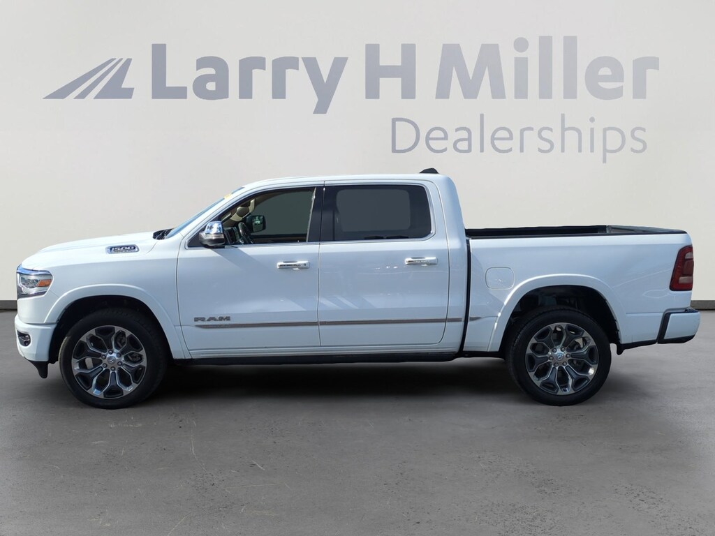 CARFAX One-Owner. 1500 Limited, 4D Crew Cab, HEMI 5.7L V8 Multi Displacement VVT, 4WD, Indigo/Frost Leather, Adaptive Cruise Control w/Stop & Go, Body Color Bumper Group, Body Color Front Bumper, Body Color Rear Bumper w/Step Pads, Full Speed Forward Collision Warning Plus, Lane Keep Assist, Limited Level 1 Equipment Group, Navigation System, No Satellite Coverage w/HI/AK/PR/VI/GU, Parallel & Perp Park Assist w/Stop, Protection Group, Quick Order Package 25M Limited, Radio: Uconnect 12 w/Navigation, Ventilated Rear Seats, 10 Speakers, 4-Wheel Disc Brakes, 48V Belt Starter Generator, ABS brakes, Adjustable pedals, Air Conditioning, Alloy wheels, AM/FM radio: SiriusXM with 360L, Anti-Spin Differential Rear Axle, Apple CarPlay/Android Auto, Audio memory, Auto High-beam Headlights, Auto-dimming door mirrors, Auto-dimming Rear-View mirror, Auto-leveling suspension, Automatic temperature control, Bodyside moldings, Brake assist, Bumpers: chrome, Compass, Delay-off headlights, Dome Dual LED Reading Lamp, Driver door bin, Driver vanity mirror, Dual front impact airbags, Dual front side impact airbags, Dual-Pane Panoramic Sunroof, Electronic Stability Control, Emergency communication system: SiriusXM Guardian, Front anti-roll bar, Front Bucket Seats, Front Center Armrest w/Storage, Front dual zone A/C, Front fog lights, Front reading lights, Front wheel independent suspension, Fully automatic headlights, Garage door transmitter, Genuine wood console insert, Genuine wood dashboard insert, Genuine wood door panel insert, Heated door mirrors, Heated front seats, Heated rear seats, Heated steering wheel, Illuminated entry, Leather steering wheel, LED Dome/Reading Lamp, Low tire pressure warning, Manufacturer's Statement of Origin, Memory seat, Occupant sensing airbag, Outside temperature display, Overhead airbag, Overhead console, Panic alarm, ParkView Rear Back-Up Camera, Passenger door bin, Passenger vanity mirror, Pedal memory, Power door mirrors, Power driver seat, Power passenger seat, Power steering, Power windows, Premium Leather Trimmed Bucket Seats, Radio data system, Rain sensing wipers, Rear anti-roll bar, Rear seat center armrest, Rear step bumper, Rear window defroster, Remote keyless entry, Security system, Speed control, Split folding rear seat, Steering wheel mounted audio controls, Tachometer, Telescoping steering wheel, Tilt steering wheel, Traction control, Trailer Brake Control, Trip computer, Turn signal indicator mirrors, Variably intermittent wipers, Ventilated front seats, Voltmeter, Wheels: 20 x 9 Polished w/Inserts, Wheels: 22 x 9 Polish/Painted w/Inserts, 1500 Limited, 4D Crew Cab, HEMI 5.7L V8 Multi Displacement VVT, 4WD, Indigo/Frost Leather, Adaptive Cruise Control w/Stop & Go, Body Color Bumper Group, Body Color Front Bumper, Body Color Rear Bumper w/Step Pads, Full Speed Forward Collision Warning Plus, Lane Keep Assist, Limited Level 1 Equipment Group, Navigation System, No Satellite Coverage w/HI/AK/PR/VI/GU, Parallel & Perp Park Assist w/Stop, Protection Group, Quick Order Package 25M Limited, Radio: Uconnect 12 w/Navigation, Ventilated Rear Seats.