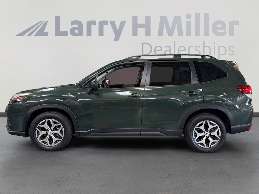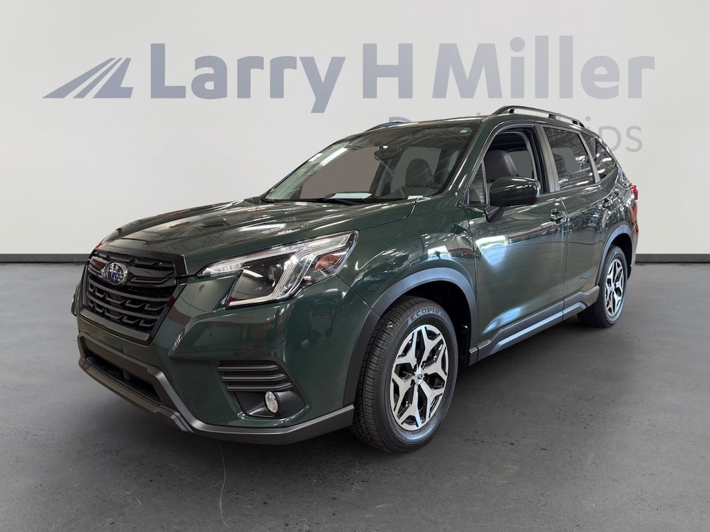 This 2023 Autumn Green Metallic Subaru Forester Premium AWD is well equipped and includes these features and benefits: 3.70 Axle Ratio, 4-Wheel Disc Brakes, 6 Speakers, ABS brakes, Air Conditioning, Alloy wheels, AM/FM radio: SiriusXM, Anti-whiplash front head restraints, Auto High-beam Headlights, Automatic temperature control, Brake assist, Bumpers: body-color, CD player, Driver door bin, Driver vanity mirror, Dual front impact airbags, Dual front side impact airbags, Electronic Stability Control, Emergency communication system: STARLINK Safety and Security (Subscription Required), Exterior Parking Camera Rear, Four wheel independent suspension, Front anti-roll bar, Front Bucket Seats, Front Center Armrest, Front fog lights, Front reading lights, Fully automatic headlights, Heated door mirrors, Heated Front Bucket Seats, Heated front seats, Illuminated entry, Knee airbag, Low tire pressure warning, Occupant sensing airbag, Outside temperature display, Overhead airbag, Overhead console, Panic alarm, Passenger door bin, Passenger vanity mirror, Power door mirrors, Power driver seat, Power moonroof: Panoramic, Power steering, Power windows, Premium Cloth Upholstery, Radio data system, Radio: Subaru Starlink 6.5 Multimedia Plus System, Rear anti-roll bar, Rear seat center armrest, Rear window defroster, Rear window wiper, Remote keyless entry, Roof rack: rails only, Security system, Speed control, Speed-sensing steering, Split folding rear seat, Spoiler, STARLINK/Apple CarPlay/Android Auto, Steering wheel mounted audio controls, Tachometer, Telescoping steering wheel, Tilt steering wheel, Traction control, Trip computer, Variably intermittent wipers, and Wheels: 17 x 7.0 J Black Machine Finish Alloy. 3.70 Axle Ratio, 4-Wheel Disc Brakes, 6 Speakers, ABS brakes, Air Conditioning, Alloy wheels, AM/FM radio: SiriusXM, Anti-whiplash front head restraints, Auto High-beam Headlights, Automatic temperature control, Brake assist, Bumpers: body-color, CD player, Driver door bin, Driver vanity mirror, Dual front impact airbags, Dual front side impact airbags, Electronic Stability Control, Emergency communication system: STARLINK Safety and Security (Subscription Required), Exterior Parking Camera Rear, Four wheel independent suspension, Front anti-roll bar, Front Bucket Seats, Front Center Armrest, Front fog lights, Front reading lights, Fully automatic headlights, Heated door mirrors, Heated Front Bucket Seats, Heated front seats, Illuminated entry, Knee airbag, Low tire pressure warning, Occupant sensing airbag, Outside temperature display, Overhead airbag, Overhead console, Panic alarm, Passenger door bin, Passenger vanity mirror, Power door mirrors, Power driver seat, Power moonroof: Panoramic, Power steering, Power windows, Premium Cloth Upholstery, Radio data system, Radio: Subaru Starlink 6.5 Multimedia Plus System, Rear anti-roll bar, Rear seat center armrest, Rear window defroster, Rear window wiper, Remote keyless entry, Roof rack: rails only, Security system, Speed control, Speed-sensing steering, Split folding rear seat, Spoiler, STARLINK/Apple CarPlay/Android Auto, Steering wheel mounted audio controls, Tachometer, Telescoping steering wheel, Tilt steering wheel, Traction control, Trip computer, Variably intermittent wipers, Wheels: 17 x 7.0 J Black Machine Finish Alloy.