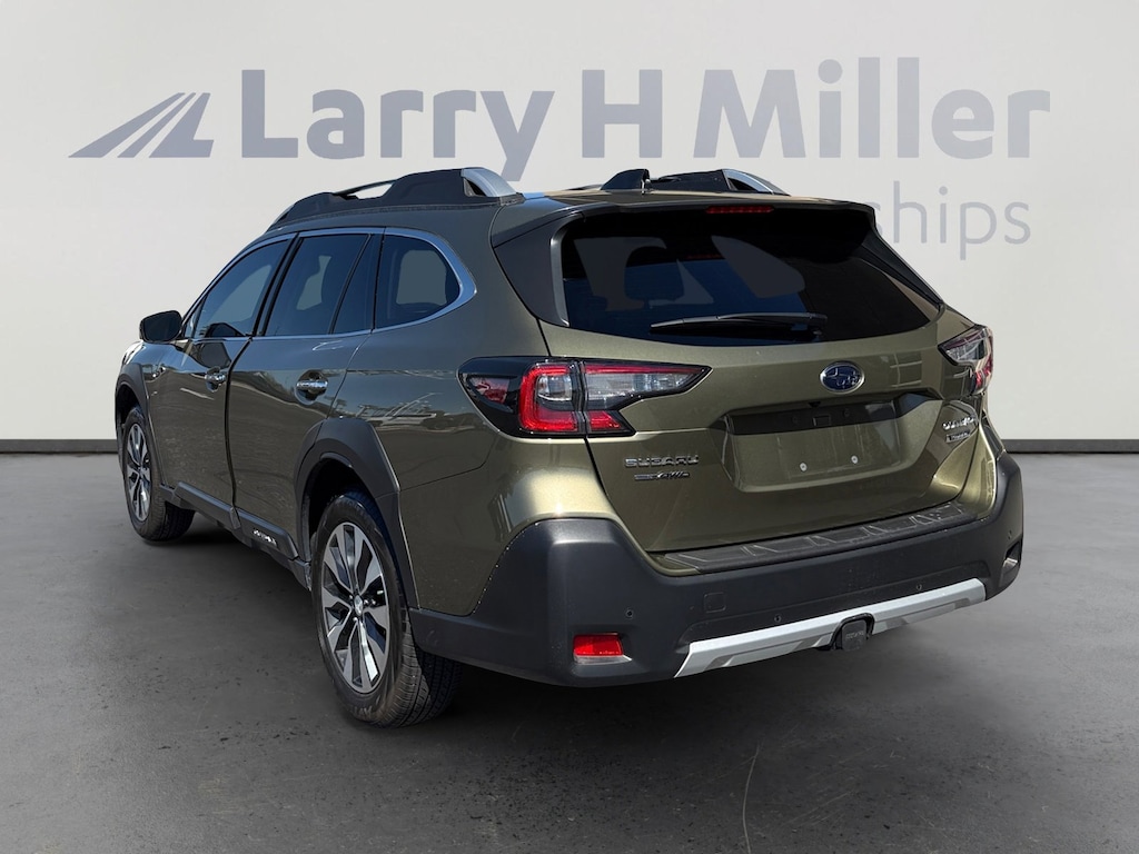 This 2023 Green Metallic Subaru Outback Touring AWD is well equipped and includes these features and benefits: Standard Model, 12 Speakers, 3.90 Axle Ratio, 4-Wheel Disc Brakes, ABS brakes, Air Conditioning, Alloy wheels, AM/FM radio: SiriusXM, Auto High-beam Headlights, Auto-dimming Rear-View mirror, Automatic temperature control, Brake assist, Bumpers: body-color, Compass, Driver door bin, Driver vanity mirror, Dual front impact airbags, Dual front side impact airbags, Electronic Stability Control, Emergency communication system: STARLINK Safety Plus (3-year free trial), Exterior Parking Camera Rear, Four wheel independent suspension, Front anti-roll bar, Front Bucket Seats, Front Center Armrest w/Storage, Front dual zone A/C, Front fog lights, Front reading lights, Fully automatic headlights, Garage door transmitter: HomeLink, harman/kardon® Speakers, Heated & Ventilated Front Bucket Seats, Heated door mirrors, Heated front seats, Heated rear seats, Heated steering wheel, HVAC memory, Illuminated entry, Knee airbag, Leather Shift Knob, Leather steering wheel, Low tire pressure warning, Memory seat, Navigation System, Occupant sensing airbag, Outside temperature display, Overhead airbag, Overhead console, Panic alarm, Passenger door bin, Passenger vanity mirror, Perforated Nappa Leather-Trimmed Upholstery, Power door mirrors, Power driver seat, Power Liftgate, Power moonroof, Power passenger seat, Power steering, Power windows, Radio: Subaru STARLINK 11.6 Multimedia Nav System, Rear anti-roll bar, Rear seat center armrest, Rear window defroster, Rear window wiper, Remote CD player, Remote keyless entry, Roof rack, Security system, Speed control, Speed-sensing steering, Split folding rear seat, Spoiler, Steering wheel mounted audio controls, Steering Wheel Paddle Shift Control Switches, Tachometer, Telescoping steering wheel, Tilt steering wheel, Traction control, Trip computer, Turn signal indicator mirrors, Variably intermittent wipers, Ventilated front seats, and Wheels: 18 x 7J Black Aluminum Alloy. 12 Speakers, 3.90 Axle Ratio, 4-Wheel Disc Brakes, ABS brakes, Air Conditioning, Alloy wheels, AM/FM radio: SiriusXM, Auto High-beam Headlights, Auto-dimming Rear-View mirror, Automatic temperature control, Brake assist, Bumpers: body-color, Compass, Driver door bin, Driver vanity mirror, Dual front impact airbags, Dual front side impact airbags, Electronic Stability Control, Emergency communication system: STARLINK Safety Plus (3-year free trial), Exterior Parking Camera Rear, Four wheel independent suspension, Front anti-roll bar, Front Bucket Seats, Front Center Armrest w/Storage, Front dual zone A/C, Front fog lights, Front reading lights, Fully automatic headlights, Garage door transmitter: HomeLink, harman/kardon® Speakers, Heated & Ventilated Front Bucket Seats, Heated door mirrors, Heated front seats, Heated rear seats, Heated steering wheel, HVAC memory, Illuminated entry, Knee airbag, Leather Shift Knob, Leather steering wheel, Low tire pressure warning, Memory seat, Navigation System, Occupant sensing airbag, Outside temperature display, Overhead airbag, Overhead console, Panic alarm, Passenger door bin, Passenger vanity mirror, Perforated Nappa Leather-Trimmed Upholstery, Power door mirrors, Power driver seat, Power Liftgate, Power moonroof, Power passenger seat, Power steering, Power windows, Radio: Subaru STARLINK 11.6 Multimedia Nav System, Rear anti-roll bar, Rear seat center armrest, Rear window defroster, Rear window wiper, Remote CD player, Remote keyless entry, Roof rack, Security system, Speed control, Speed-sensing steering, Split folding rear seat, Spoiler, Standard Model, Steering wheel mounted audio controls, Steering Wheel Paddle Shift Control Switches, Tachometer, Telescoping steering wheel, Tilt steering wheel, Traction control, Trip computer, Turn signal indicator mirrors, Variably intermittent wipers, Ventilated front seats, Wheels: 18 x 7J Black Aluminum Alloy.