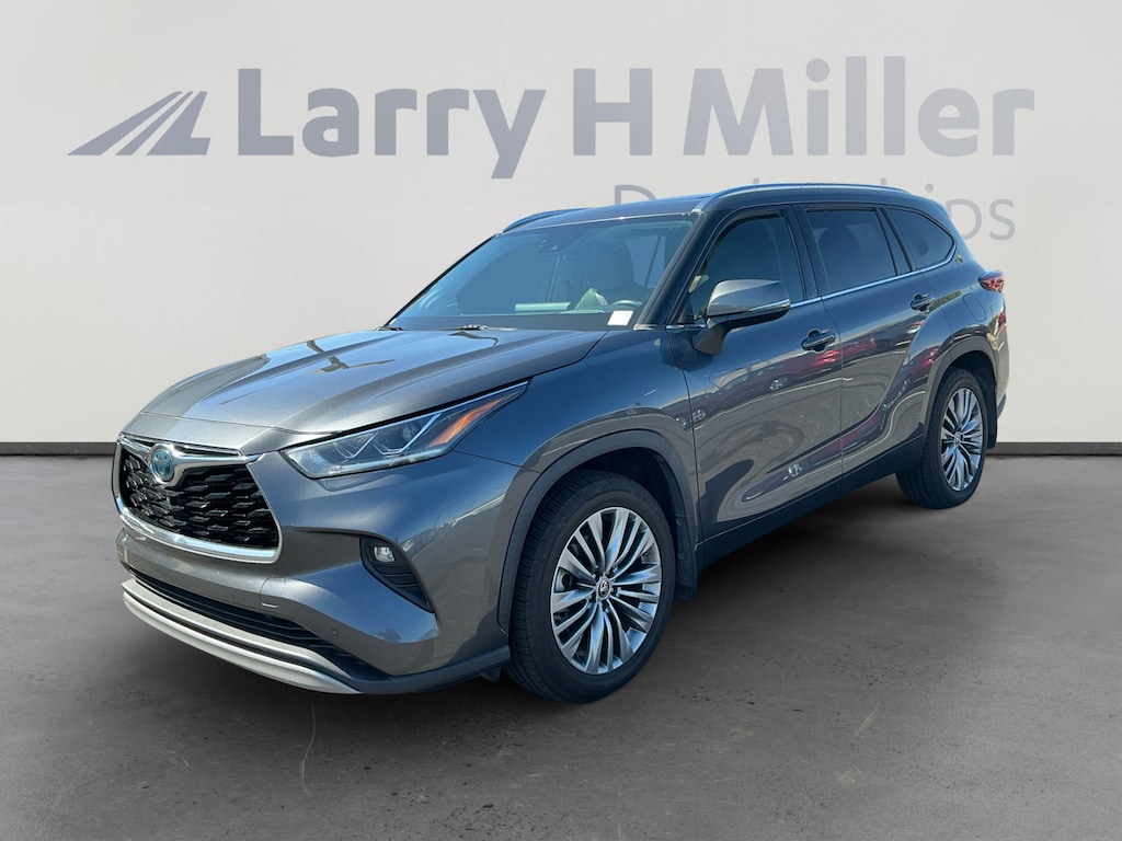 This 2020 Moon Dust Toyota Highlander Hybrid Platinum AWD is well equipped and includes these features and benefits: 2.5L I4 PDI Hybrid DOHC 16V LEV3-SULEV30 186hp, 11 Speakers, 3.542 Axle Ratio, 3rd row seats: split-bench, 4-Wheel Disc Brakes, ABS brakes, Air Conditioning, Alloy wheels, AM/FM radio: SiriusXM, Apple CarPlay/Android Auto, Auto High-beam Headlights, Auto-dimming Rear-View mirror, Automatic temperature control, Brake assist, Bumpers: body-color, Delay-off headlights, Driver door bin, Driver vanity mirror, Dual front impact airbags, Dual front side impact airbags, Electronic Rear-View Mirror, Electronic Stability Control, Emergency communication system: Safety Connect with 1-year trial, Four wheel independent suspension, Front anti-roll bar, Front Bucket Seats, Front Center Armrest, Front dual zone A/C, Front fog lights, Front reading lights, Fully automatic headlights, Garage door transmitter: HomeLink, Heads-Up Display, Heated & Ventilated Front Bucket Seats, Heated door mirrors, Heated front seats, Heated rear seats, Heated steering wheel, High Grade LED, Illuminated entry, Knee airbag, Leather Seat Trim, Leather Shift Knob, Low tire pressure warning, Memory seat, Navigation system: Dynamic Navigation with up to 3-year trial, Occupant sensing airbag, Outside temperature display, Overhead airbag, Overhead console, Panic alarm, Panoramic Moonroof, Panoramic View Monitor, Passenger door bin, Passenger vanity mirror, Power door mirrors, Power driver seat, Power Liftgate, Power moonroof, Power passenger seat, Power steering, Power windows, Radio: JBL Premium Audio w/Navigation System, Rain sensing wipers, Rear air conditioning, Rear anti-roll bar, Rear reading lights, Rear window defroster, Rear window wiper, Reclining 3rd row seat, Remote keyless entry, Roof rack: rails only, Security system, Speed control, Speed-sensing steering, Split folding rear seat, Spoiler, Steering wheel mounted audio controls, Telescoping steering wheel, Tilt steering wheel, Traction control, Trip computer, Turn signal indicator mirrors, Variably intermittent wipers, Ventilated front seats, and Wheels: 20 Platinum Alloy. 2.5L I4 PDI Hybrid DOHC 16V LEV3-SULEV30 186hp, 11 Speakers, 3.542 Axle Ratio, 3rd row seats: split-bench, 4-Wheel Disc Brakes, ABS brakes, Air Conditioning, Alloy wheels, AM/FM radio: SiriusXM, Apple CarPlay/Android Auto, Auto High-beam Headlights, Auto-dimming Rear-View mirror, Automatic temperature control, Brake assist, Bumpers: body-color, Delay-off headlights, Driver door bin, Driver vanity mirror, Dual front impact airbags, Dual front side impact airbags, Electronic Rear-View Mirror, Electronic Stability Control, Emergency communication system: Safety Connect with 1-year trial, Four wheel independent suspension, Front anti-roll bar, Front Bucket Seats, Front Center Armrest, Front dual zone A/C, Front fog lights, Front reading lights, Fully automatic headlights, Garage door transmitter: HomeLink, Heads-Up Display, Heated & Ventilated Front Bucket Seats, Heated door mirrors, Heated front seats, Heated rear seats, Heated steering wheel, High Grade LED, Illuminated entry, Knee airbag, Leather Seat Trim, Leather Shift Knob, Low tire pressure warning, Memory seat, Navigation system: Dynamic Navigation with up to 3-year trial, Occupant sensing airbag, Outside temperature display, Overhead airbag, Overhead console, Panic alarm, Panoramic Moonroof, Panoramic View Monitor, Passenger door bin, Passenger vanity mirror, Power door mirrors, Power driver seat, Power Liftgate, Power moonroof, Power passenger seat, Power steering, Power windows, Radio: JBL Premium Audio w/Navigation System, Rain sensing wipers, Rear air conditioning, Rear anti-roll bar, Rear reading lights, Rear window defroster, Rear window wiper, Reclining 3rd row seat, Remote keyless entry, Roof rack: rails only, Security system, Speed control, Speed-sensing steering, Split folding rear seat, Spoiler, Steering wheel mounted audio controls, Telescoping steering w